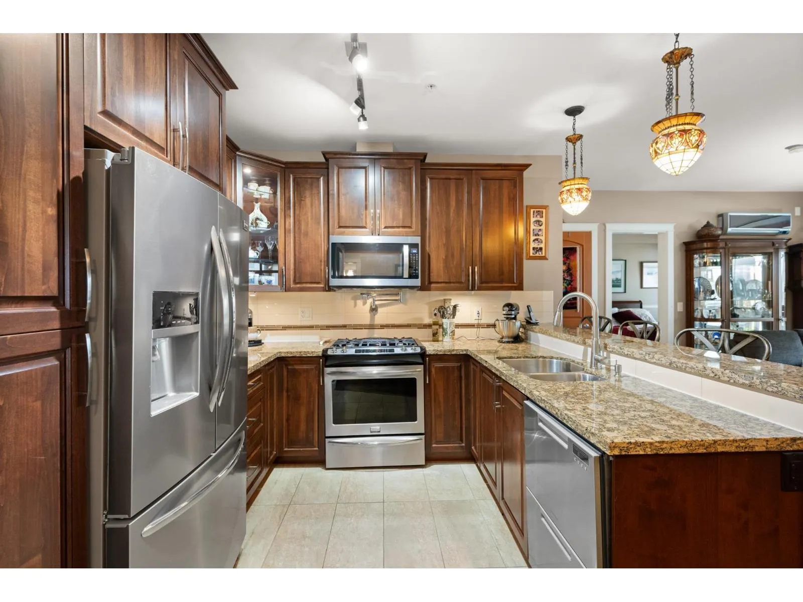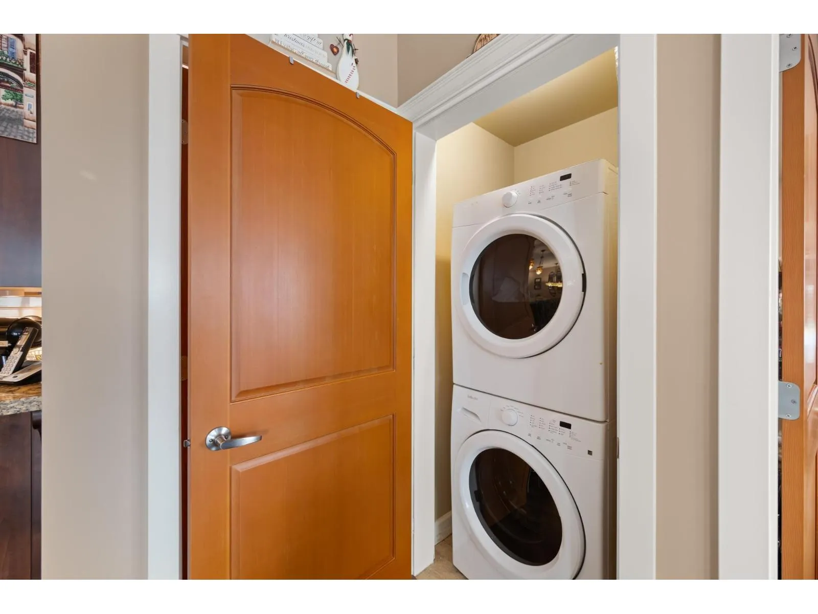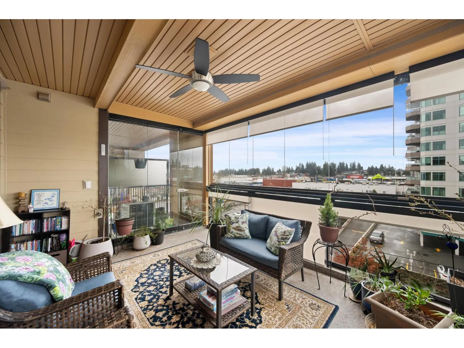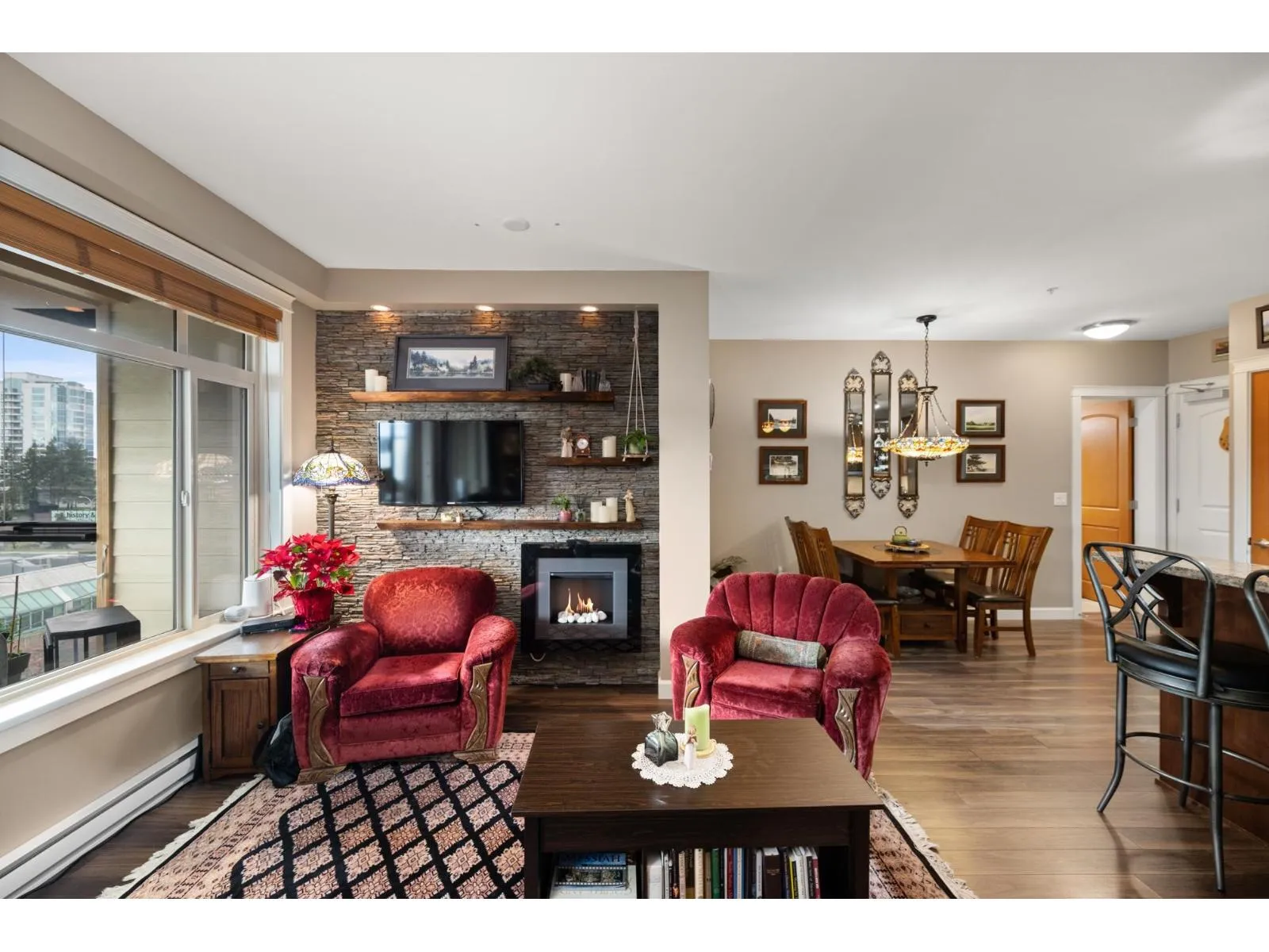 Welcome to La Galleria! One of Abbotsford's only LUXURY condo buildings! This is a gorgeous, SOUTH FACING, 2 BEDROOM + DEN, 2 bathroom unit located in the heart of Abbotsford! This bright, south-facing unit is flooded with natural sunlight throughout the day... and don't worry... it has A/C! With a top-of-the-line LUMON window system, the spacious SOLARIUM is an absolute highlight, perfect for enjoying your patio all year-round. It can be opened & closed as you please! This home also has some incredible upgrades including, a cozy electric fireplace, heated floors in the primary ensuite, high-end roller shades in the solarium, beautiful feature wall w/shelving in the living room & even some extremely well thought out cabinet organization in the kitchen! (id:27476)
