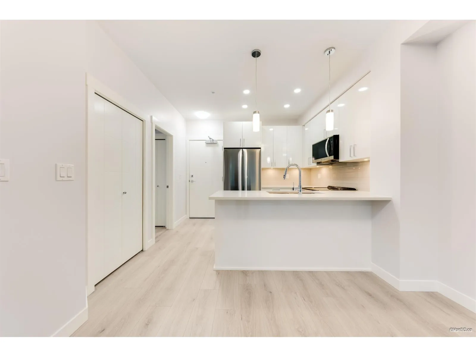 Brand new Jr. 2-bedroom condo located on the 2nd floor of the JACOB project, Abbotsford's newest development. Built by the reputable Redekop Faye, this modern home is move in ready and offers a thoughtfully designed layout with high-end finishes throughout. Enjoy upgraded laminate flooring, premium appliances, and a sleek "Light" colour scheme that enhances the open and airy feel of the space. This unit comes with a parking stall, a locker. Easy access to the beautifully landscaped courtyard and on-site playground - ideal for young families or first time home buyers. Set in a vibrant and walkable neighborhood, you'll be just steps from Historic Downtown Abbotsford and the Rail District, with quick access to shopping, parks and UFV. Call for more information! GST PAID (id:27476)
