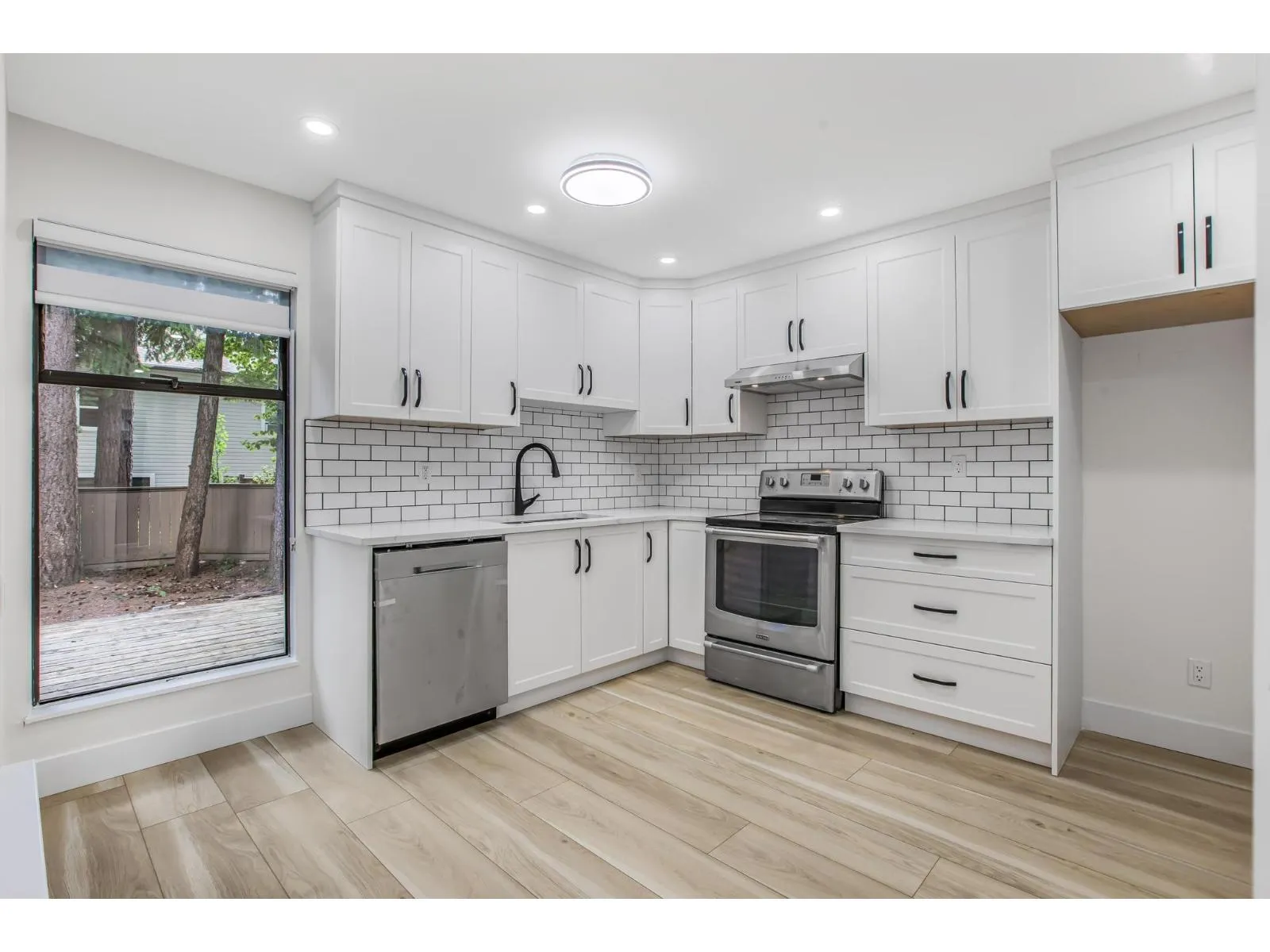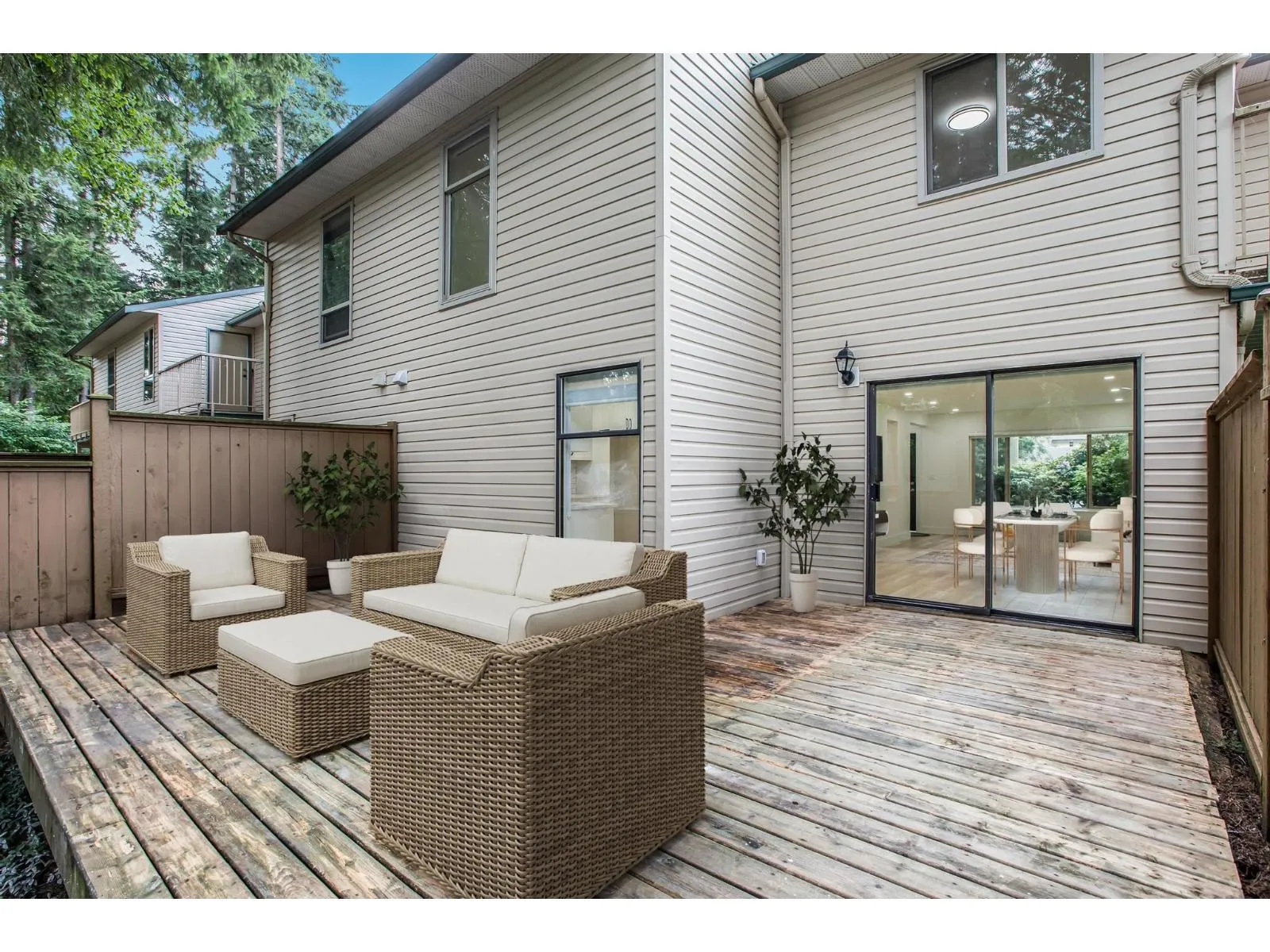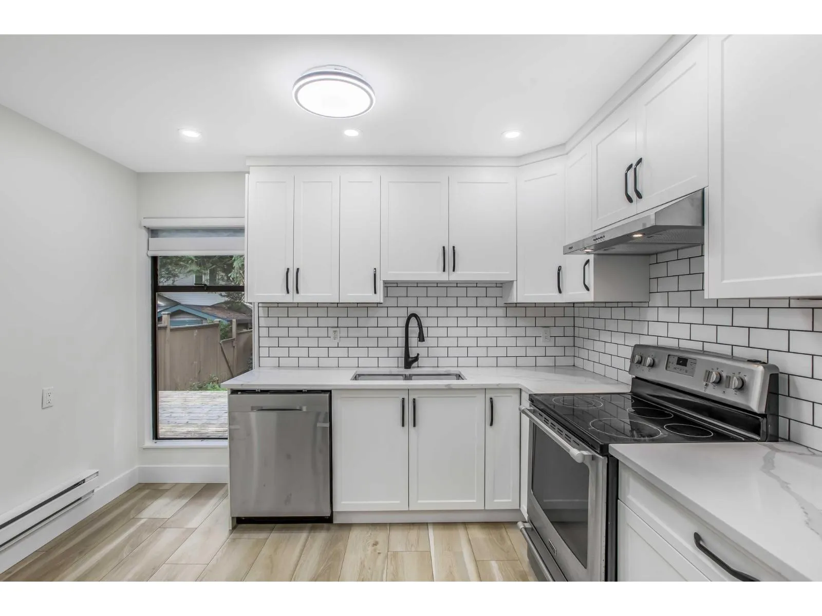 This renovated townhouse feels like a detached house! The location can't be beat- located across the street from WJ Mouat Secondary school! This home has a fenced yard and large patio. Inside, no expense has been spared in updating the home. Check out the bright kitchen with quartz countertops, custom cabinets, and stainless steel appliances. The spacious living and dining rooms overlook the quiet patio that's perfect for entertaining. A bathroom and storage room complete this level. Upstairs, there are 3 bedrooms, a large laundry room, and a gorgeous bathroom with a walk in shower and marble surround- it feels like a hotel! There's even a private sun deck off the primary bedroom. Other great features include many led pot lights and new flooring throughout. Open House Sat Nov 15th 12pm-2pm (id:27476)