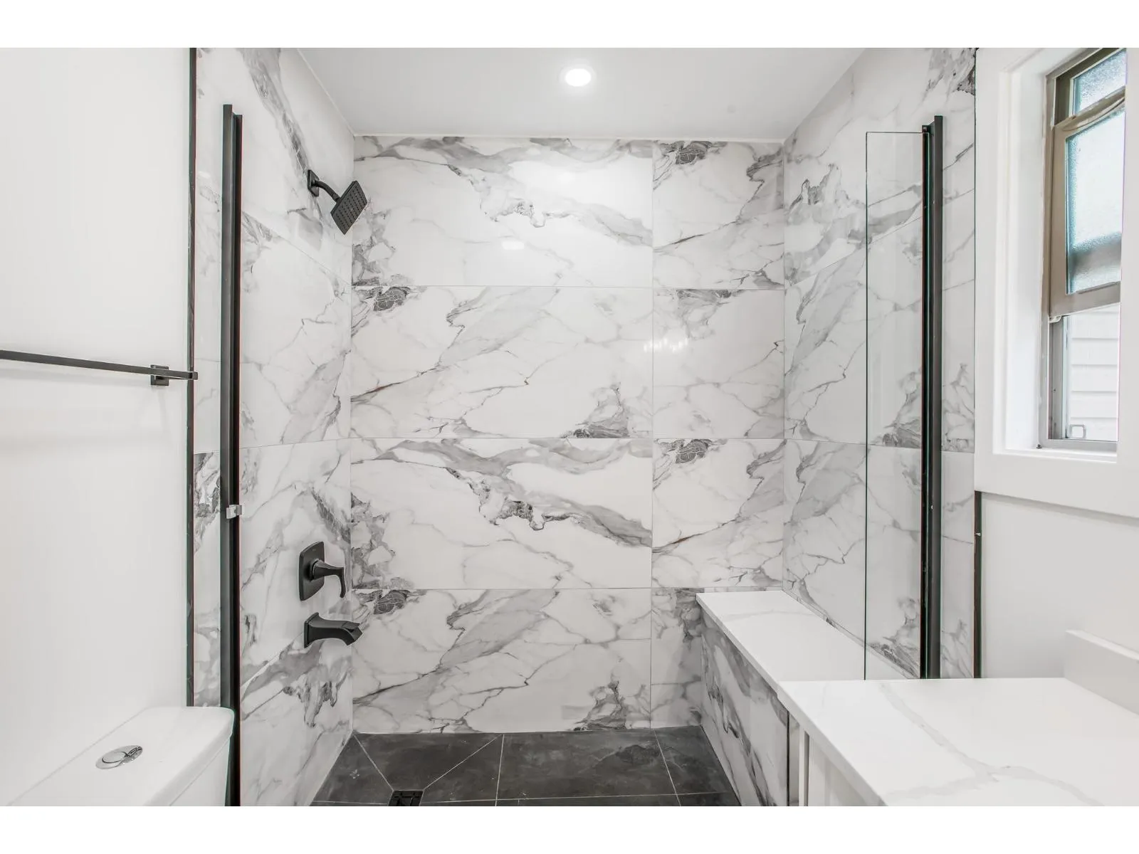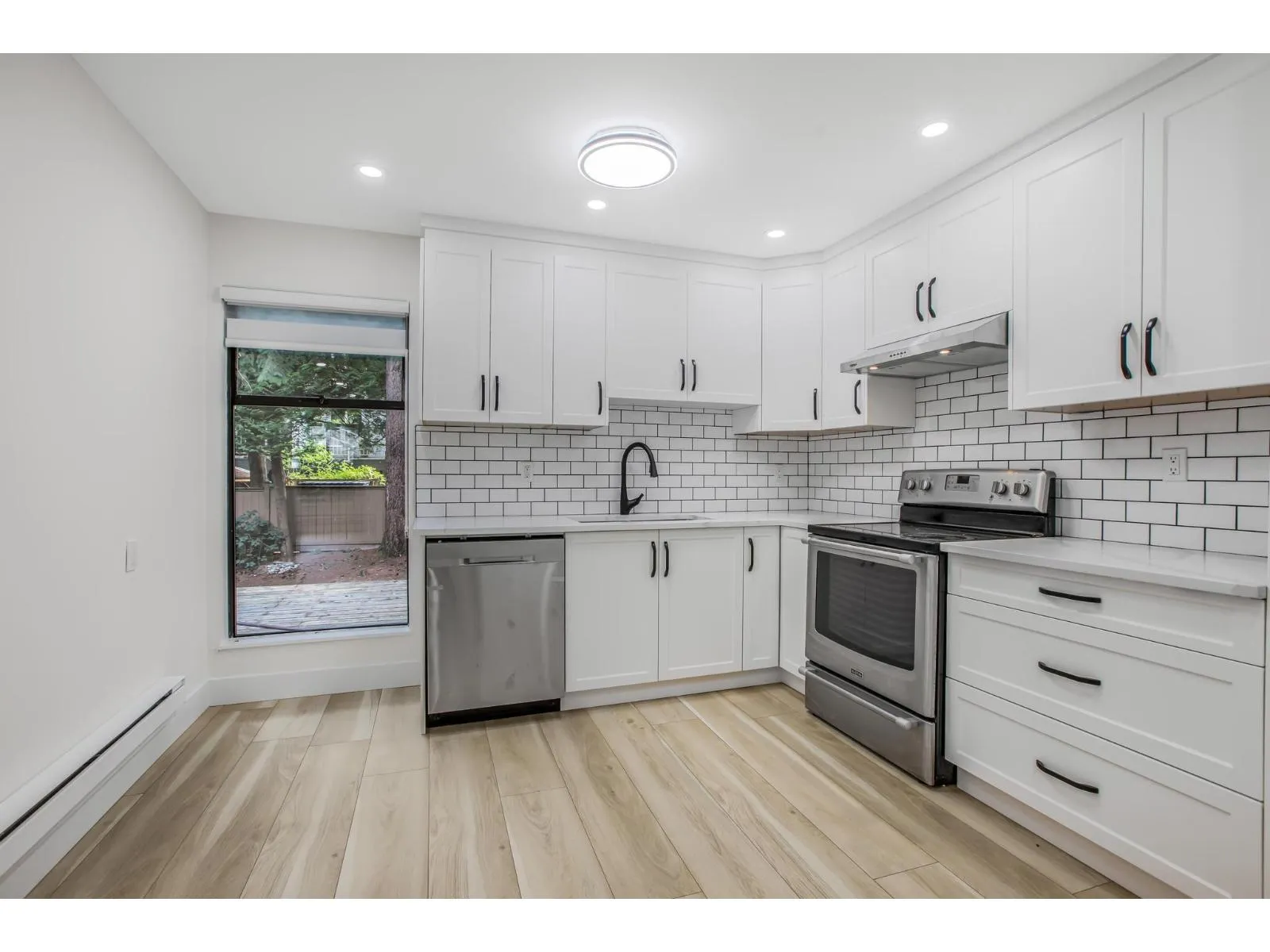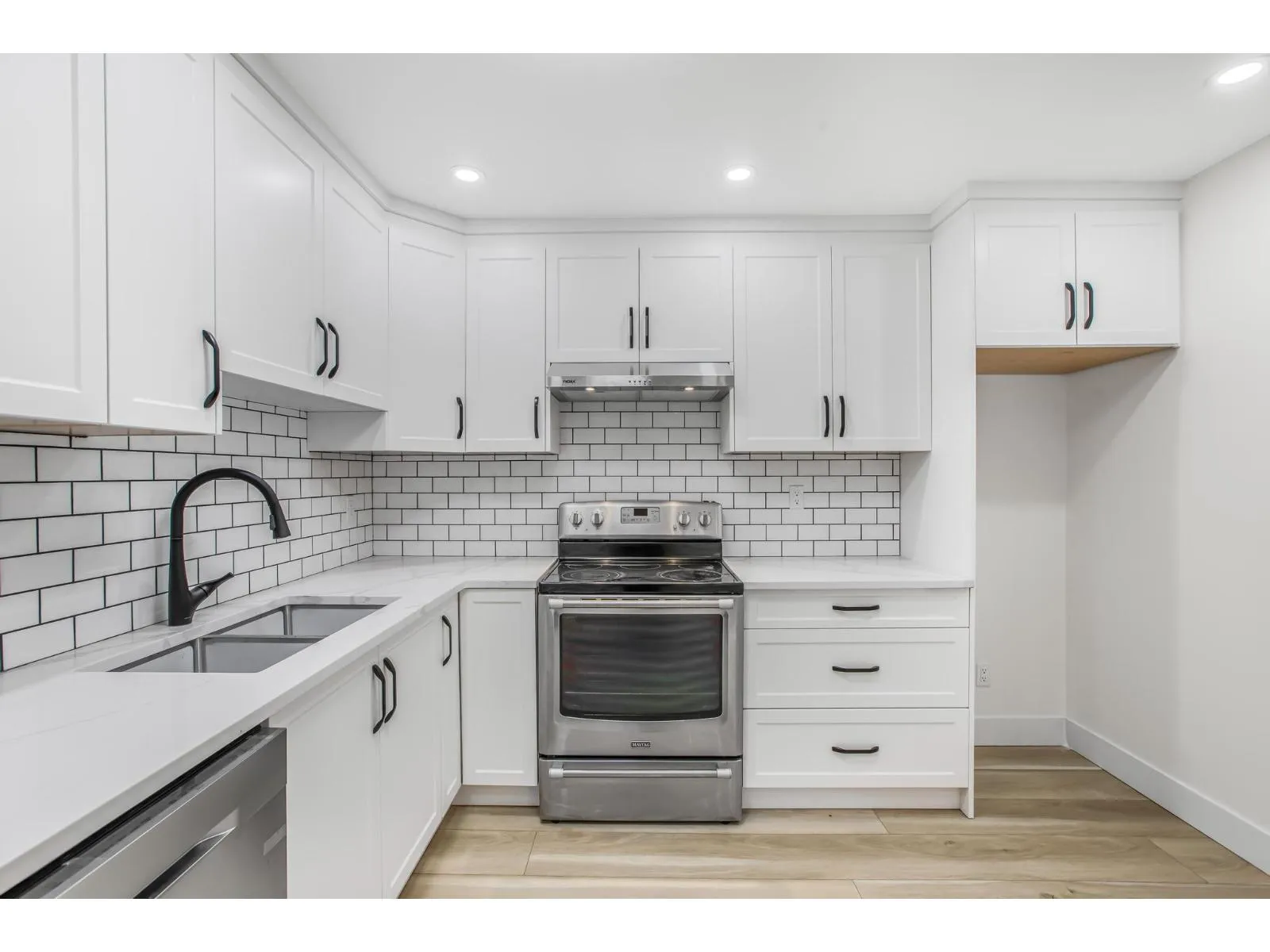 This renovated townhouse feels like a detached house! The location can't be beat- located across the street from WJ Mouat Secondary school! This home has a fenced yard and large patio. Inside, no expense has been spared in updating the home. Check out the bright kitchen with quartz countertops, custom cabinets, and stainless steel appliances. The spacious living and dining rooms overlook the quiet patio that's perfect for entertaining. A bathroom and storage room complete this level. Upstairs, there are 3 bedrooms, a large laundry room, and a gorgeous bathroom with a walk in shower and marble surround- it feels like a hotel! There's even a private sun deck off the primary bedroom. Other great features include many led pot lights and new flooring throughout. Open House Sat Nov 15th 12pm-2pm (id:27476)
