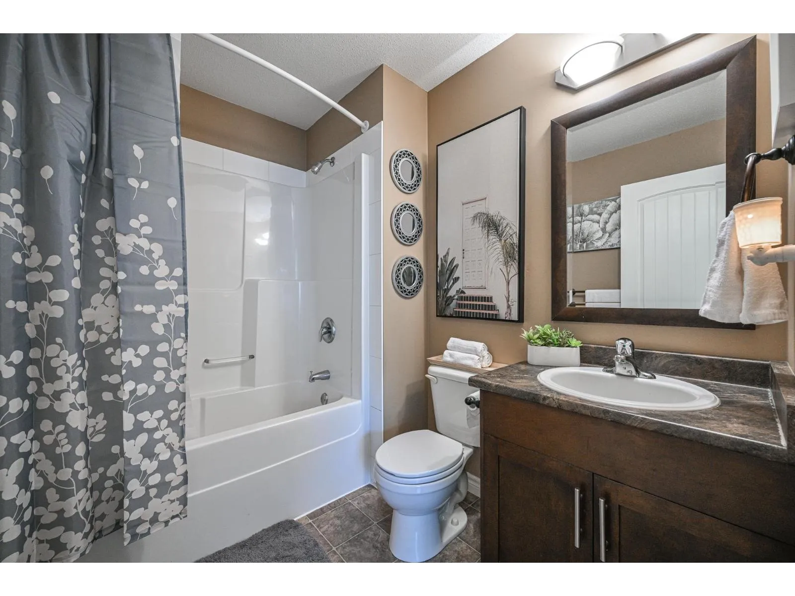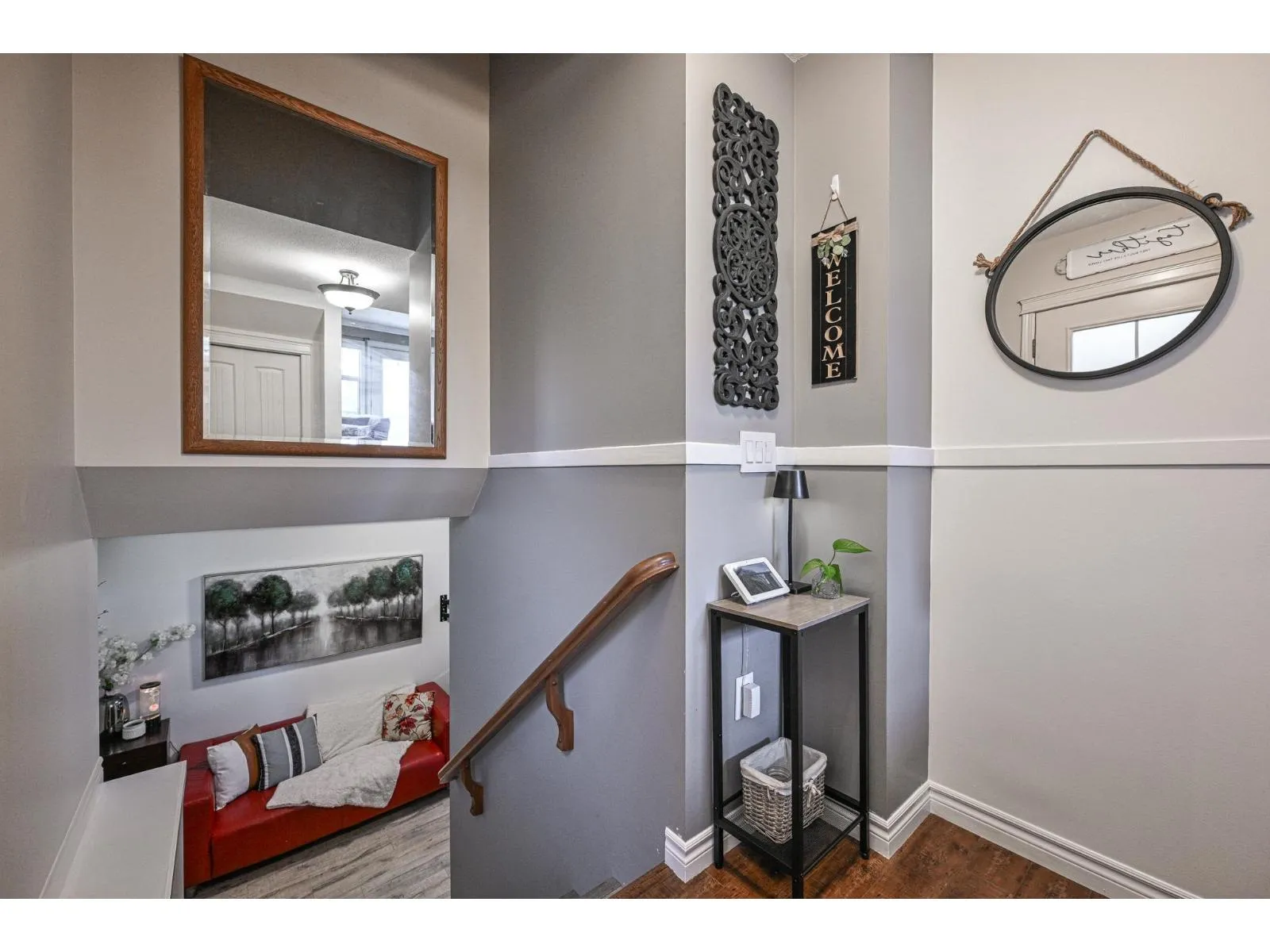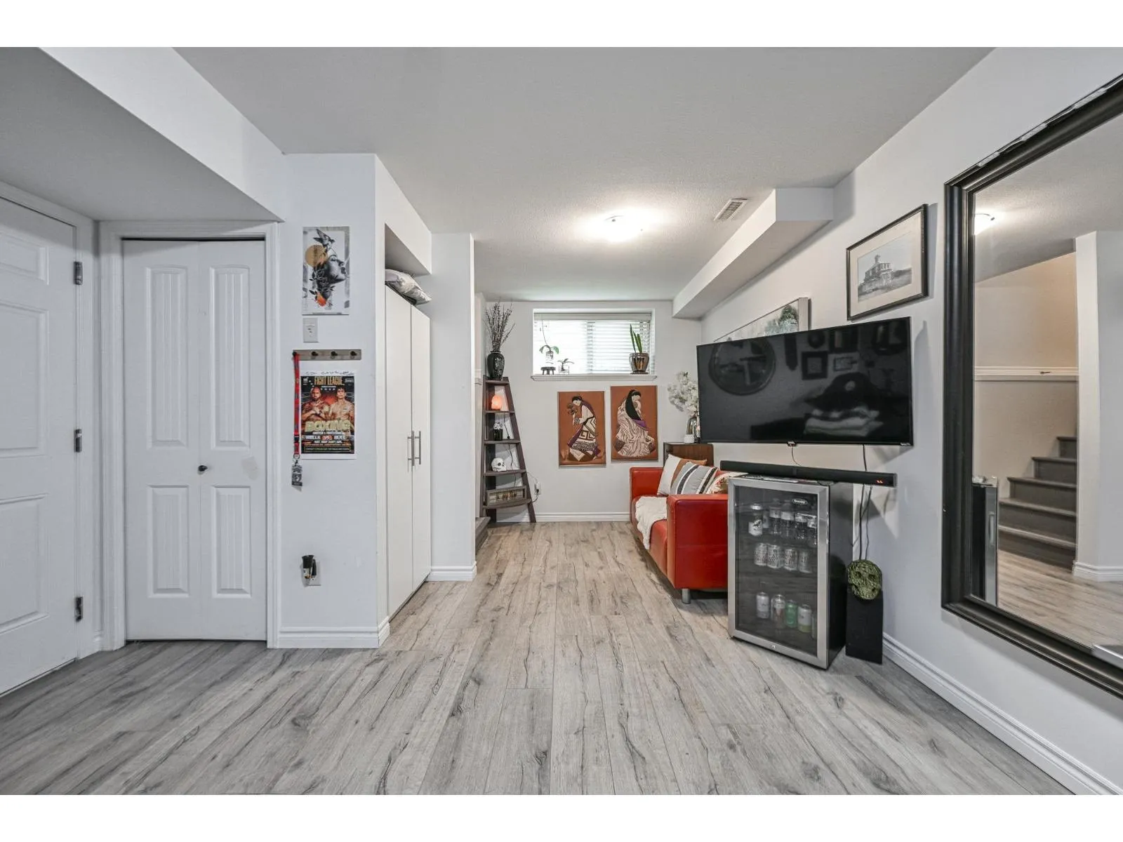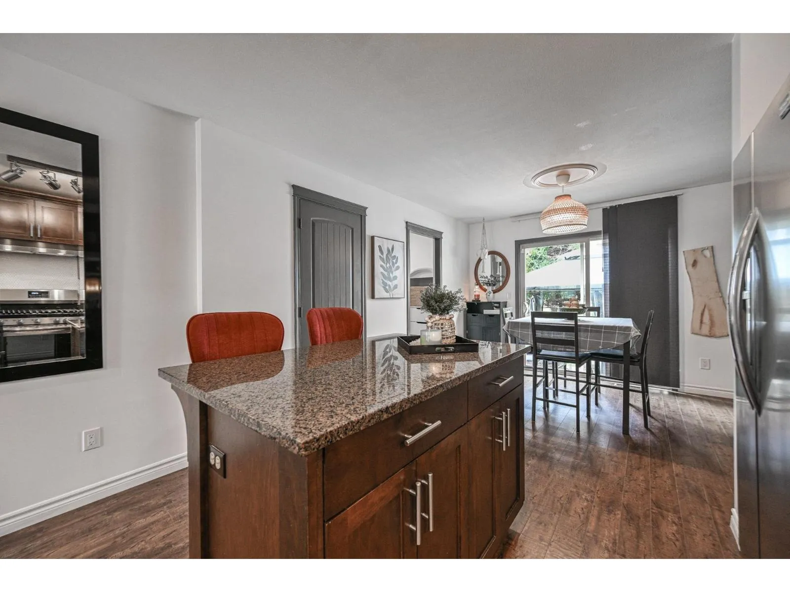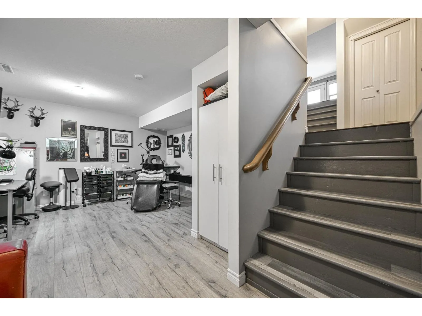 Welcome to Junction Creek! This FULLY DETACHED Whistler chalet-style townhome blends house-like space with strata ease. Bright open main floor boasts high ceilings, laminate floors, updated S/S kitchen appliances, shaker-style cabinets, centre island, stone elec fireplace, built-in hutch, den/small bedroom, dining area, walkout patio & front balcony. Upstairs: 2 generous spare beds, 4-pc shared bath, spacious laundry w/cabinetry, & large primary w/walk-in closet & 3 pc ensuite bath. Basement rec room ideal for movies or play. Upgrades: A/C, paint, flooring, light fixtures, & more. Side-by-side double garage + 2 driveway spots, & visitor parking avail. Pet-friendly! Prime spot near Hwy 1, shops, restaurants, schools (Prince Charles Elem, Clayburn Middle). Unbeatable value-see it today! (id:27476)
