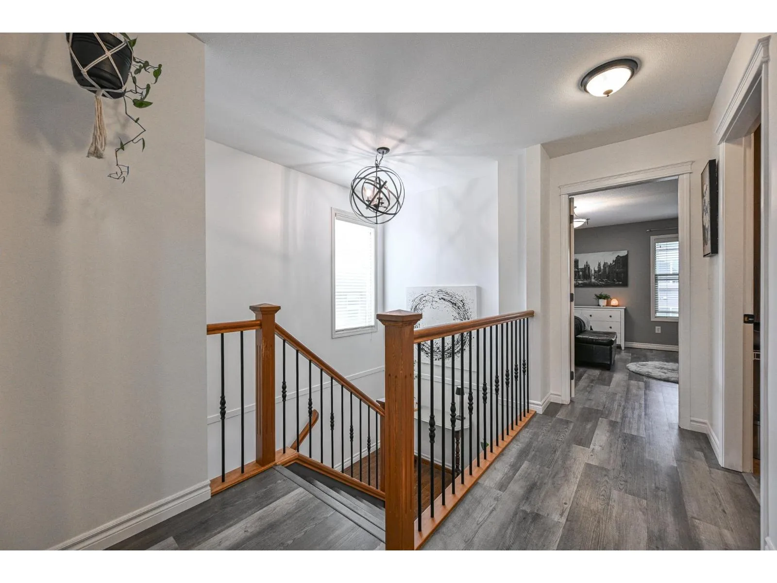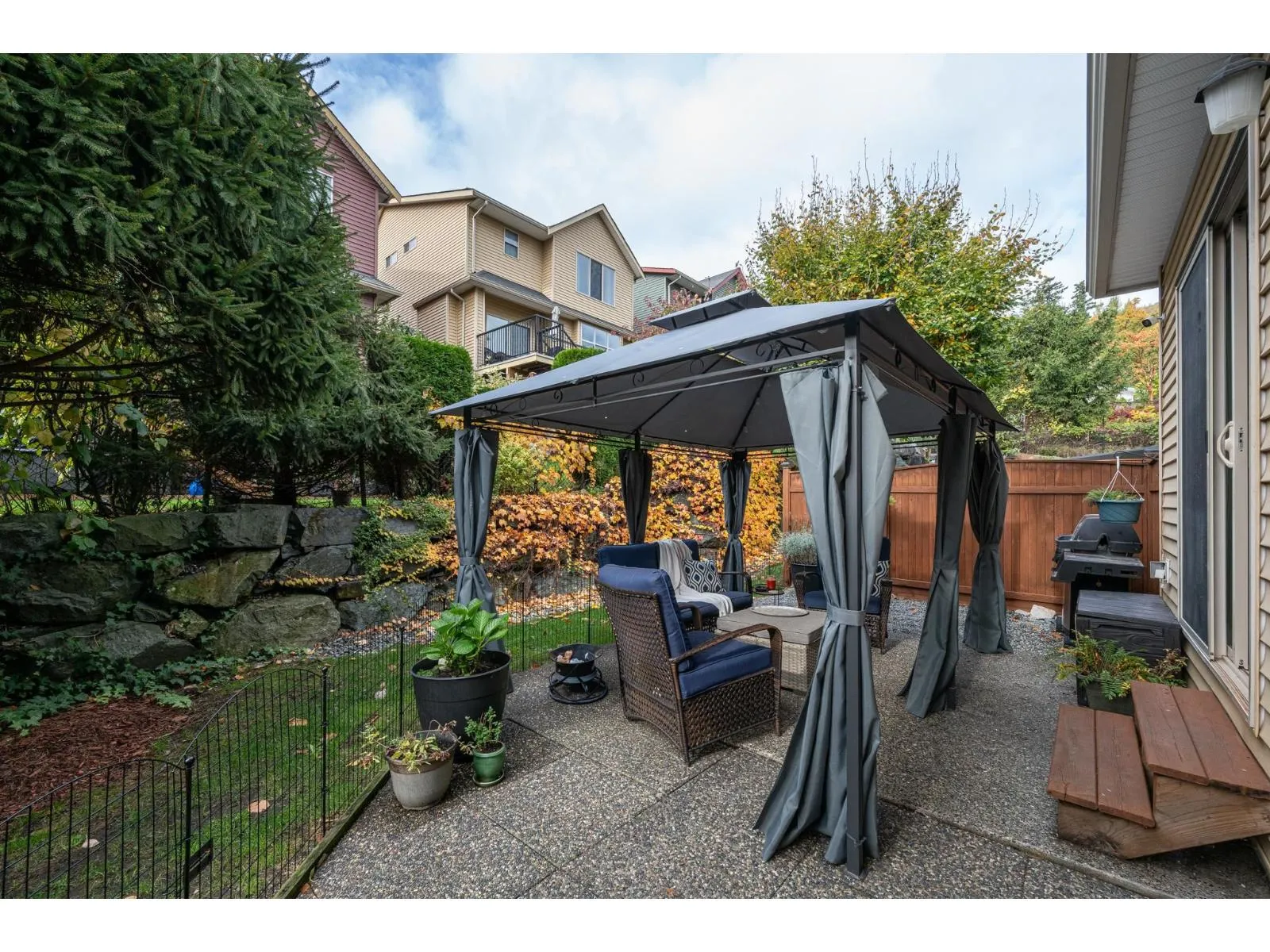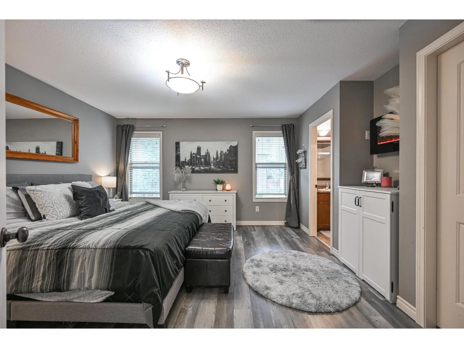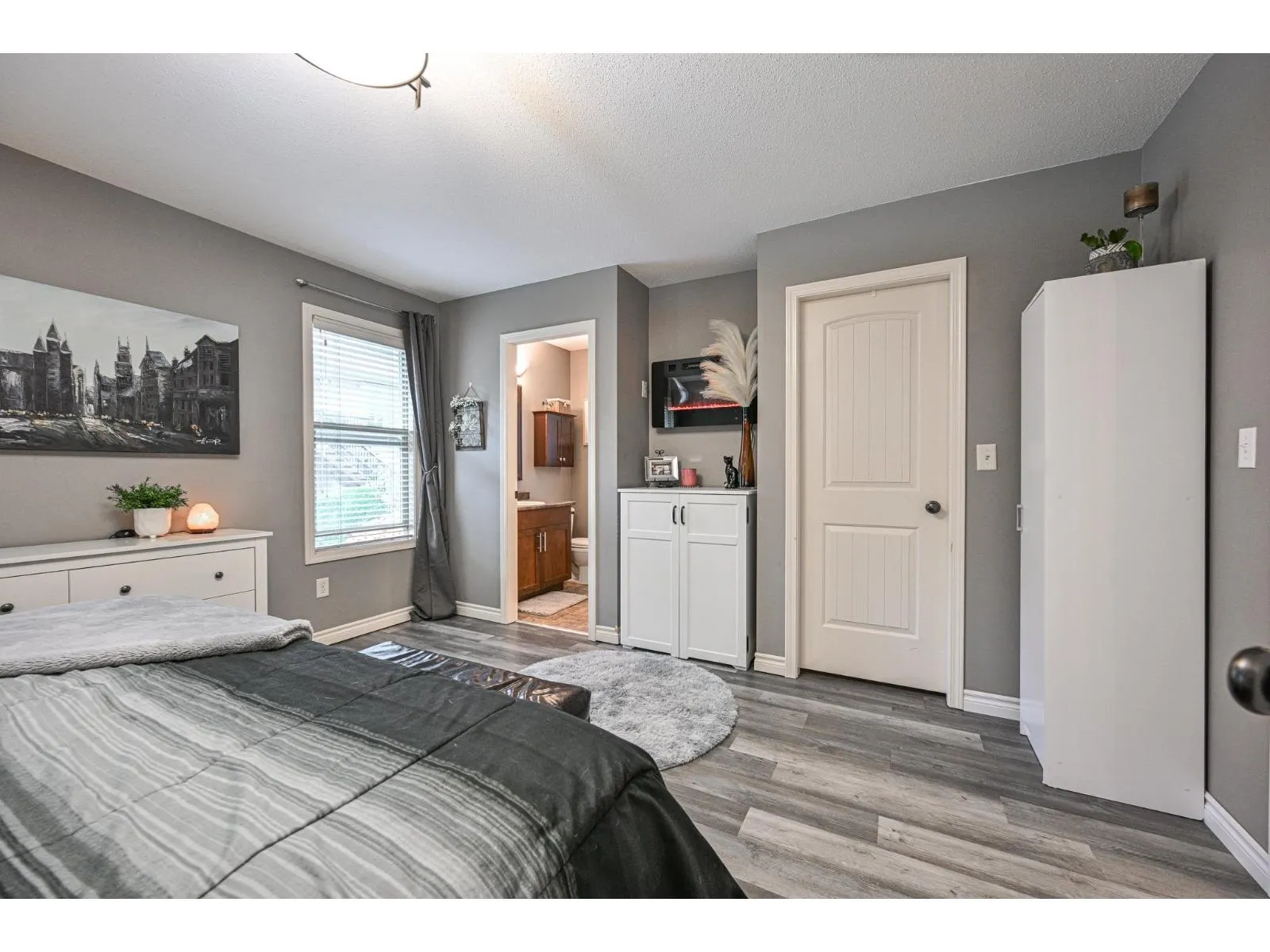 Welcome to Junction Creek! This FULLY DETACHED Whistler chalet-style townhome blends house-like space with strata ease. Bright open main floor boasts high ceilings, laminate floors, updated S/S kitchen appliances, shaker-style cabinets, centre island, stone elec fireplace, built-in hutch, den/small bedroom, dining area, walkout patio & front balcony. Upstairs: 2 generous spare beds, 4-pc shared bath, spacious laundry w/cabinetry, & large primary w/walk-in closet & 3 pc ensuite bath. Basement rec room ideal for movies or play. Upgrades: A/C, paint, flooring, light fixtures, & more. Side-by-side double garage + 2 driveway spots, & visitor parking avail. Pet-friendly! Prime spot near Hwy 1, shops, restaurants, schools (Prince Charles Elem, Clayburn Middle). Unbeatable value-see it today! (id:27476)