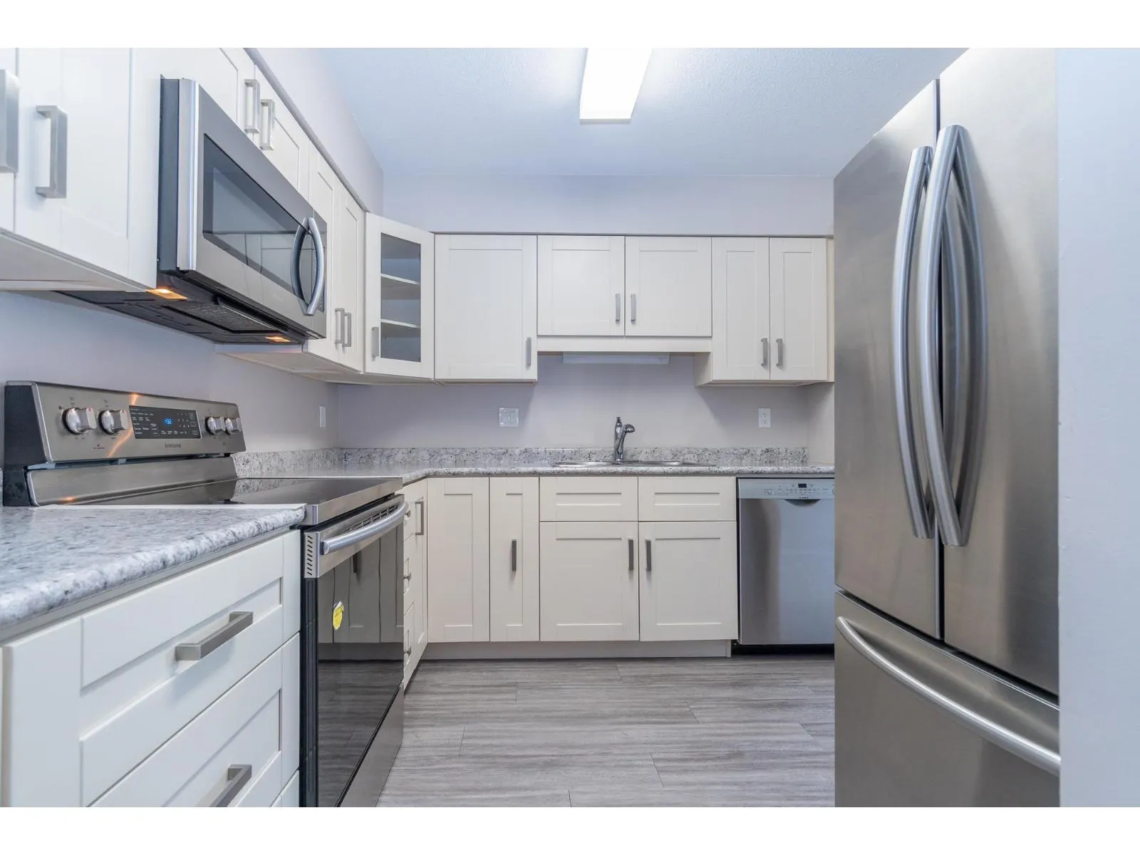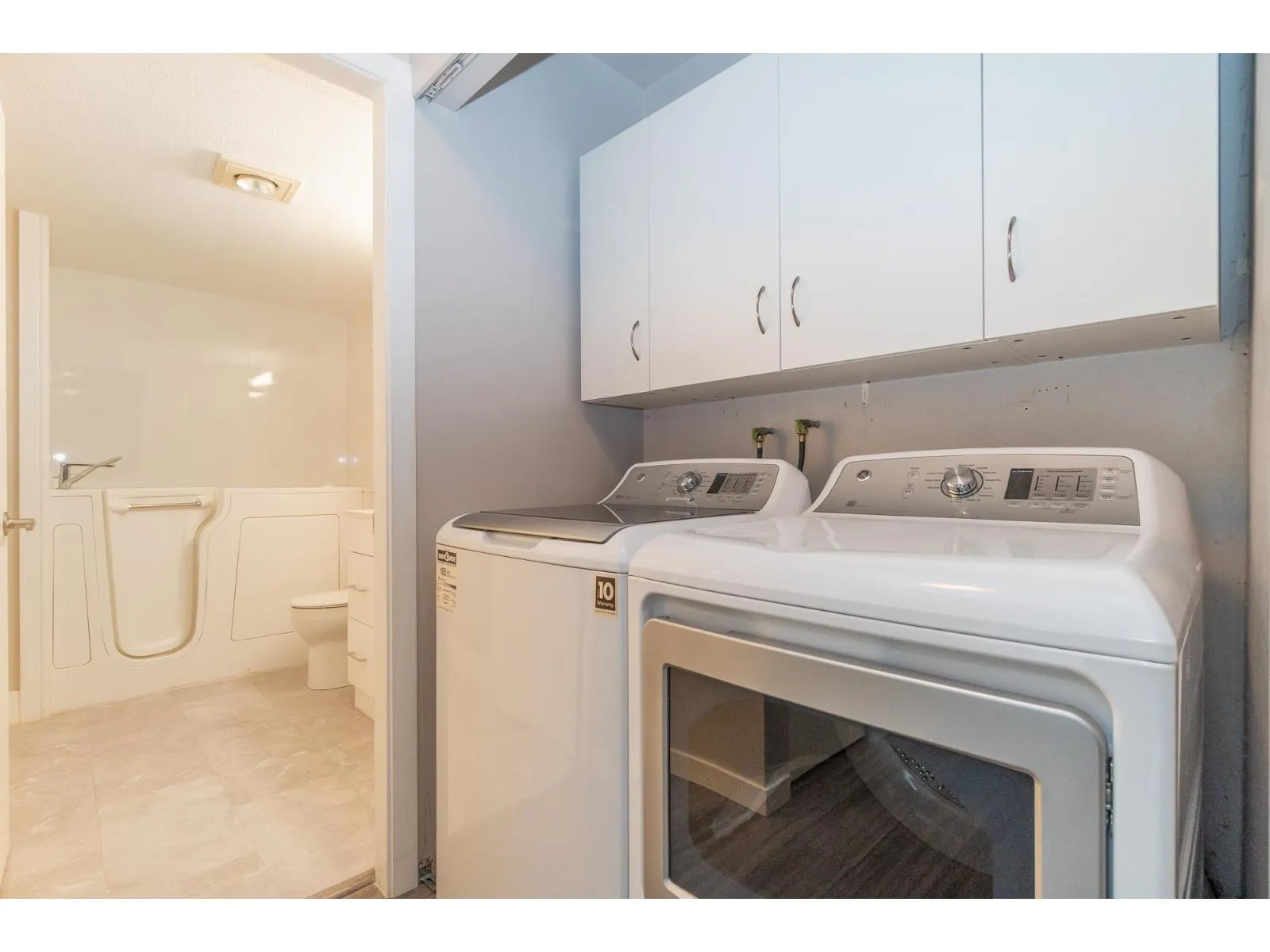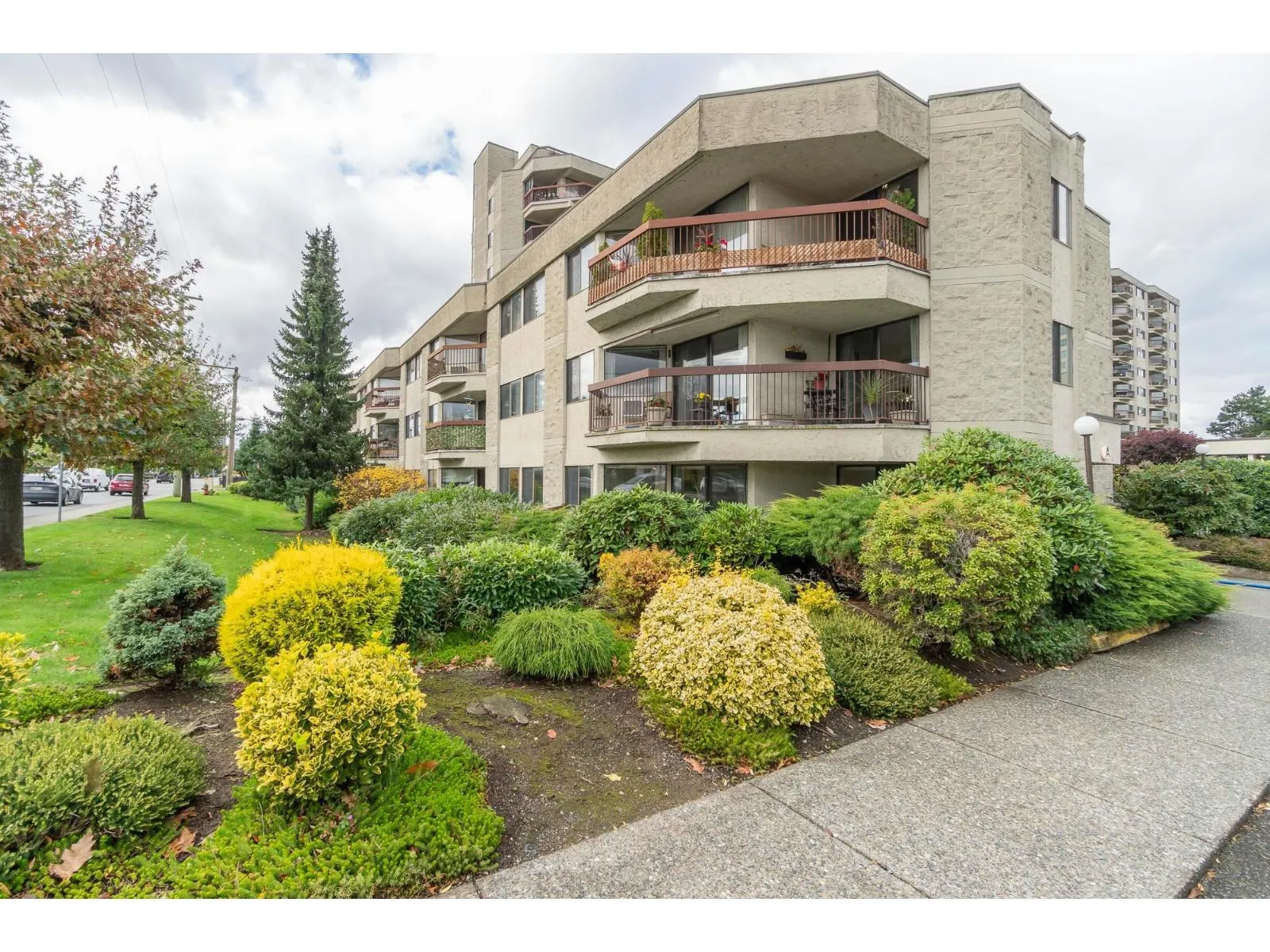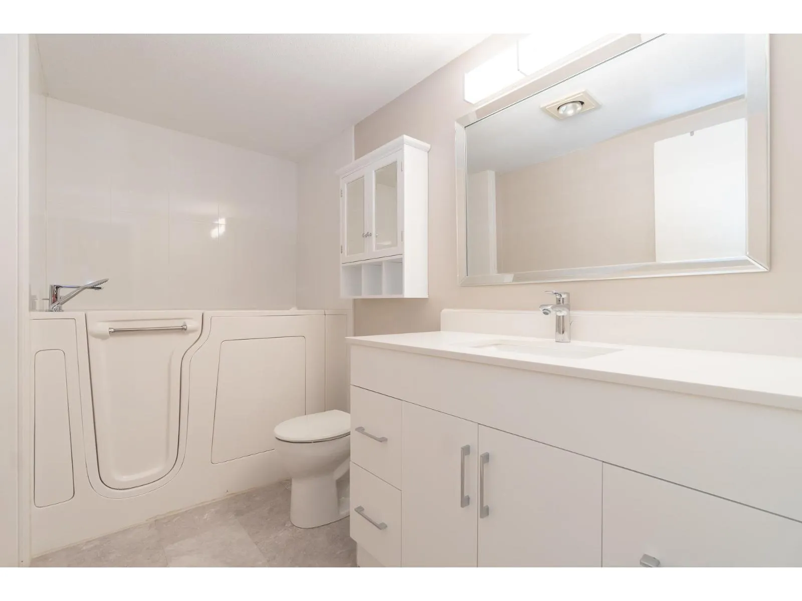 Welcome to Evergreen Village. One of Abbotsford's most desirable and well maintained 55+ buildings. Units like this don't come available often. This hidden gem is a ground floor corner unit and is located right by the entrance door and right by the parking lot for easy access. Featuring well lit 2 bedrooms, 1.5 bath, with updated kitchen cabinets and a professionally installed bathtub for anyone who may need assistance. The building offers top-tier amenities: indoor pool, hot tub, workshop, library, hobby/recreation rooms, and secured underground parking. Prime location with a bus stop out front and all essentials nearby. Call Today! (id:27476)