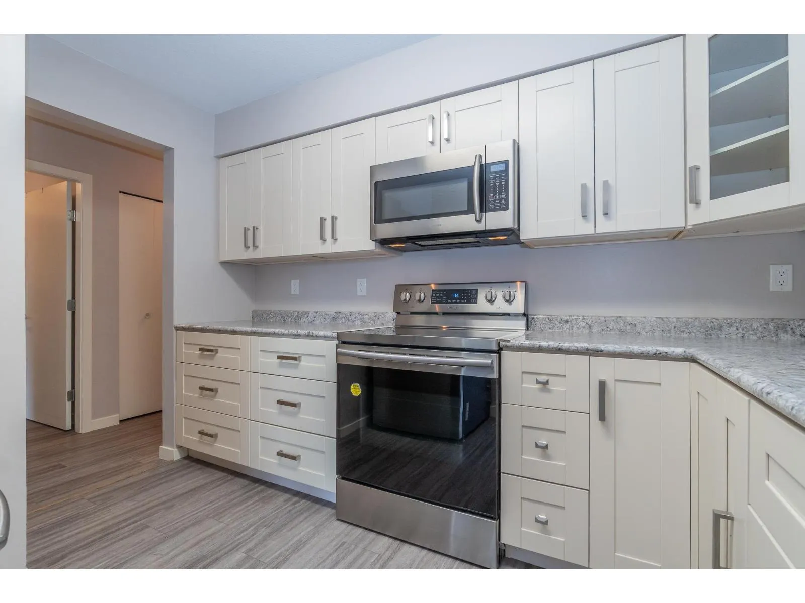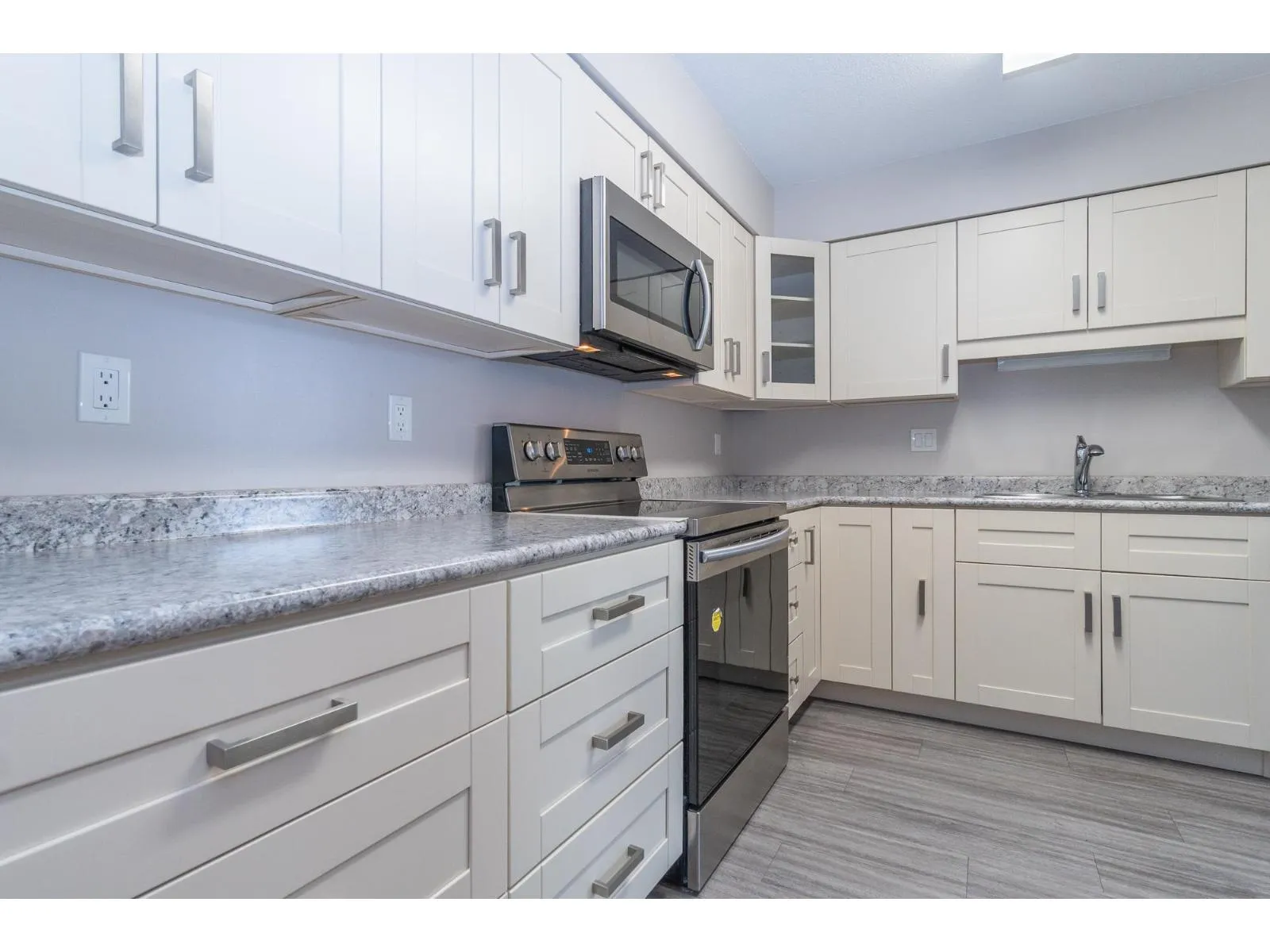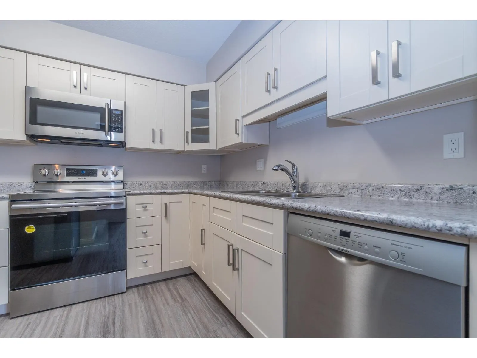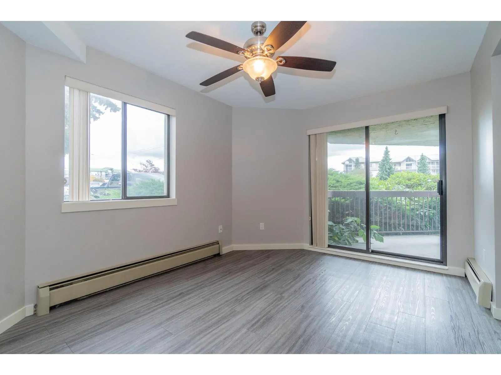 Welcome to Evergreen Village. One of Abbotsford's most desirable and well maintained 55+ buildings. Units like this don't come available often. This hidden gem is a ground floor corner unit and is located right by the entrance door and right by the parking lot for easy access. Featuring well lit 2 bedrooms, 1.5 bath, with updated kitchen cabinets and a professionally installed bathtub for anyone who may need assistance. The building offers top-tier amenities: indoor pool, hot tub, workshop, library, hobby/recreation rooms, and secured underground parking. Prime location with a bus stop out front and all essentials nearby. Call Today! (id:27476)