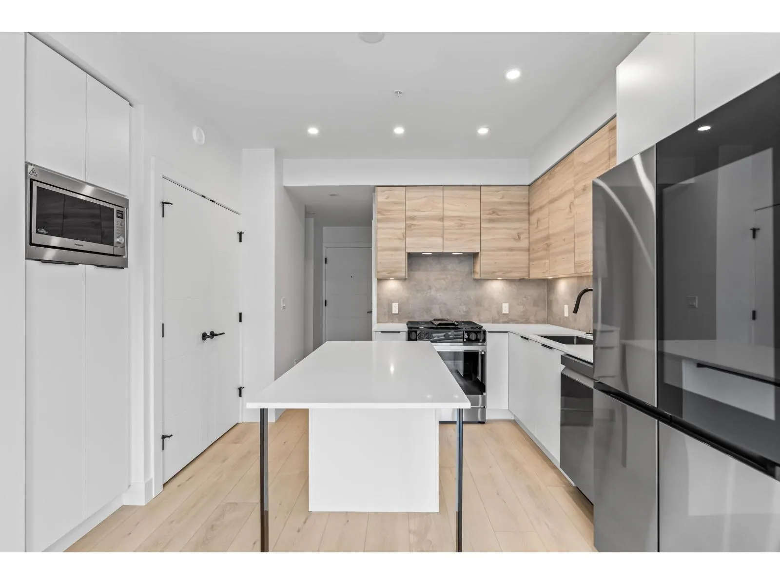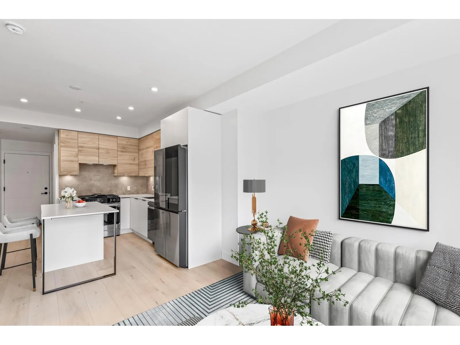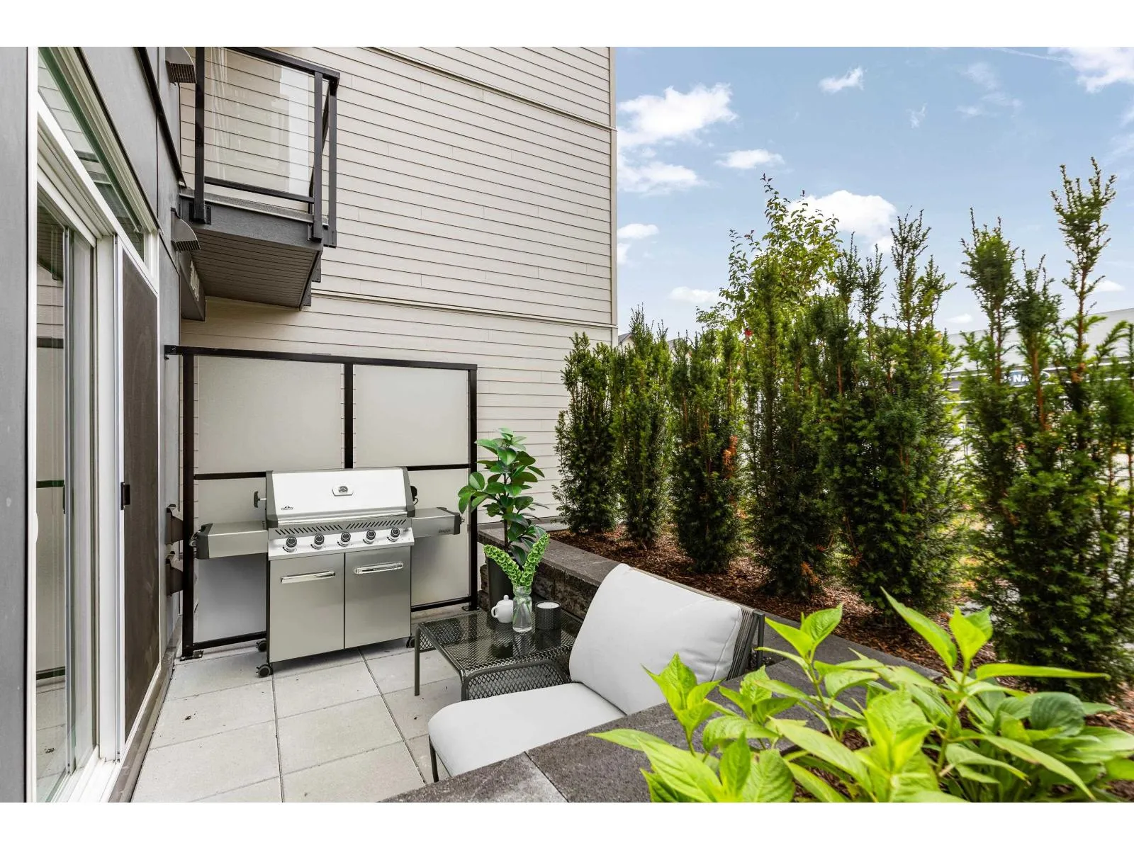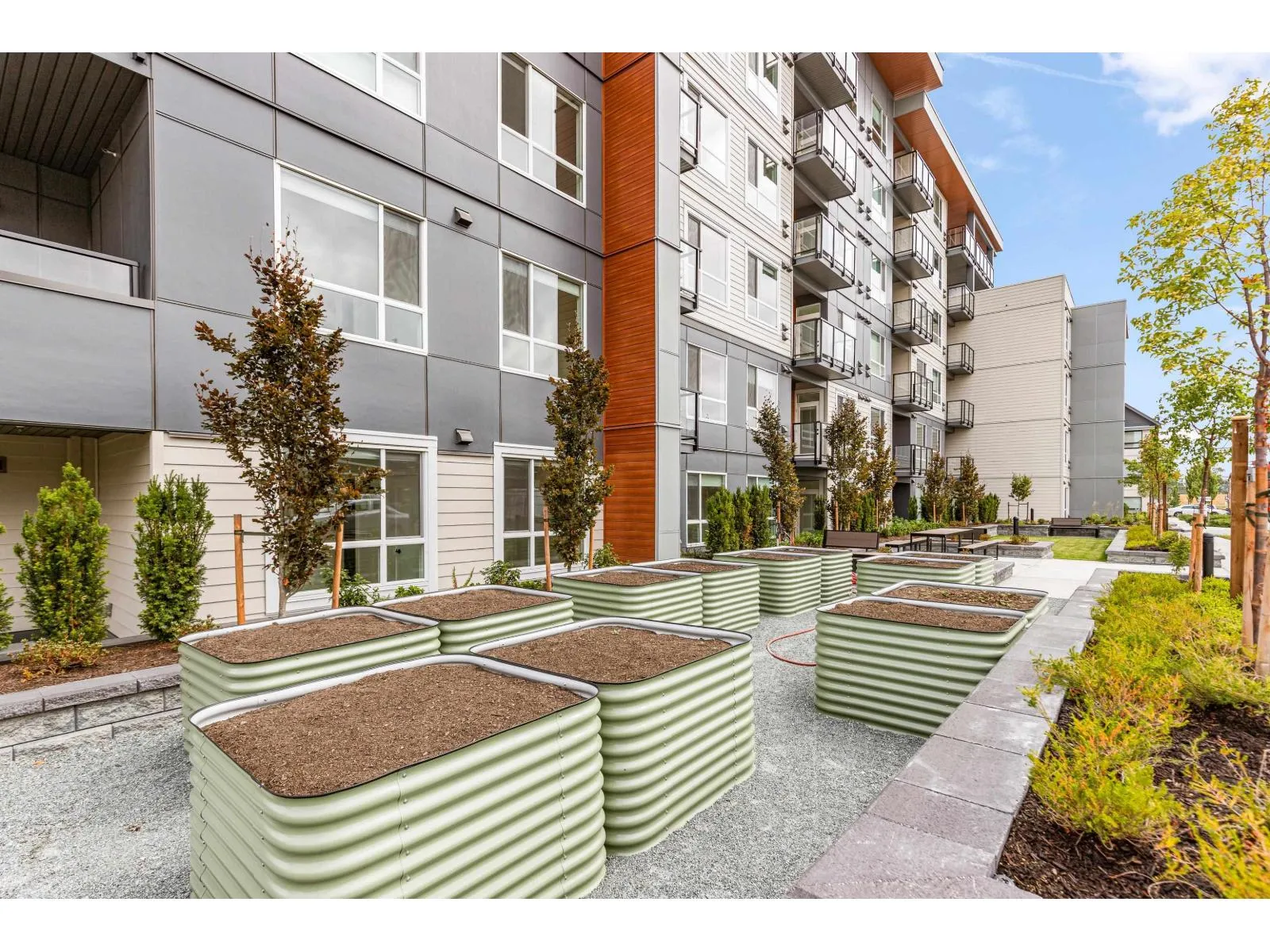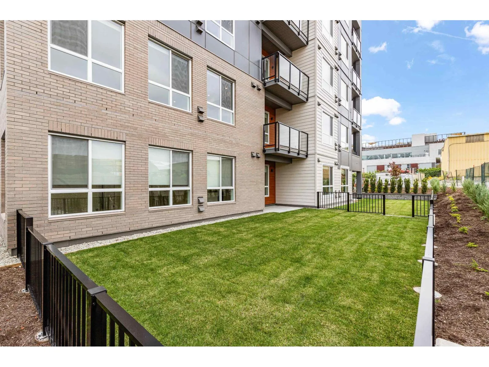 GARDEN WALKOUT OASIS! Welcome home to a stunning, newly built & move-in ready ground level home in highly anticipated HIGHSTREET VILLAGE. Rare chance to skip the presale process, enjoy your home today. SPACE! Spacious, functional 602t home boasts 9ft ceilings, bright+airy living, 1 bedroom w/expansive walk-in closet & functional den/office/nursery, dream kitchen, built-in storage solutions. CONVENIENCE! Step onto your patio, into town without the elevator. Enjoy green backdrop throughout! QUALITY! Luxury built by AB Wall Group, w/2-5-10 warranty. Bonus huge storage locker aside parking. LOCATION! Incredible position in Abbotsford's most Westerly setting minutes to Langley. WALKSCORE! Steps to Highstreet Shopping Mall, restaurants, daycare, at foot of the HWY! Airport a few minutes away! (id:27476)