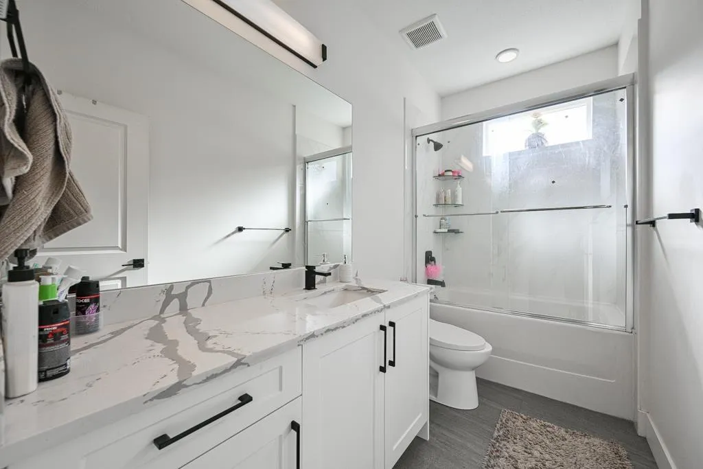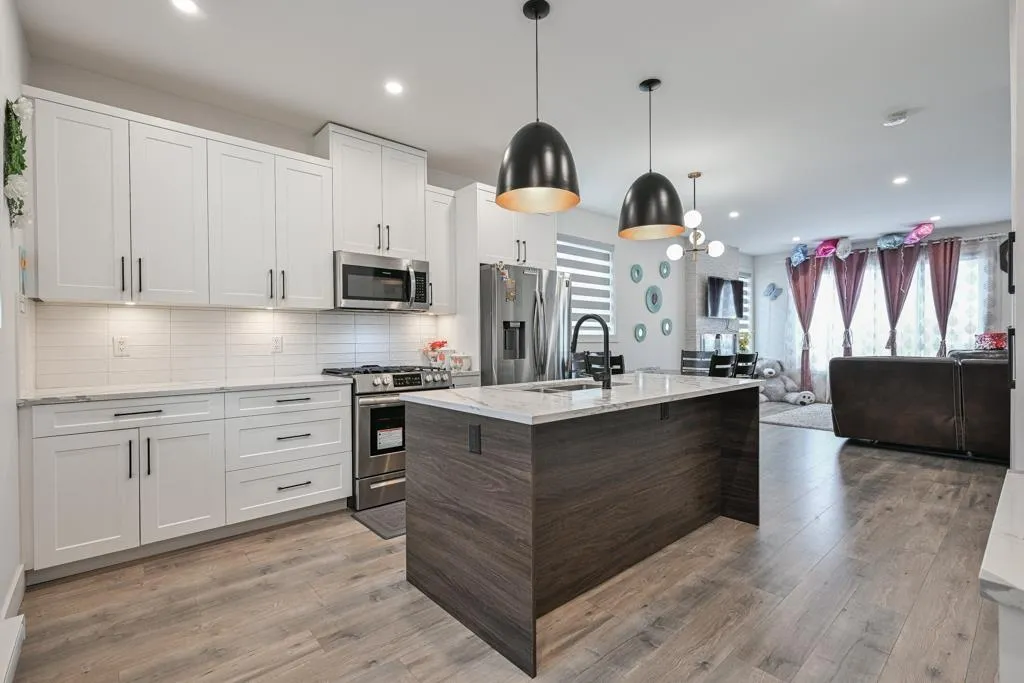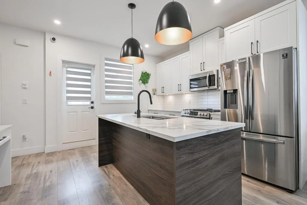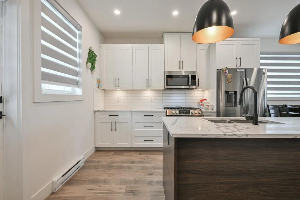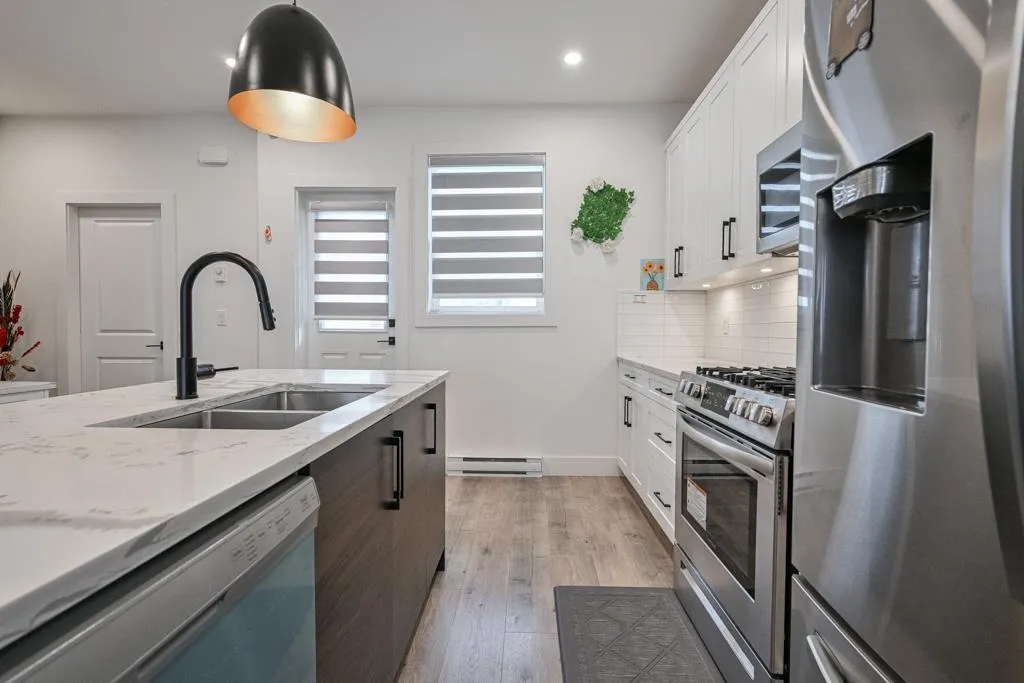 Rare find CORNER Townhouse with 2 SEPARATE ENTRANCES and PARKING for 3 VEHICLES. This exceptionally kept home shows 10/10. Spacious open plan kitchen with LARGE Island and Stainless Steel appliance including NATURAL GAS stove, 3 Door Fridge and gas BBQ hook-up in balcony. BONUS generous size WALKOUT DEN can be used in many ways as it has its own separate entrance. Enjoy lots of natural light all day long. Walking distance to everyday amenities including FreshCo Starbucks, Banks, Restaurants & Aldergrove Downtown etc. Located between Langley and Abbotsford with Easy access to Hwy #1, Highstreet Shopping Mall, Greater Vancouver Zoo and more. View to appreciate! **CHECK VIRTUAL TOUR** (id:27476)