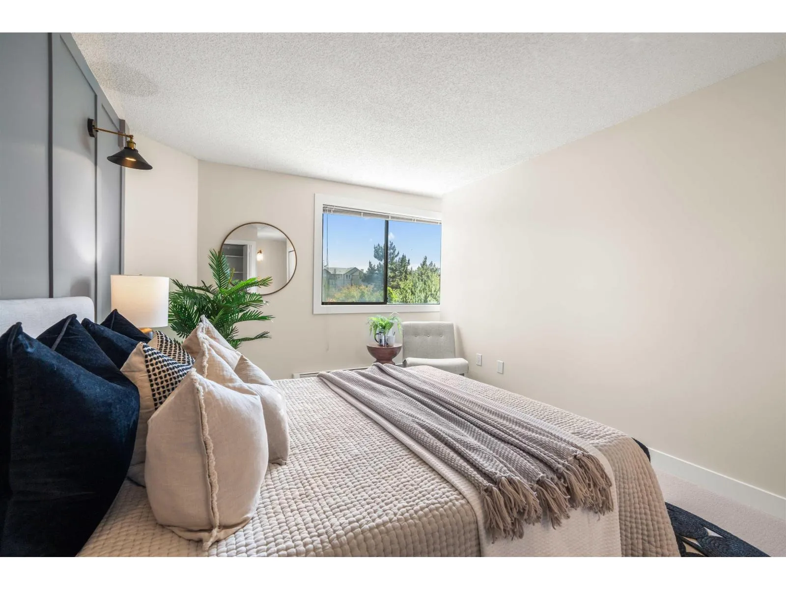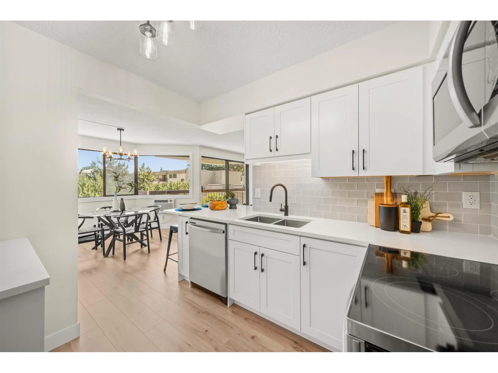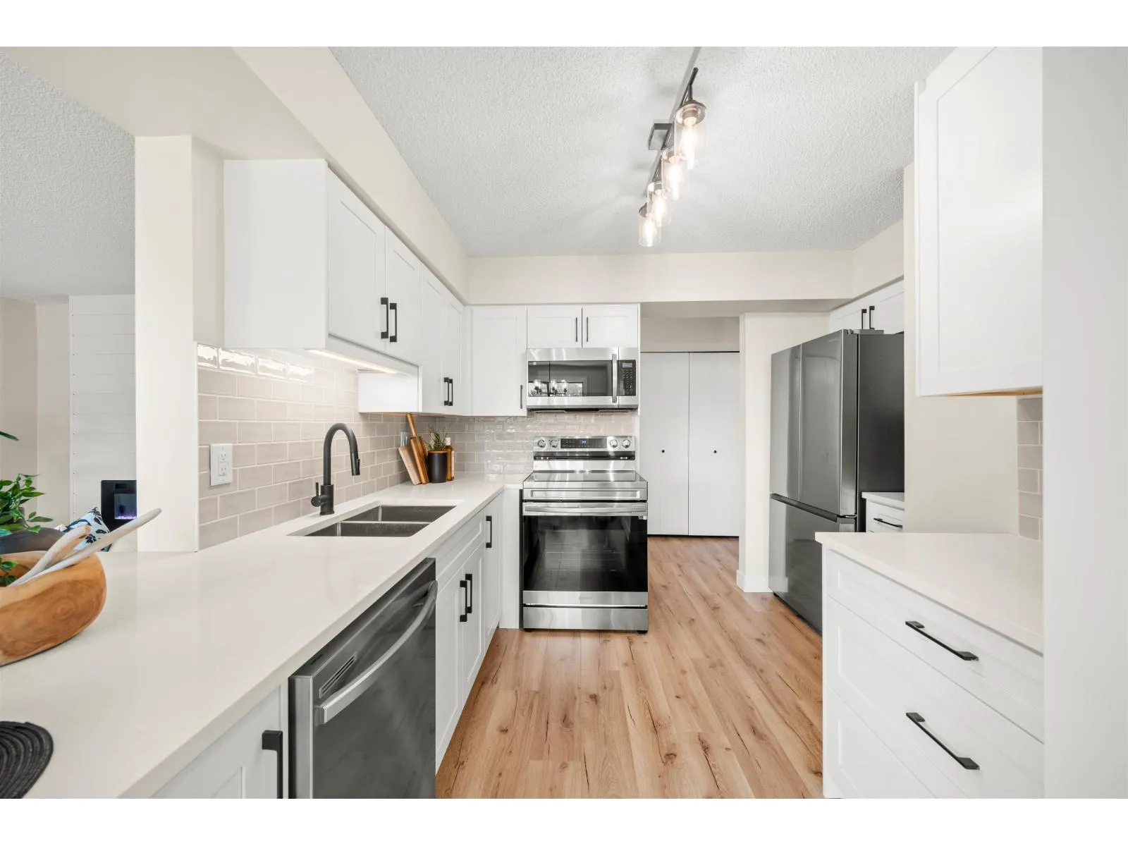 Renovation! Renovation! Renovation! This 2 bed, 2 bath unit is in Evergreen Village-one of Abbotsford's best managed 55+ communities. Concrete construction makes this home quiet and solid! Enjoy a spacious open-concept layout with a deluxe chef's kitchen, quartz counters, custom cabinetry, new stainless appliances, laminate flooring, A/C, and spa-like baths. Includes in-suite laundry and a versatile office/storage room. The building offers top-tier amenities: indoor pool, hot tub, workshop, library, hobby/recreation rooms, RV parking, guest suit and secured underground parking. Prime location with a bus stop out front and all essentials nearby. Call Today! (id:27476)