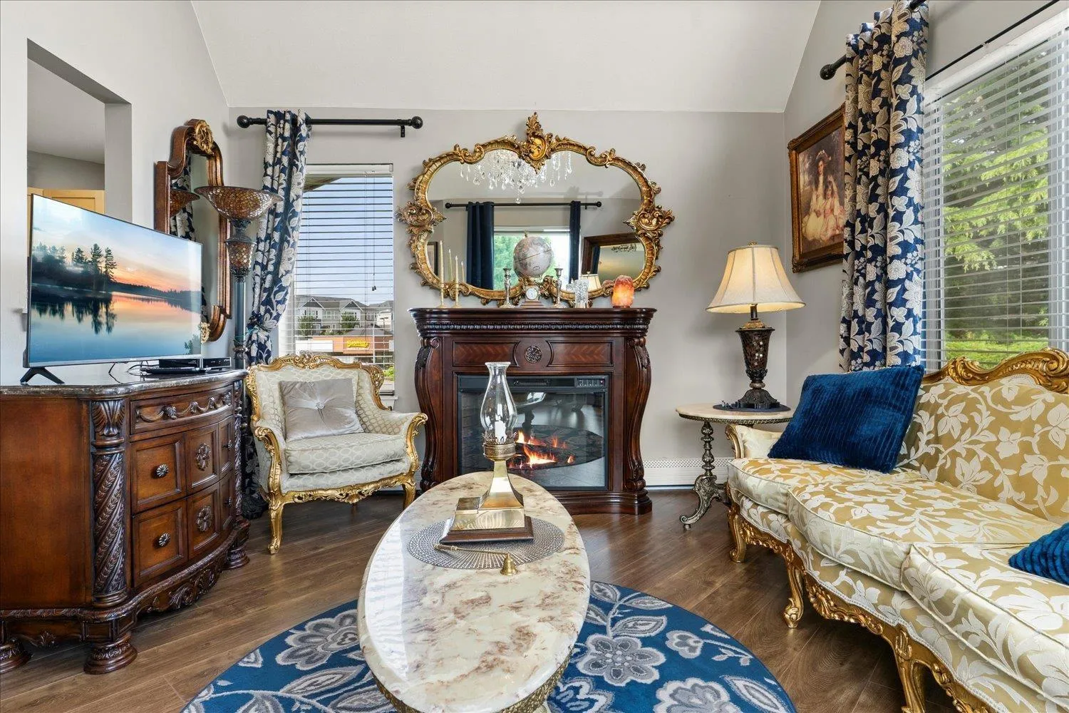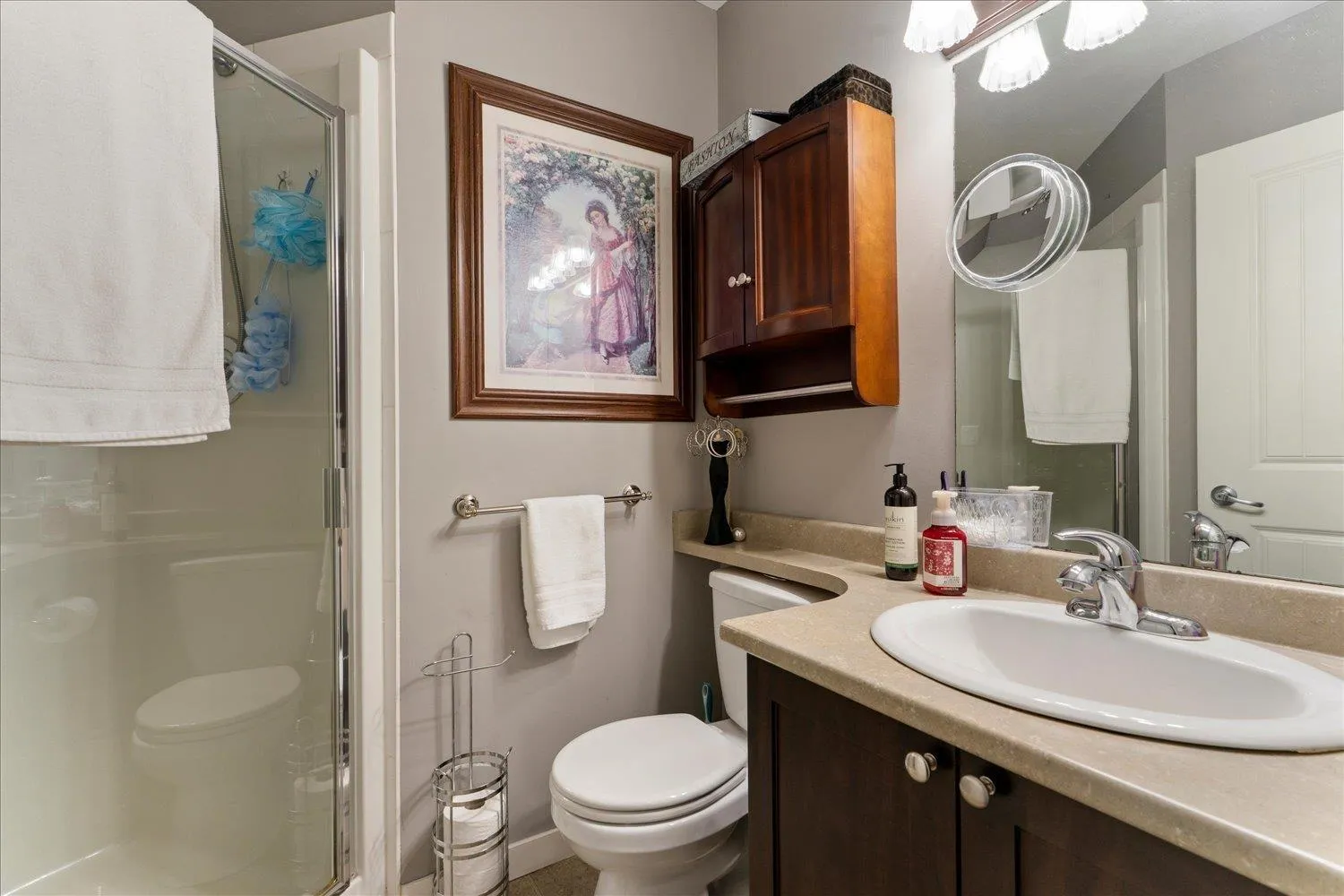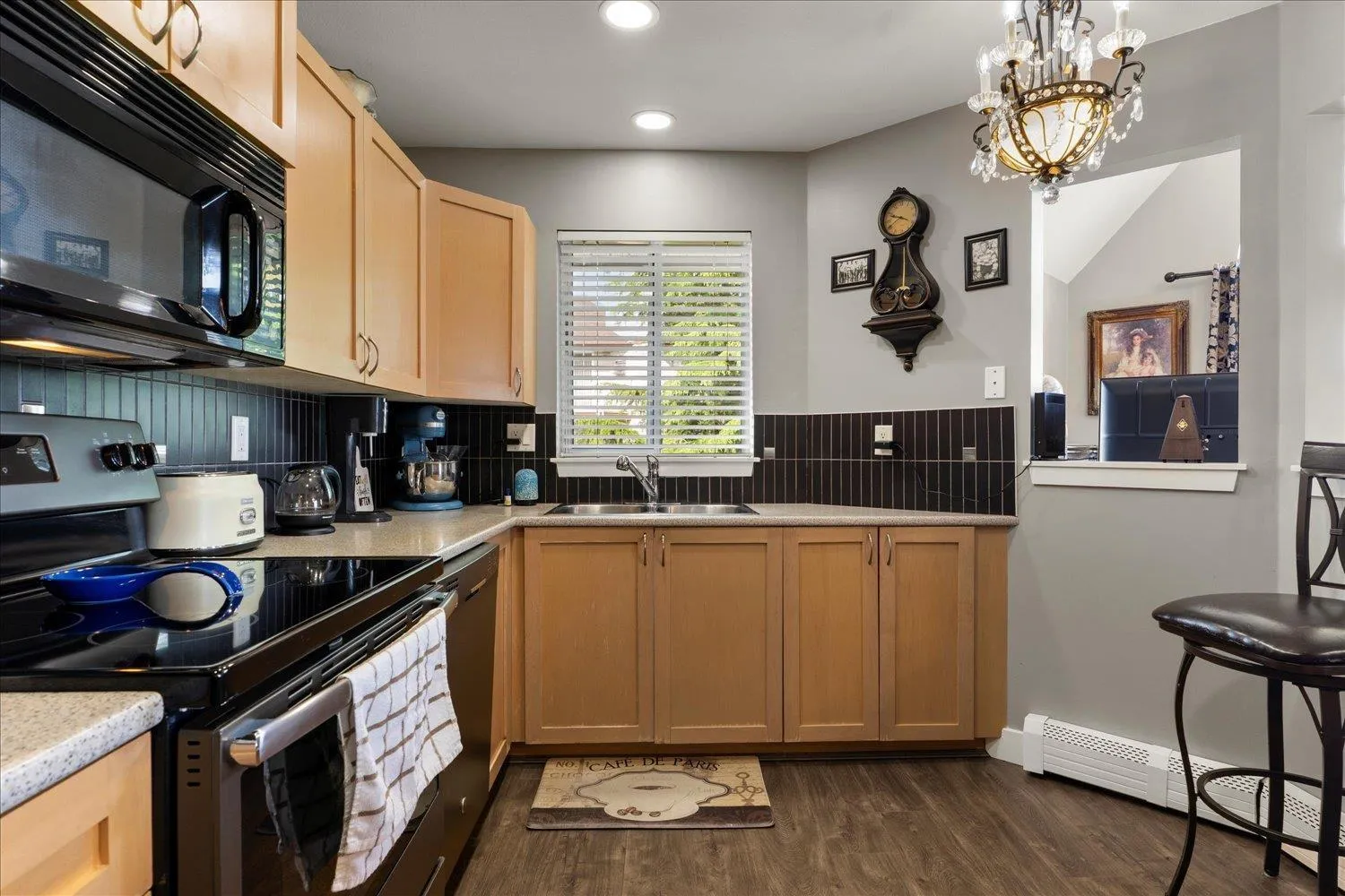 Welcome home to Uptown. This home features 2 bedrooms and 2 bathrooms in a bright and spacious top floor corner unit. You will love the kitchen with shaker style cabinets, tile backsplash, granite counters, eating bar, and stainless steel appliances with a flat top stove. The primary bedroom features a walk in closet and full ensuite. This home is located on the quiet and private NW corner of the building and also features 12 ft vaulted living room ceilings, a private balcony, and in-suite laundry. This home is in excellent condition throughout and you will appreciate the great location within walking distance of many amenities. This home also includes 2 underground parking stalls. 2 pets allowed with restrictions. Check out the photo tour, floorplan, and call today to view this home! (id:27476)