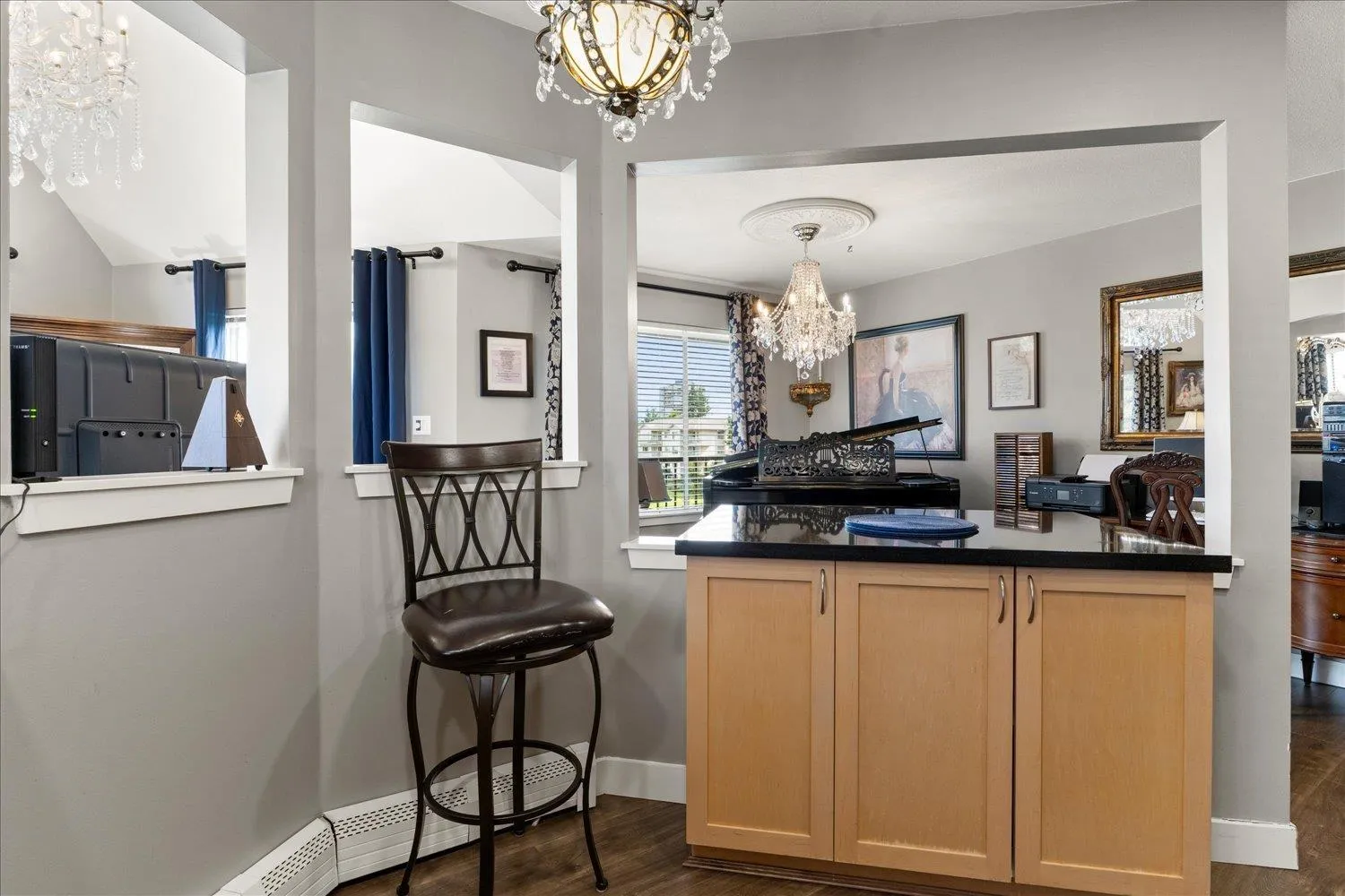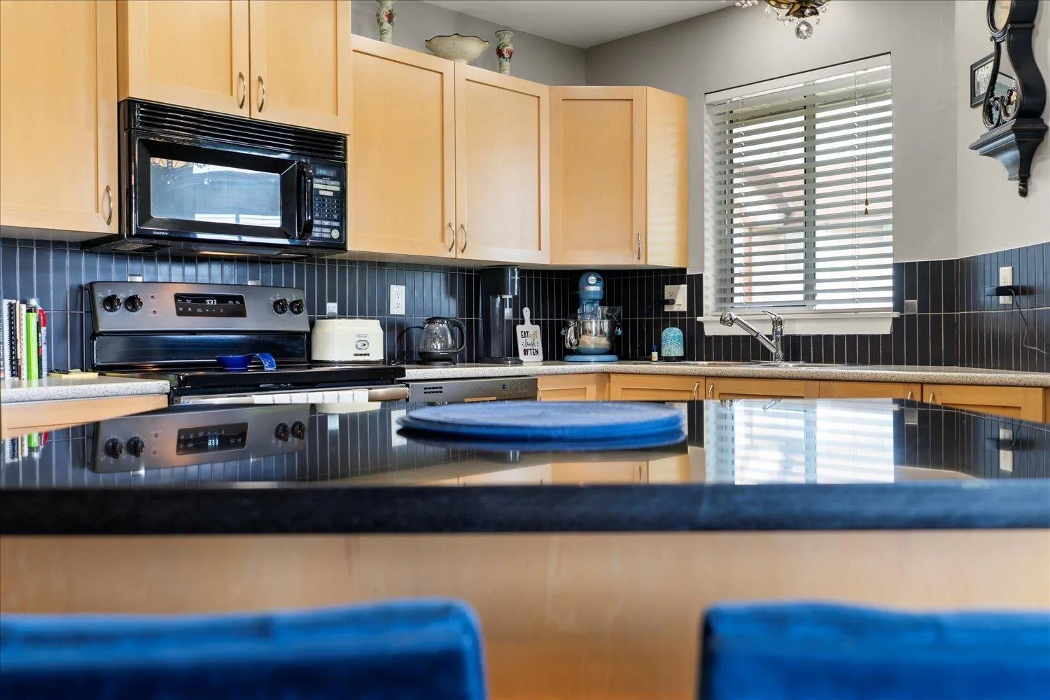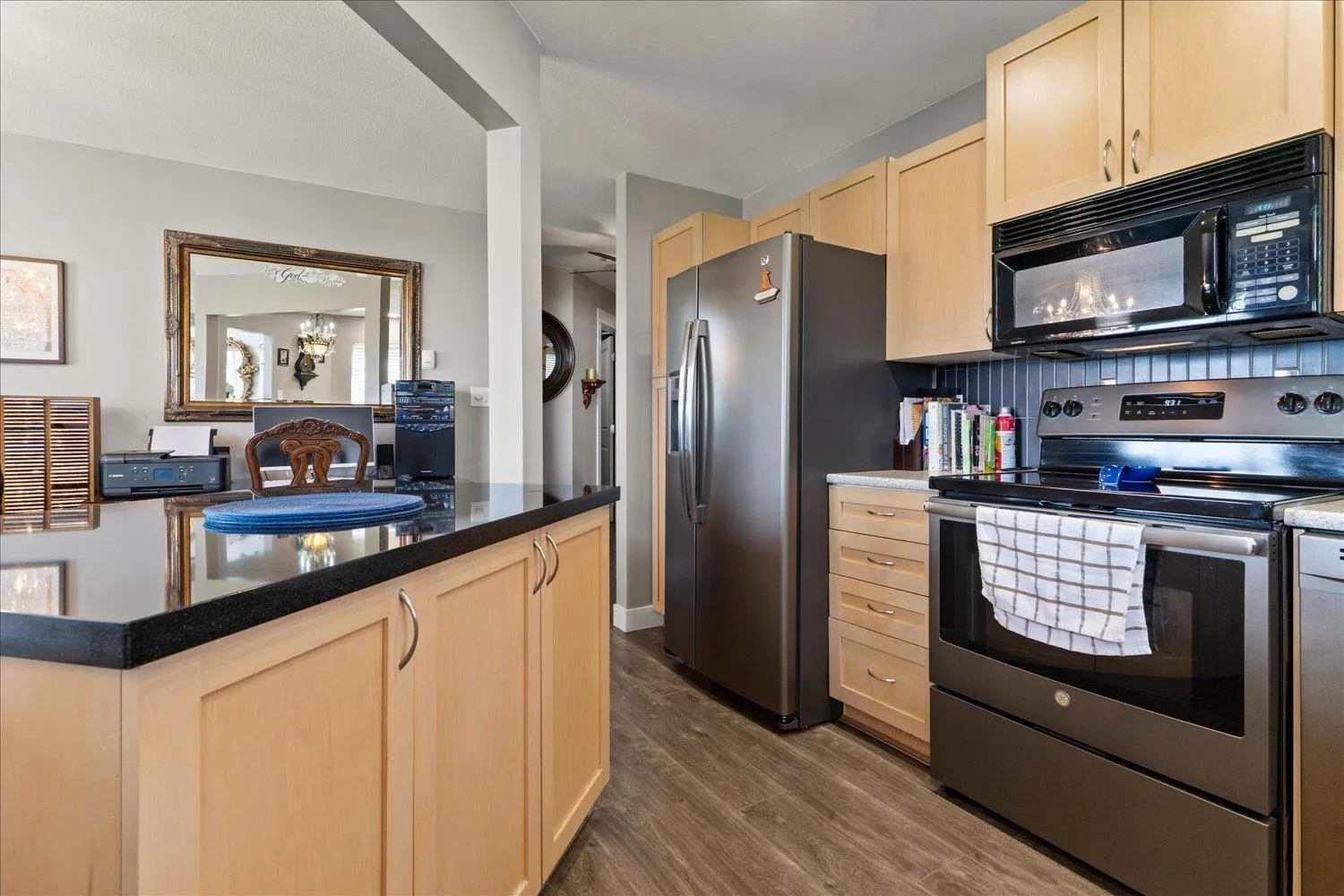 Welcome home to Uptown. This home features 2 bedrooms and 2 bathrooms in a bright and spacious top floor corner unit. You will love the kitchen with shaker style cabinets, tile backsplash, granite counters, eating bar, and stainless steel appliances with a flat top stove. The primary bedroom features a walk in closet and full ensuite. This home is located on the quiet and private NW corner of the building and also features 12 ft vaulted living room ceilings, a private balcony, and in-suite laundry. This home is in excellent condition throughout and you will appreciate the great location within walking distance of many amenities. This home also includes 2 underground parking stalls. 2 pets allowed with restrictions. Check out the photo tour, floorplan, and call today to view this home! (id:27476)