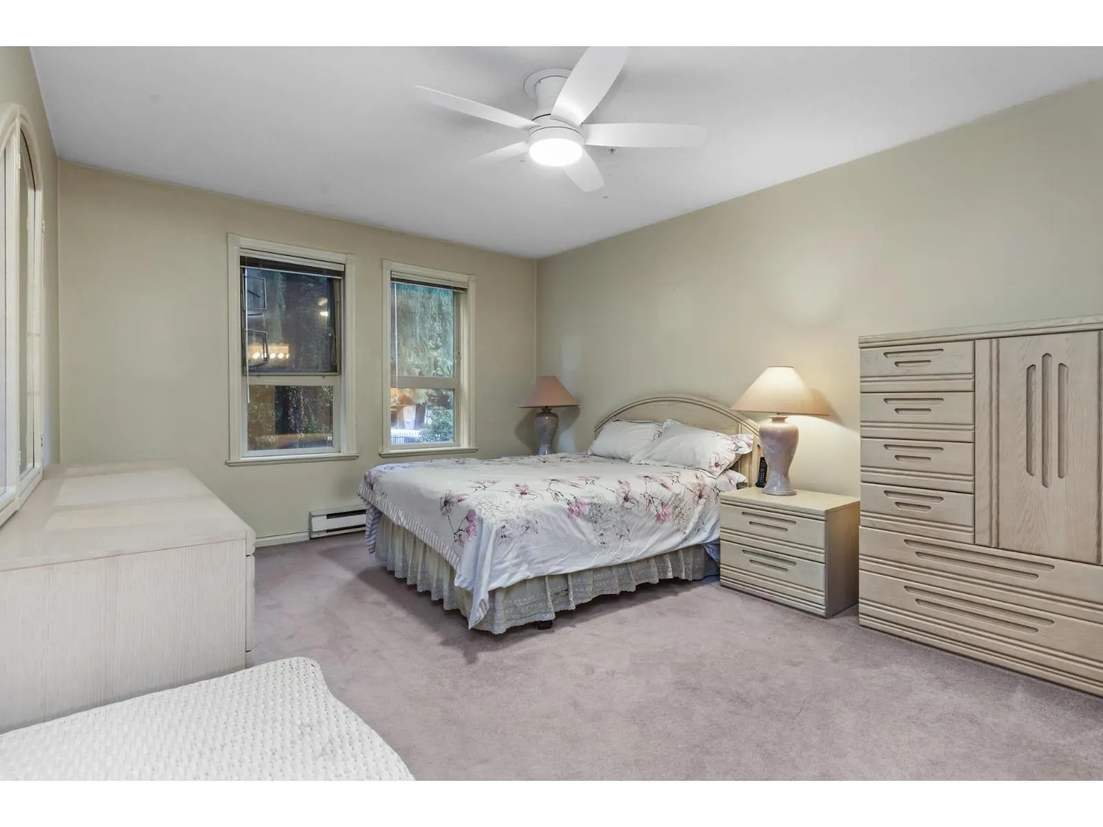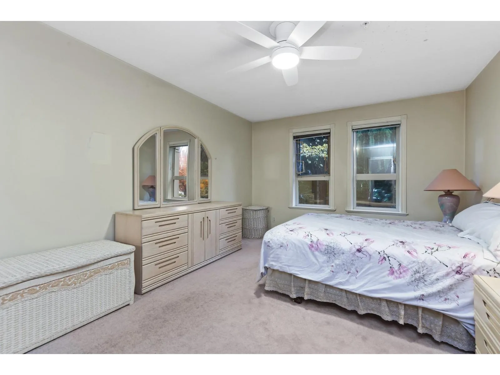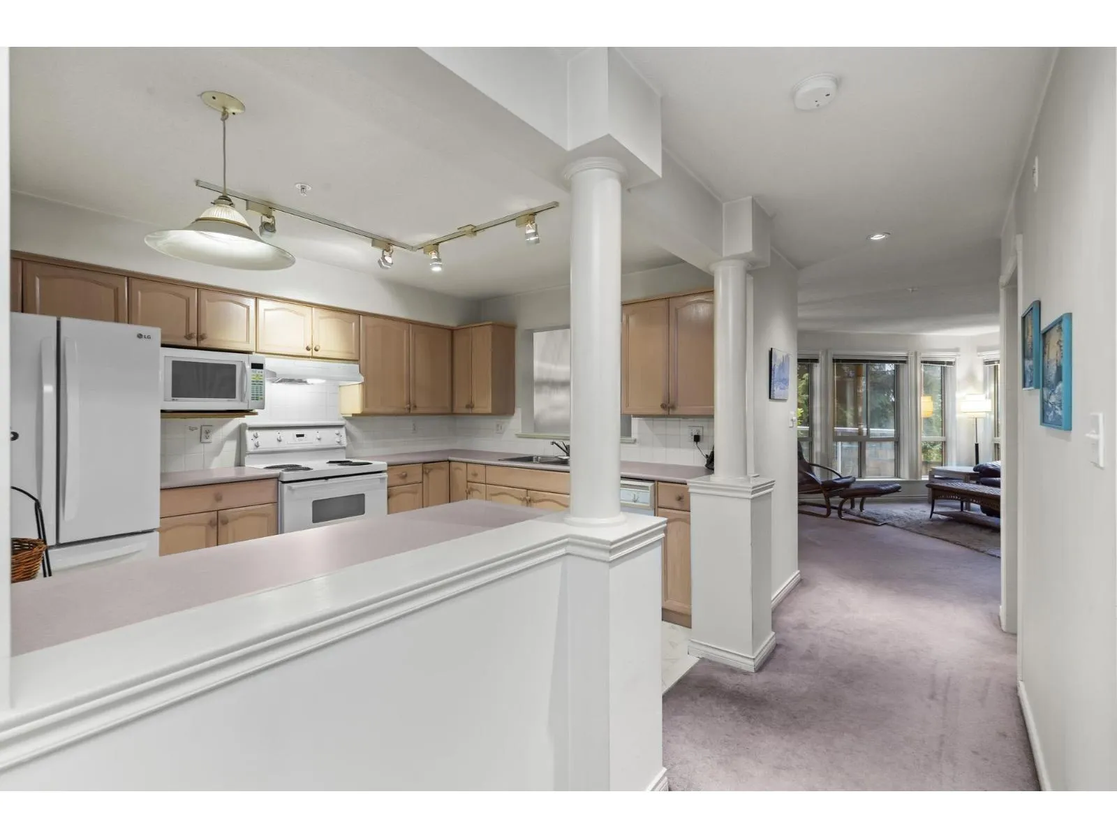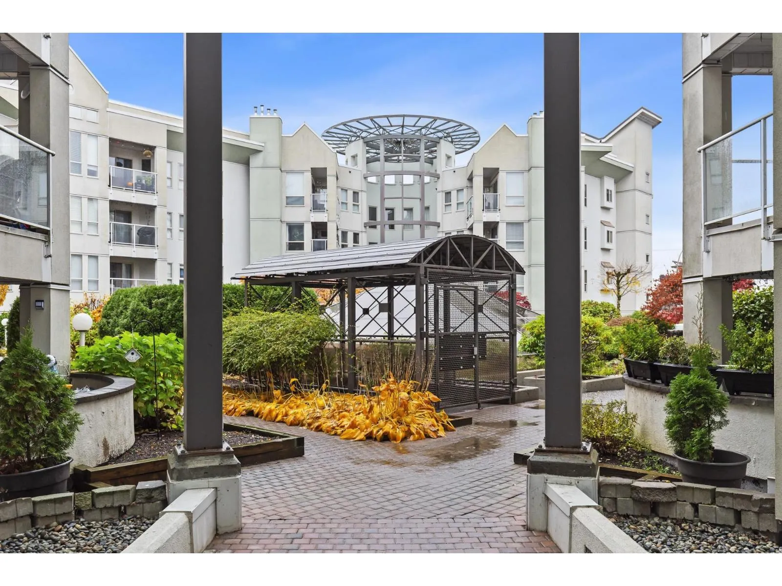 Endless Potential in Prime Location! Spacious 2bed, 2bath Corner unit, facing best complex side! 1,177 sqft of living space and incredible potential. In original condition, buyer ready to add vision & make it their own. Abundant natural light from extra corner windows, peaceful lush greenery views off deck. Open layout for generous living space, large kitchen w/ plenty counter space & impressive primary w/large walk-in closet and ensuite. Full Laundry w/ storage. Well-managed w/ fab amenities, sunlit lounge, fitness & rec rm w/pool & games tables, Bike rm & Guest Suite. Steps from Mill Lake, Sevenoaks Mall, restaurants, transit. Strata fee incl fireplace gas & hot water. Cat or Dog up to 22pnds allowed. Storage / 1 parking + add rentals if available! *OPEN HOUSE Sat Nov 22nd 12-2pm* (id:27476)