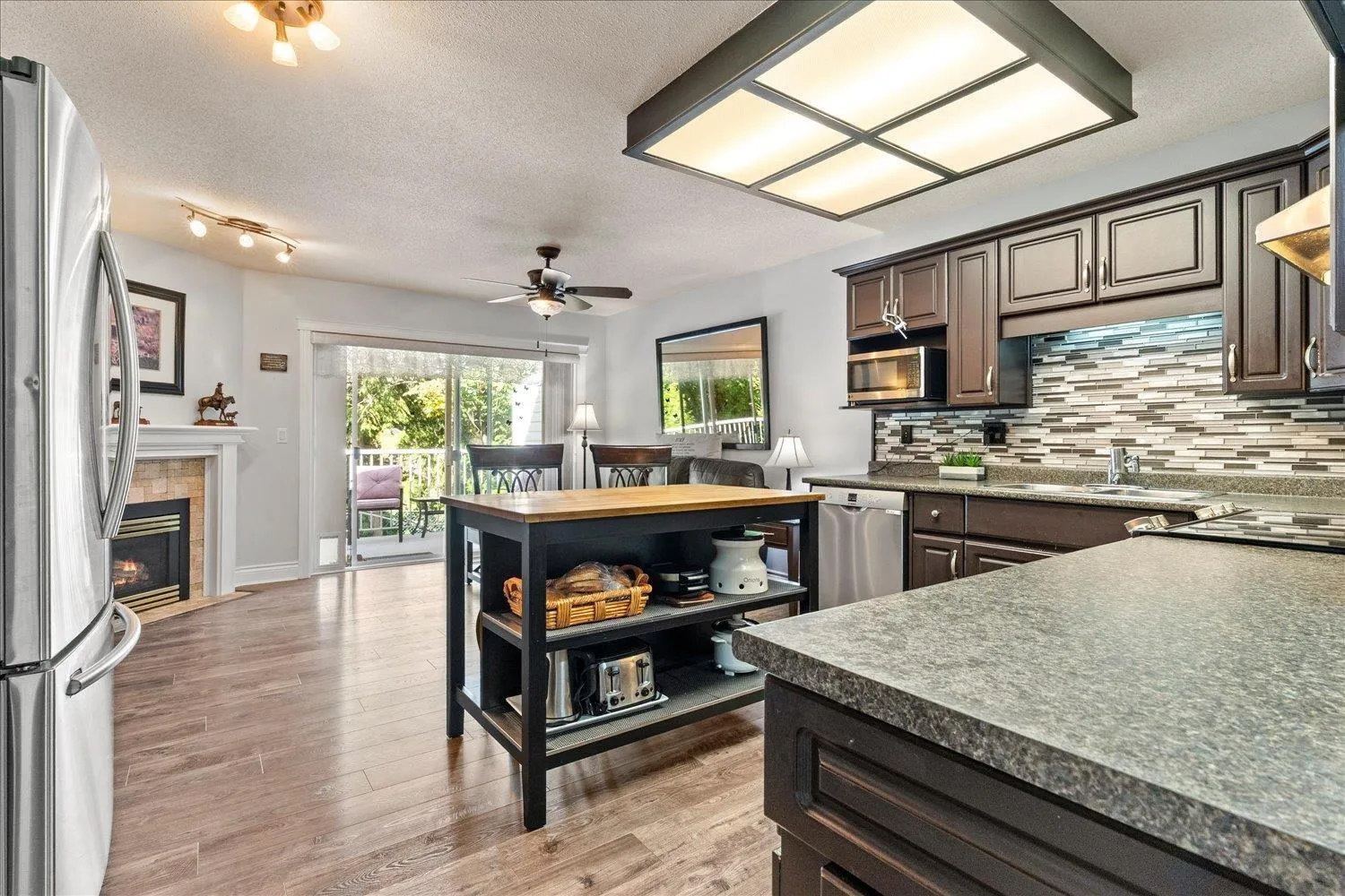 Discover the charm of Still Creek living! Once a show home, this well-kept residence sits on the largest lot in the complex, tucked away in a peaceful cul-de-sac. With over 3,000 sqft, it offers 4 bedrooms, 3 bathrooms, and plenty of space for the whole family. The main level features a large kitchen with movable island and S&S appliances, open living and dining areas, and the primary suite plus two bedrooms. Enjoy your main-level balcony among the trees or the lower patio backing onto a serene greenbelt. Downstairs includes a fourth bedroom and flexible space for guests or recreation. No shortage of storage area!! Complete with a double garage+3rd spot outside, nearby visitor parking, newer roof, and a well-run, family-friendly strata-close to schools, parks, shopping, and transit. (id:27476)