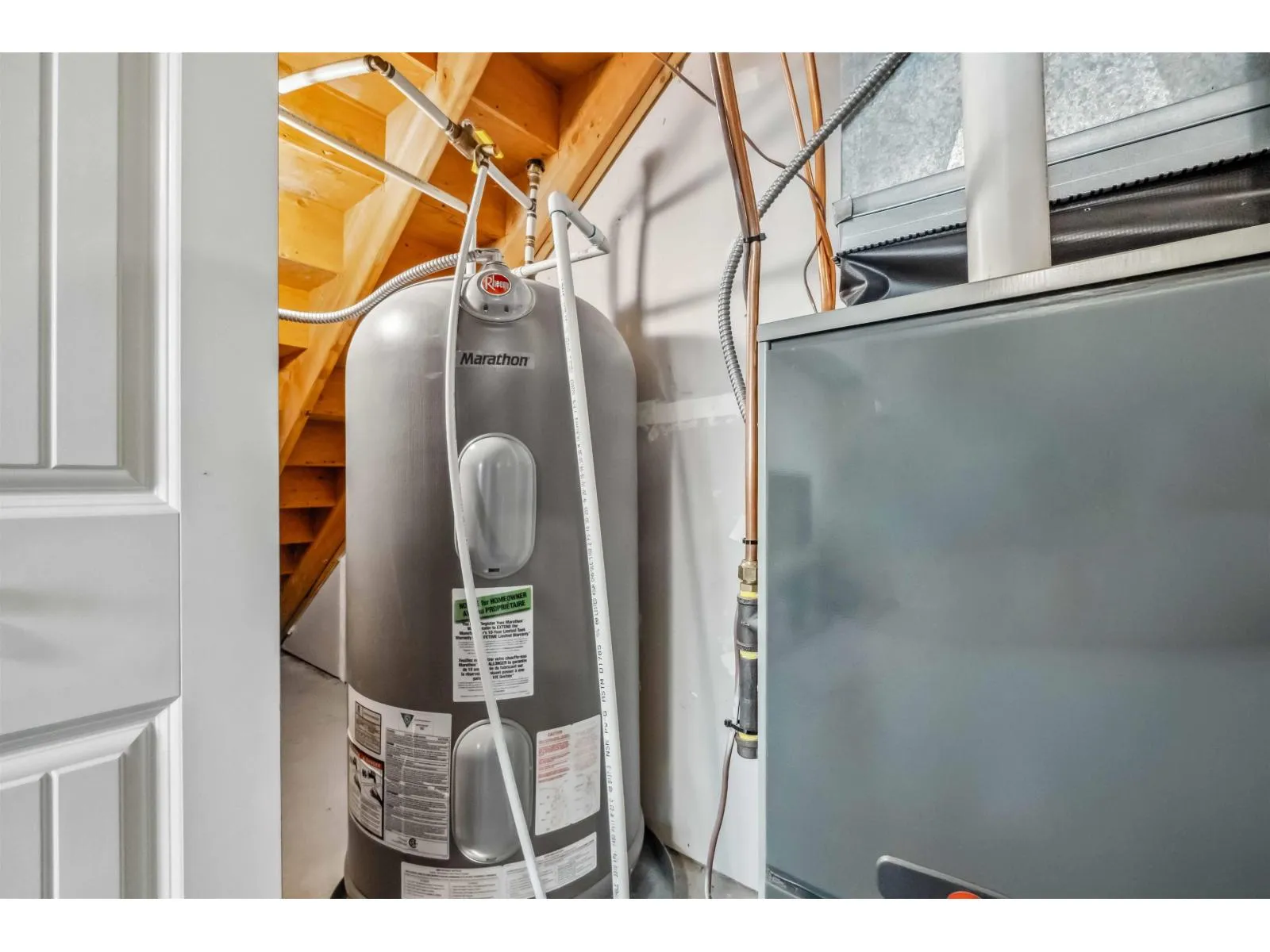 Spacious Duplex-Style Townhome in Ledgeview Villas! Quietly tucked away, this beautifully maintained home features open-concept main level with hardwood flrs, 9' ceilings, crown molding, gas FP & convenient powder rm. Kitchen offers granite counters, quality cabinets & newer stainless-steel appliances. Upstairs offers 3 bdrms, laundry, 4-pc bath, primary suite with WI closet & 5-pc ensuite. Fully finished basement with bdrm, 4-pc bath, wet bar, large fam rm, extra storage & separate entrance. Updates incl carpet, paint, HE furnace w/smart thermostat, Rheem Marathon HW tank, EV charging outlet & front patio awning. Private, fenced yard backs onto lush green space. Fantastic East Abby location near great schools, golf, trails & quick freeway access. Pet friendly(2 pets, no size restrictions) (id:27476)