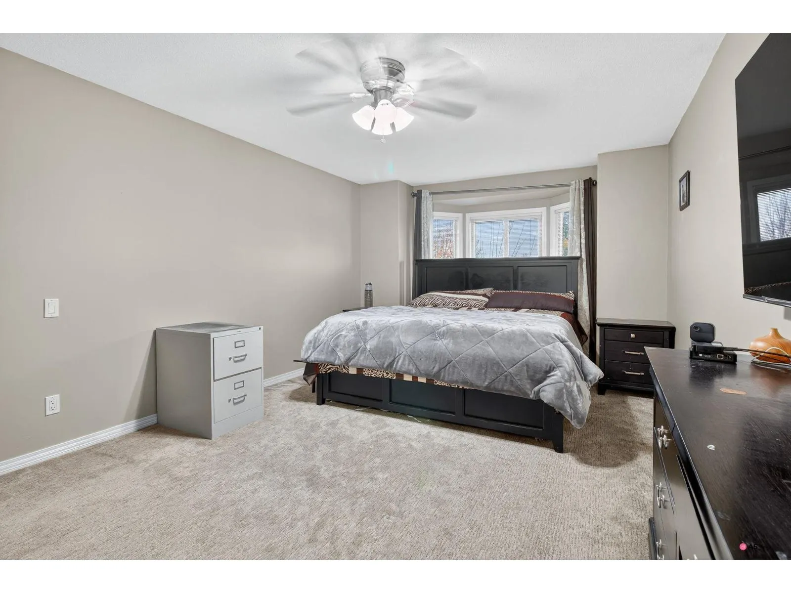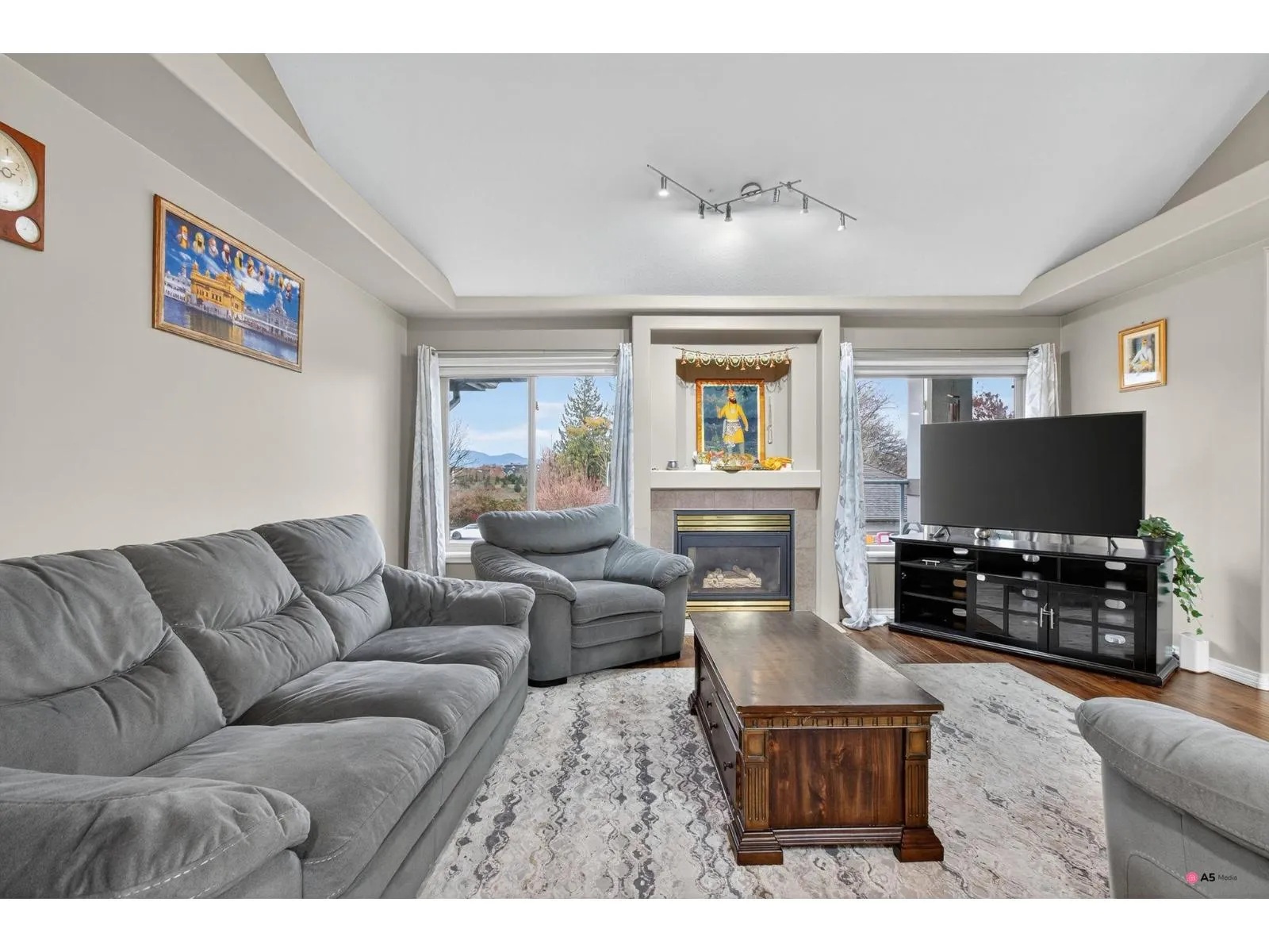 Experience luxury living in this executive corner-unit townhouse located in one of West Abbotsford's most sought-after communities! Spanning nearly 3,000 sq. ft., this two-story gem offers two spacious living rooms, two elegant fireplaces, and a bedroom with full bath on the main floor-perfect for guests or multi-generational living. Enjoy the front balcony with serene mountain views and a covered rear patio ideal for relaxation. Featuring extra-large bedrooms, a brand-new A/C and furnace, and parking for four vehicles including a double garage, this home blends comfort, style, and sophistication in every detail. (id:27476)