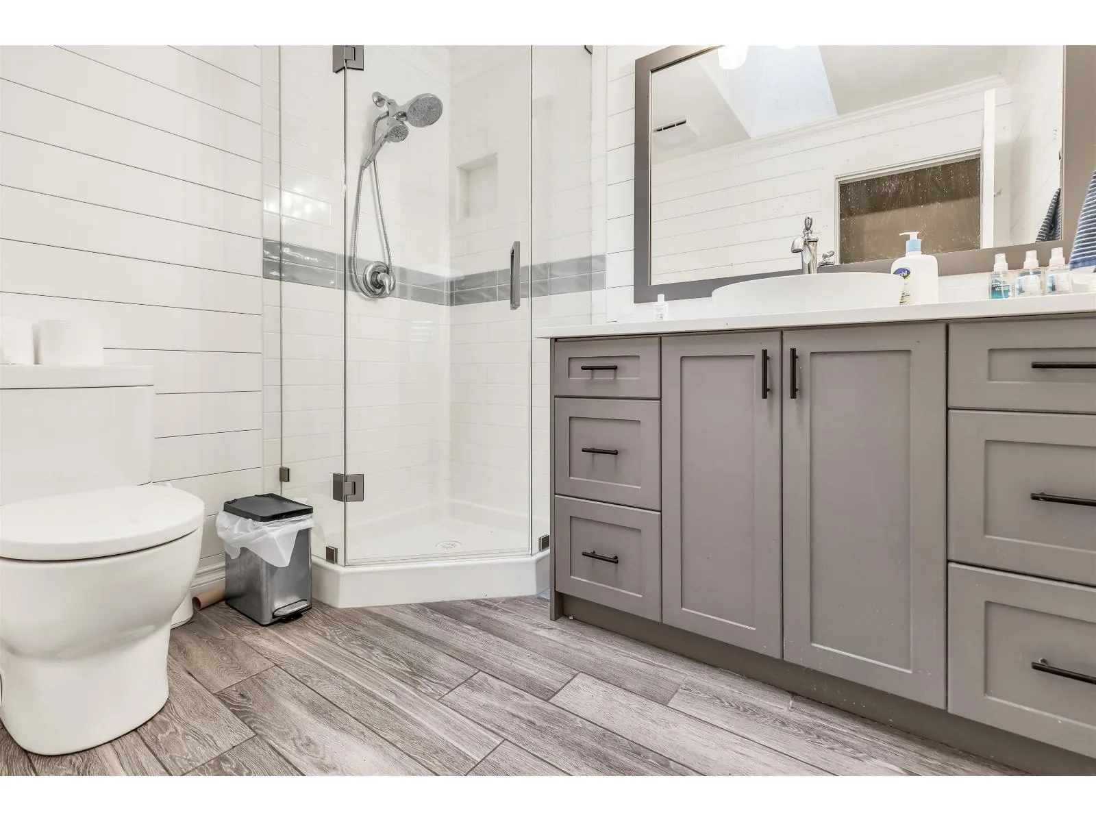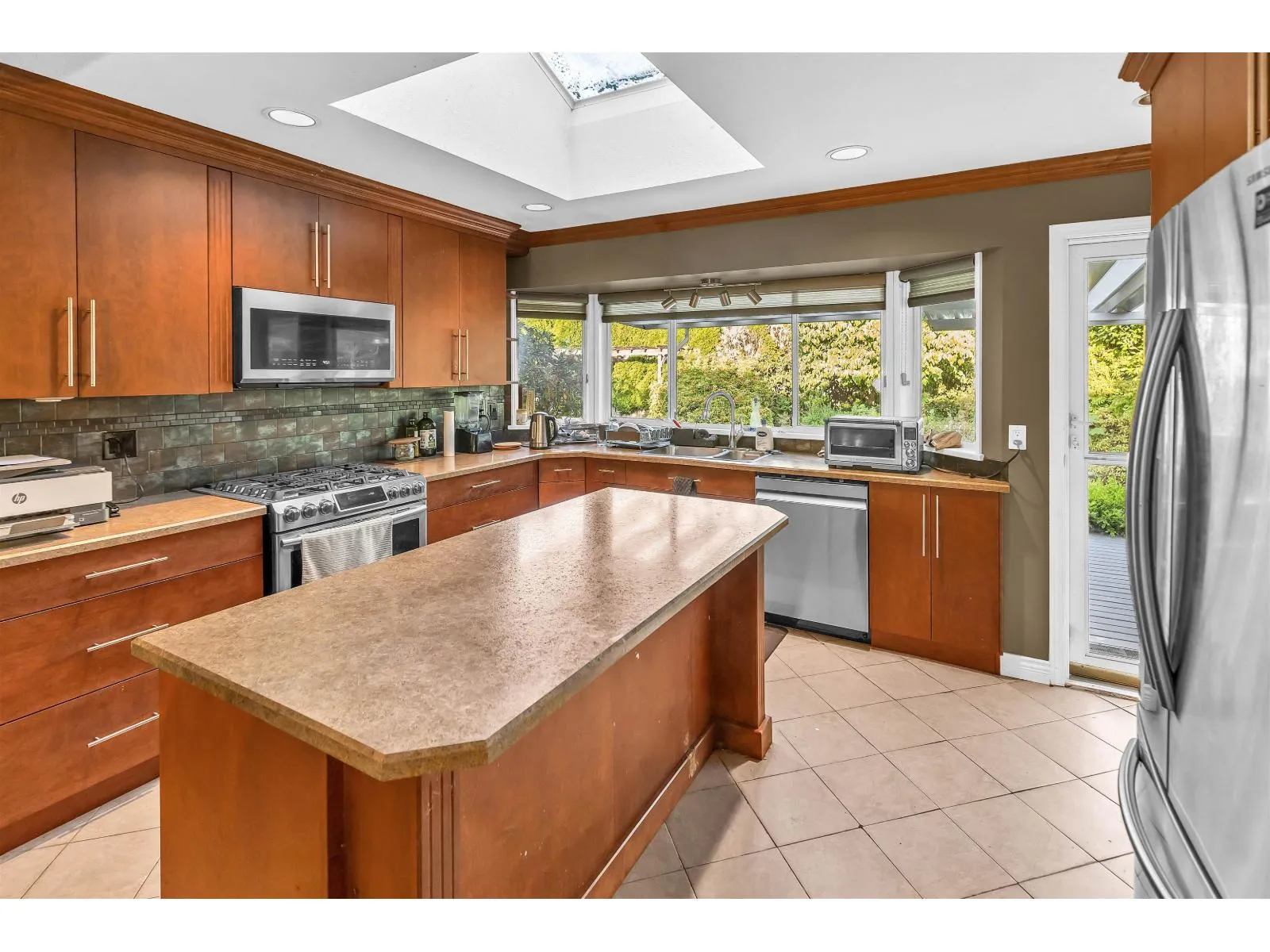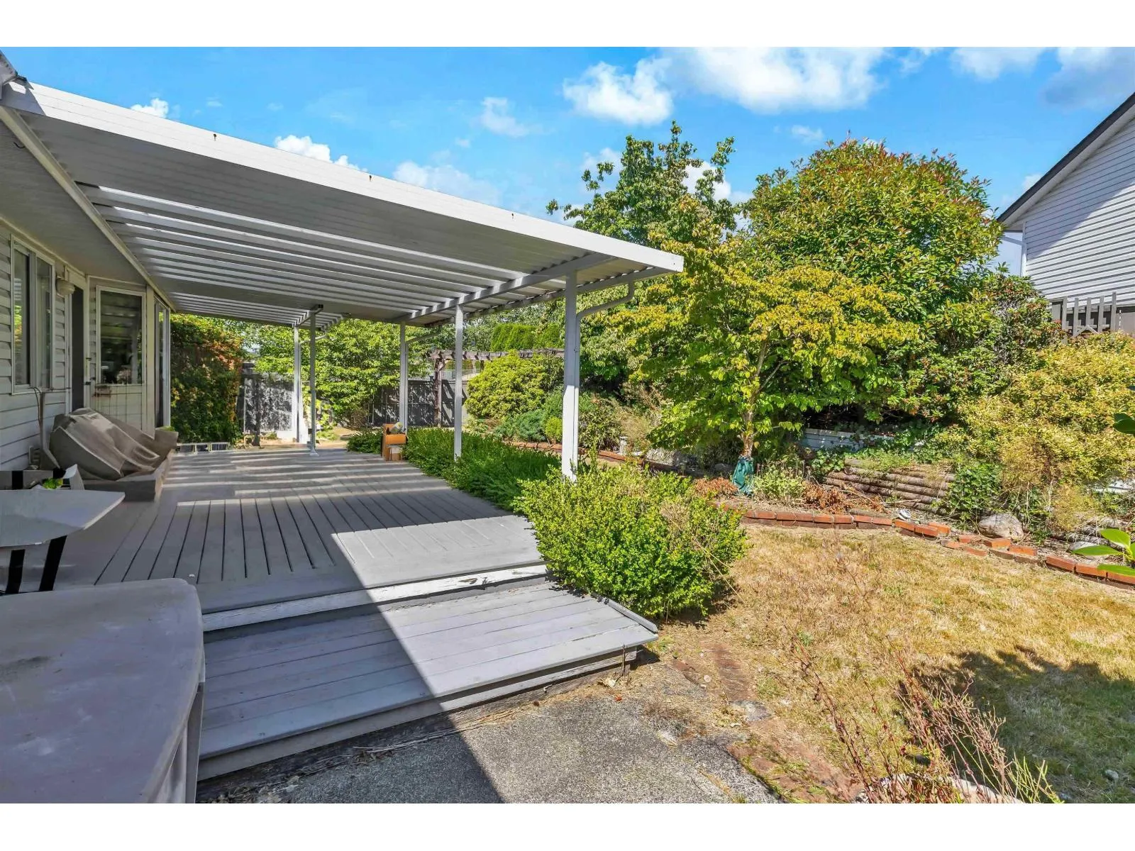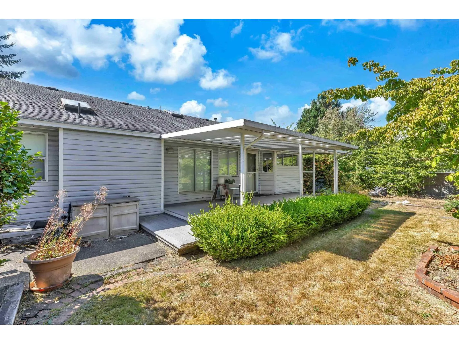 Located in one of East Abbotsford's best areas - Sandy Hill! Desirable Rancher on a corner lot with 2 road frontages featuring 3 Bedrooms + 2 Bathrooms and over 1,400 sq ft of living space - one level living! Open concept layout boasting a living room upon entry with gas fireplace, dining room, and an updated kitchen with S/S appliances including gas range, skylight, large island, and with a back door leading out the covered patio. Primary bedroom has a walk in closet and spa like ensuite with walk in tiled shower and separate soaker tub. 2nd + 3rd bedroom/ den with laundry and updated full bathroom with stand up shower. Expansive backyard with a storage shed and side yard for extra storage. 4' crawl space, HW on demand, AC, tongue and groove hardwood flooring, & more. Easy living here! (id:27476)