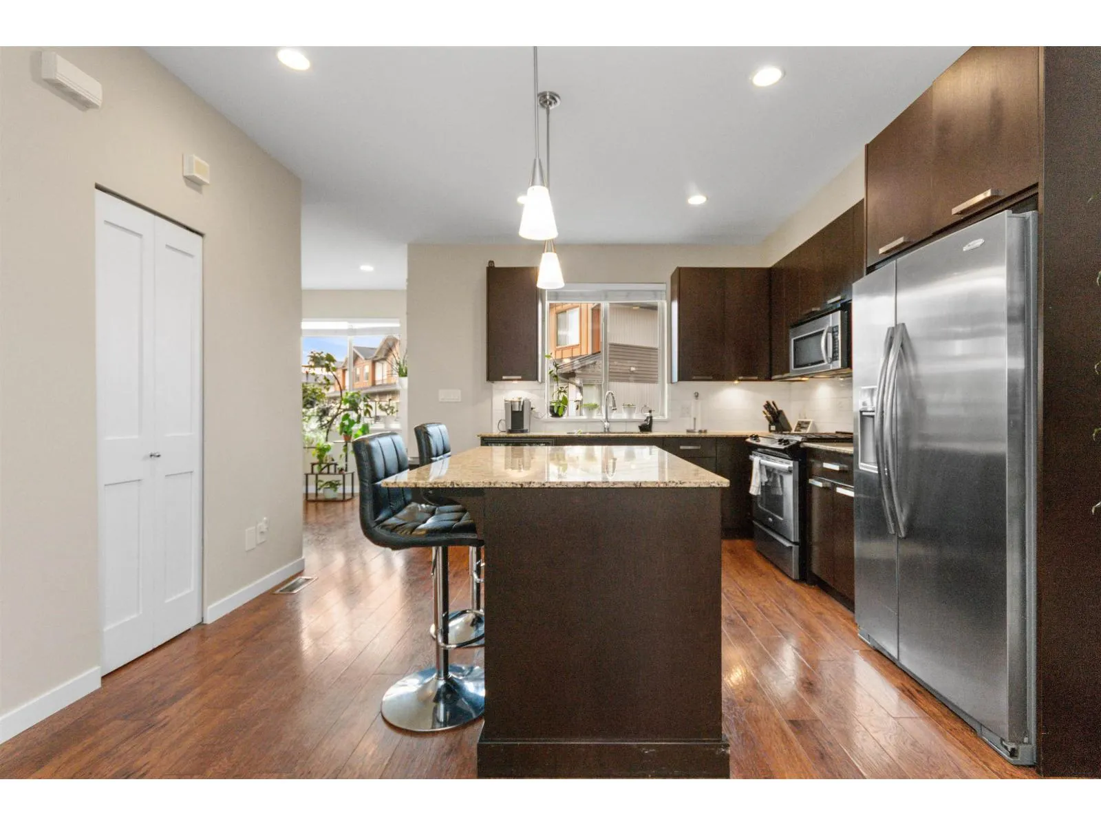 Welcome to Argyle, one of Abbotsford's most desirable townhouse communities! This spacious 3 bedroom, 3 bathroom home offers a bright, open-concept layout perfect for modern living. Recent updates include fresh paint and new carpet upstairs, giving the home a clean, move-in-ready feel. The main floor features a stylish kitchen with stainless steel appliances, a large island, and plenty of storage. Step outside to your private patio backing onto a peaceful greenbelt, perfect for relaxing or entertaining. Centrally located close to shopping, recreation, UFV, and just a short drive to Highway 1, this home offers convenience and comfort. A double garage and pet-friendly complex complete this exceptional package! (id:27476)