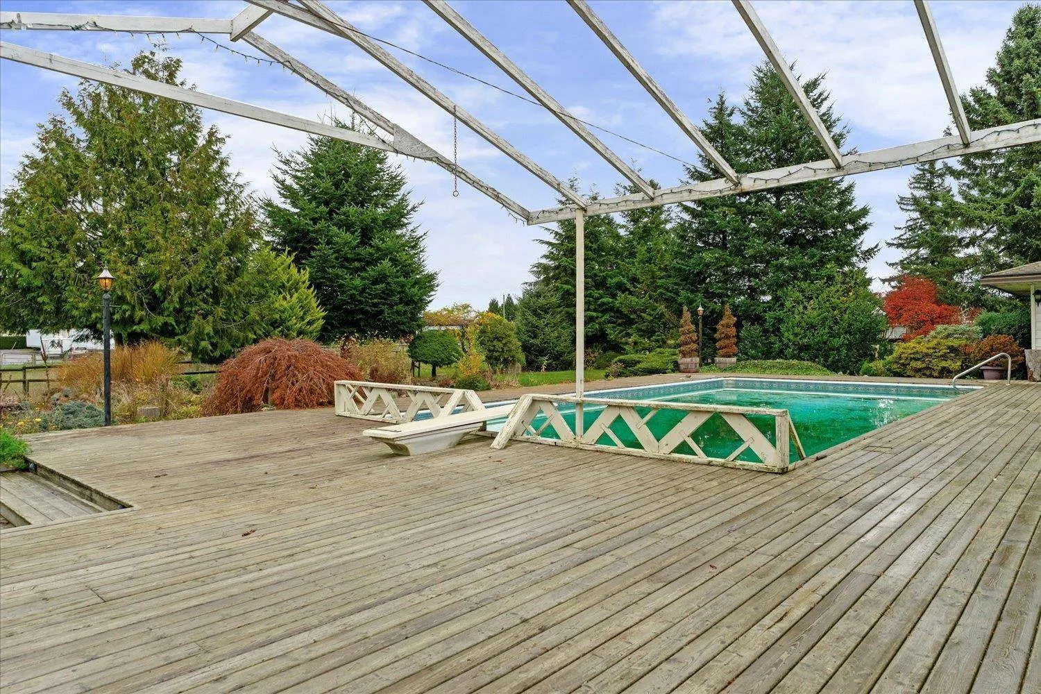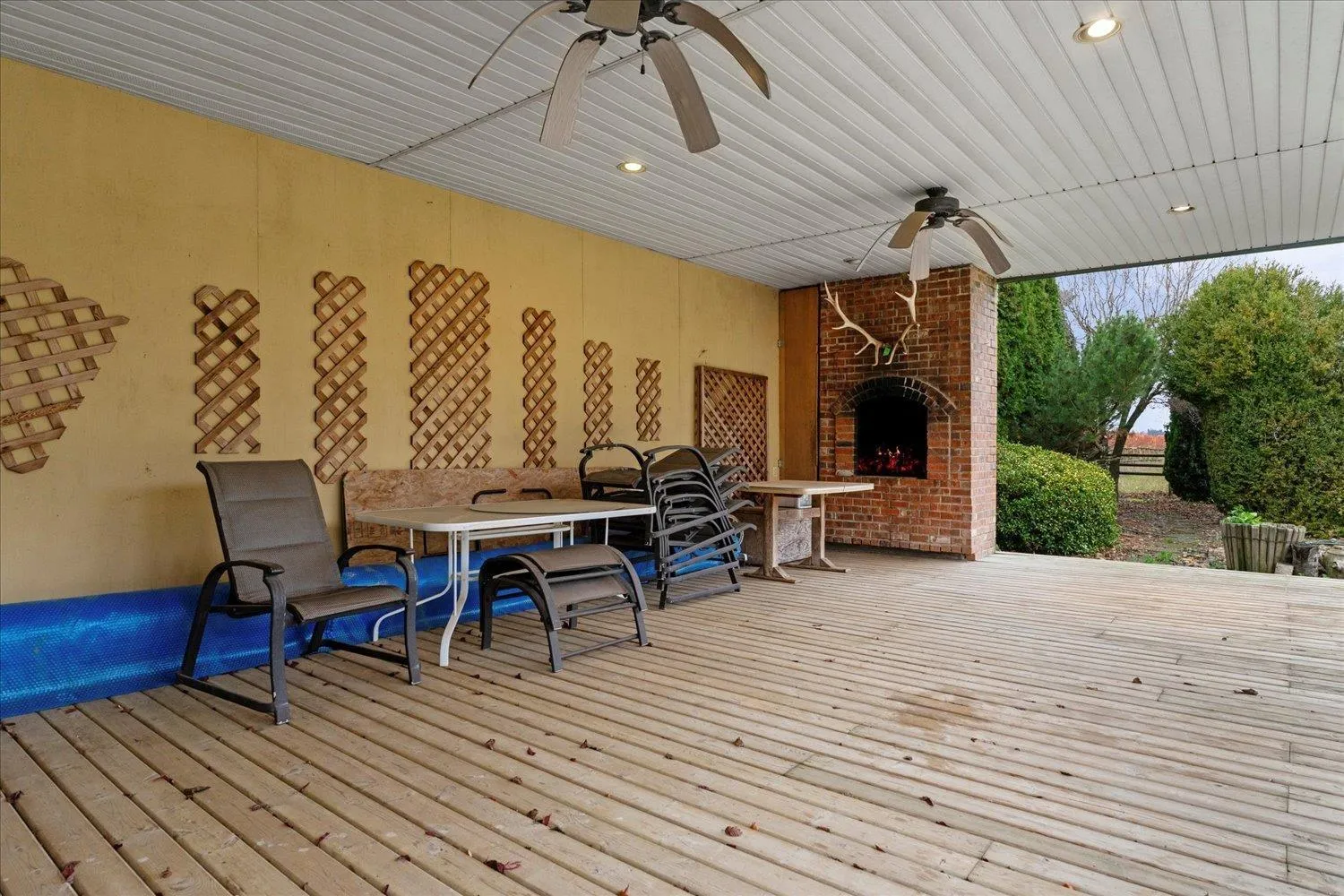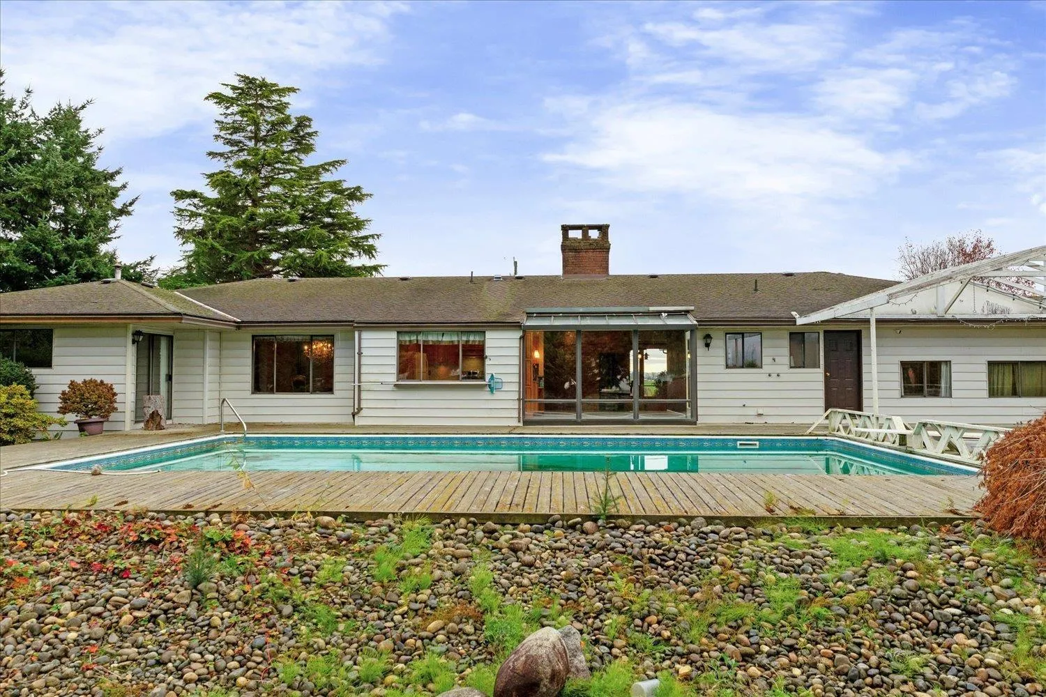 Nestled on 2.26 acres of picturesque countryside, this expansive 4645 sq ft ranch-style home with full basement boasts 3 bedrooms, 3 bathrooms, and a double garage. Relax by the in-ground pool or entertain on the large covered outdoor patio featuring a wood-fired oven. Dual road frontages ensure easy access and future options. Equestrian enthusiasts will love the 968 sq ft barn with 5 horse stalls and loft. Ready for renovations, this property offers the perfect canvas to create your dream rural estate. (id:27476)