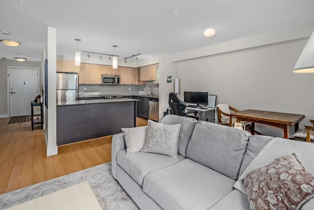 One of the largest and best layouts in the Latitude complex! This rare 2 bedroom + den home features a massive chef-inspired kitchen with an abundance of counter space, elegant granite countertops, rich designer cabinetry, and stainless steel appliances-perfect for those who love to cook and entertain. The open-concept dining and living area offers plenty of room to gather, highlighted by an electric fireplace and large windows for natural light. The primary bedroom boasts a walk-in closet and a luxurious ensuite, while both full baths feature quality fixtures and finishes. Includes 2 side-by-side parking stalls near the elevator and a storage locker on the same level. Enjoy amenities like a fitness room, lounge, and guest suite. Book your private showing today! (id:27476)
