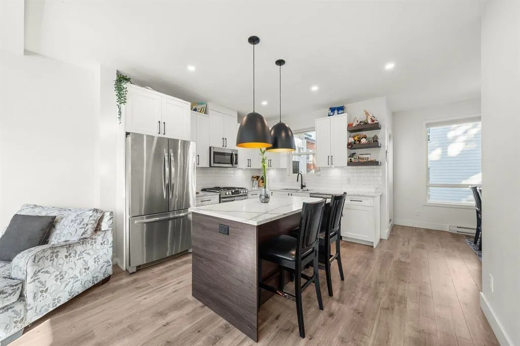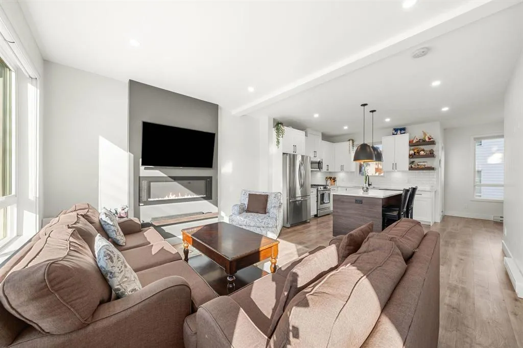 Welcome to Lantern Park! This modern 4 bed, 3 bath townhouse offers 1,492 sq. ft. of bright, open-concept living. Features include a stylish kitchen with quartz countertops, SS appliances, and a large island perfect for entertaining. Enjoy a spacious living area with electric fireplace, 9' ceilings, and large windows for plenty of natural light. Upstairs you'll find 3 bedrooms including a primary with walk-in closet and ensuite. The entry-level 4th bedroom is ideal for guests or an office. Nestled in the heart of Aberdeen, this home offers a perfect blend of modern comfort and suburban charm-close to parks, schools, and all amenities, with quick access to Highstreet Shopping Centre and major routes. A beautifully kept home in a quiet, family-oriented community! Get inside this one today! (id:27476)
