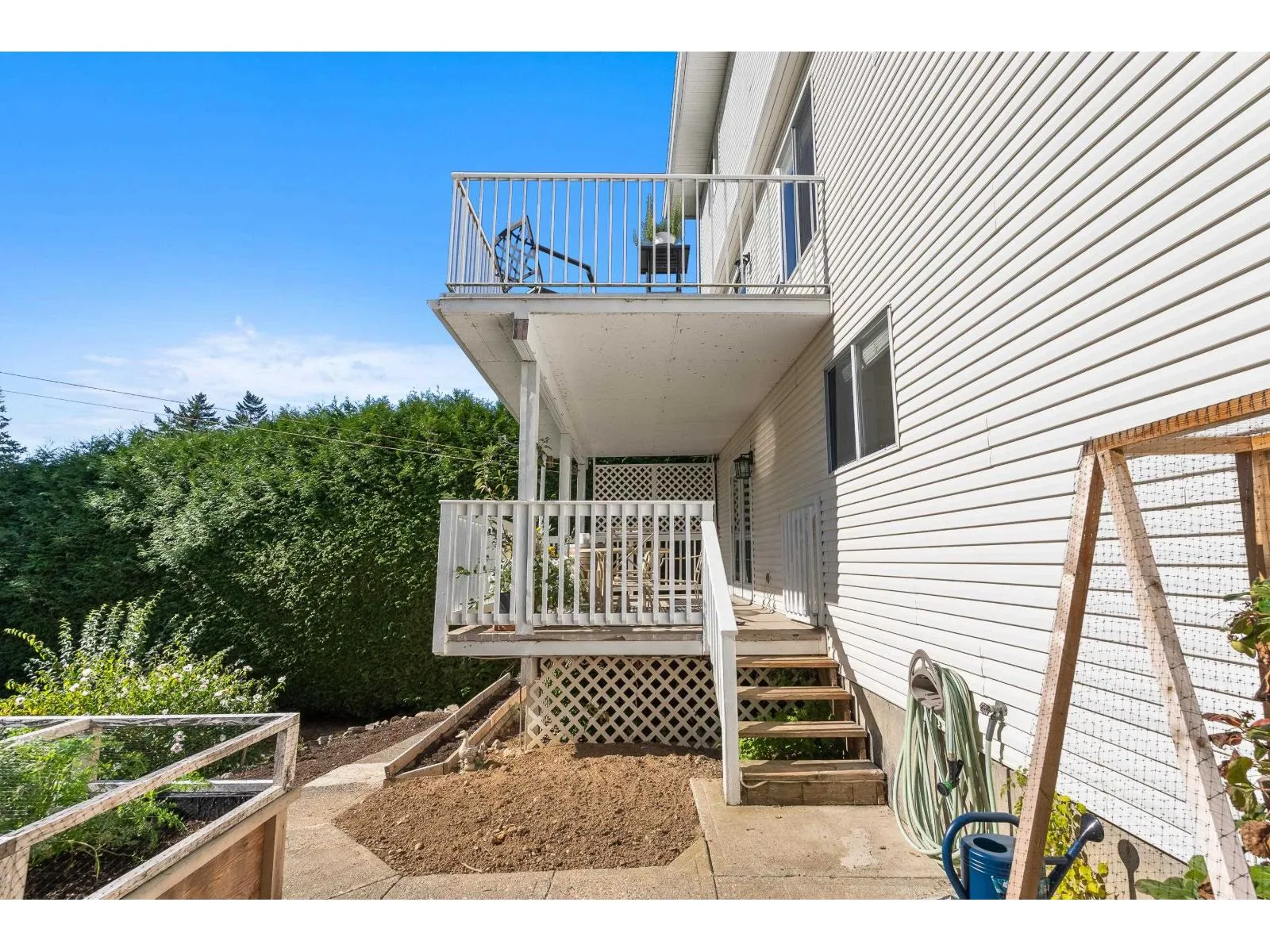 Desirable East Abbotsford family home with basement SUITE, backyard with PRIVACY and SOUTHERN exposure, TWO balconies, large TRIPLE wide driveway and even some view of Sumas Prairie. ORIGINAL owner home and is move-in ready! Clean and maintained two storey plus basement home with space for the whole family including inlaws or rent out the one bedroom and den suite. You will appreciate the abundance of natural light! Main floor features formal living and dining areas plus kitchen, family room and powder room. Find three spacious bedrooms plus two baths above. Basement has large laundry/storage room plus access to suite (never rented). Nice suite layout with big bedroom, full kitchen, den, laundry/storage and covered balcony! Lots of parking with triple wide driveway. (id:27476)