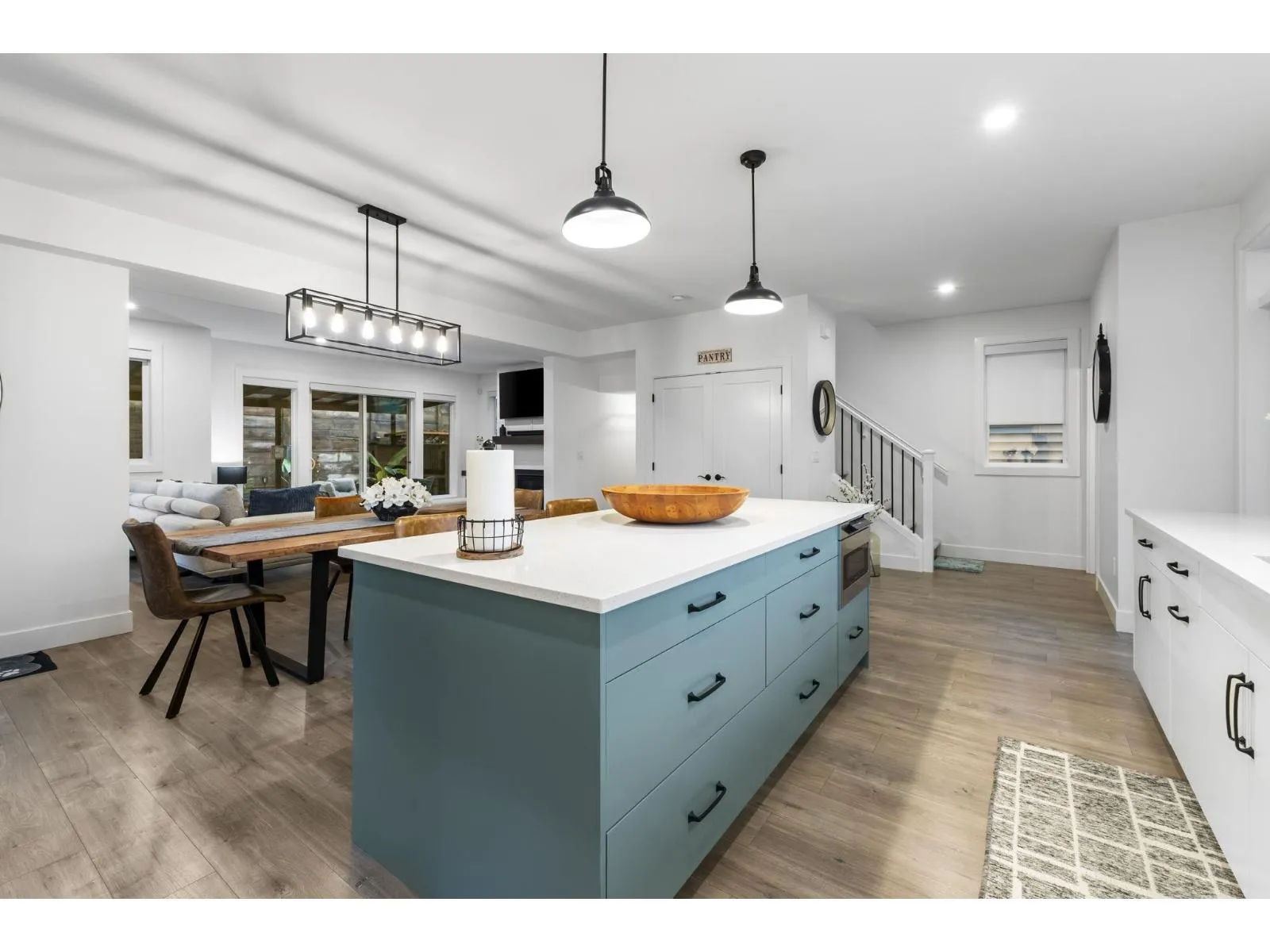 A rare offering of elevated luxury in exclusive Sunspring Estates. This custom built 3 bed 3 bath home showcases a grand Vuba Stone driveway, full rock façade, and elite, meticulously designed landscaping. Refined living inside unfolds with high-end appliances, a statement Tuscan navy island, upgraded pantry, black Kohler fixtures, custom cabinetry, premium lighting, and a curated shiplap feature wall. Modern comfort includes hot water on demand, AC with high-efficiency furnace, central vac, and designer shade blinds. The outdoor private dream retreat boasts an oversized steel pergola with sun-proof plexiglass, upgraded deck, rock pathways, and a Coast Spas hot tub all set on an exceptional double lot beside a serene greenbelt. Best location in the complex. Take advantage!!! (id:27476)