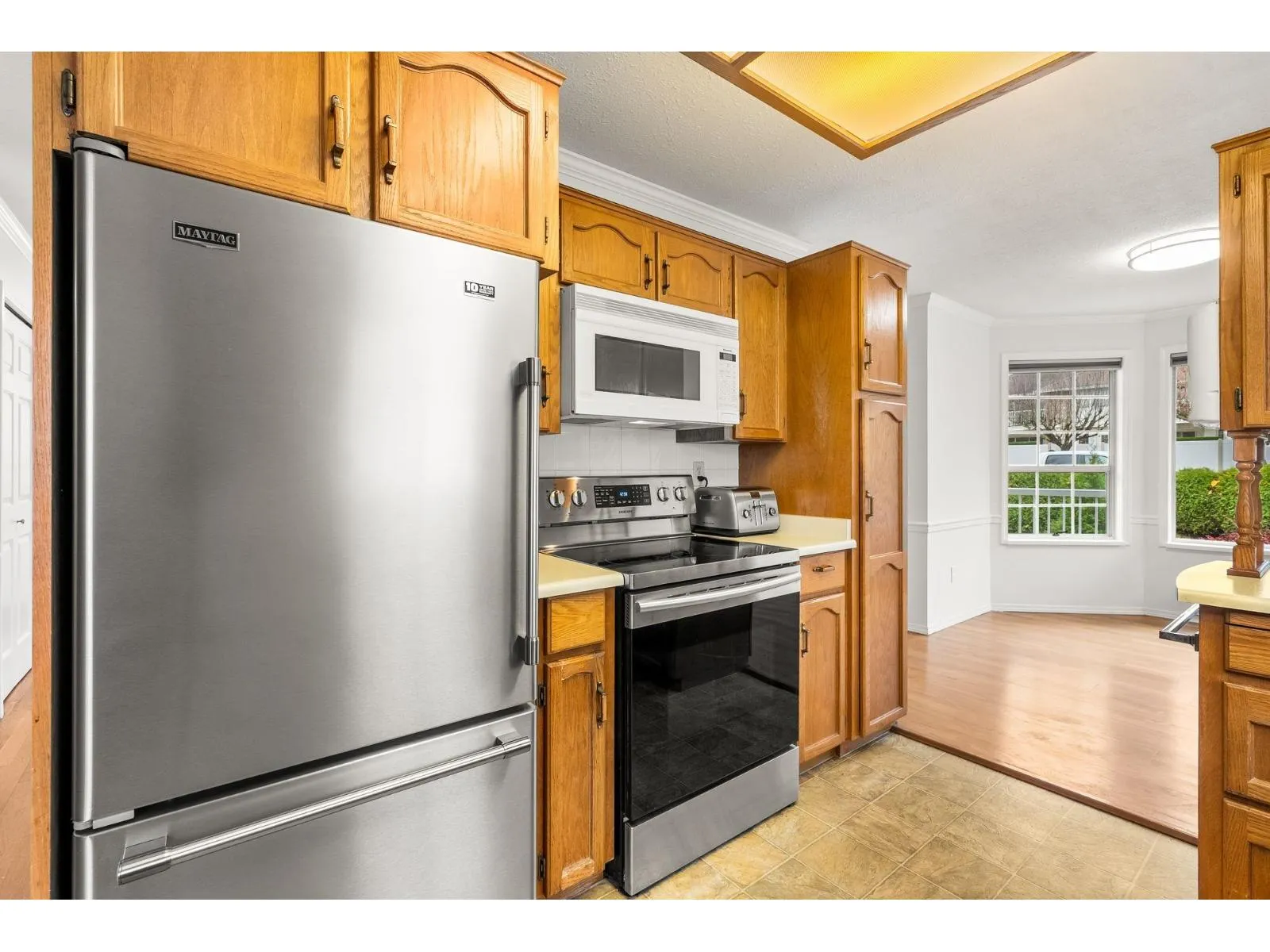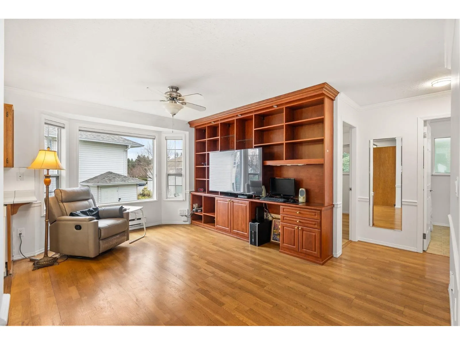 Originally the Developer's Unit! You'll love all the extra details in this 2 Bed/2Bath END UNIT in the desirable Trafalgar Park community. Drenched in light from the many windows, this spacious home has a huge great-room living/dining area, PLUS a large family rm w/ a gorgeous dark wood built-in entertainment unit. Sprawling master w/ dbl closets & Ensuite, plus back-door access to outdoor garden area. 2nd bedroom w/ another built-in wood unit w/ Murphy bed creates versatility as a functional office space, guest bedroom, or whatever suits your needs! Fresh paint, new floors, huge laundry room w/ shelving, PLUS a bonus storage room conveniently located on the patio. Heat & Electricity incl.in Strata fee. Pets allowed, & just 1 owner must be 55+. 2 parking spots, Clubhouse & Guest suite too! (id:27476)