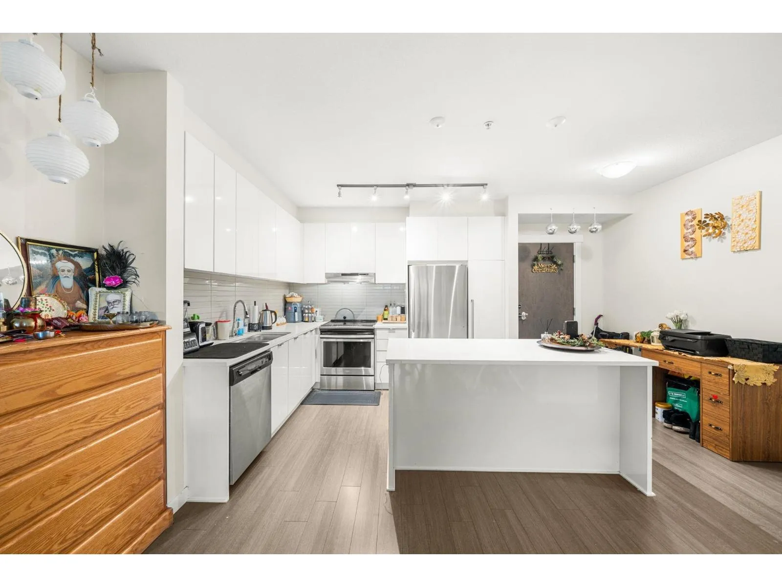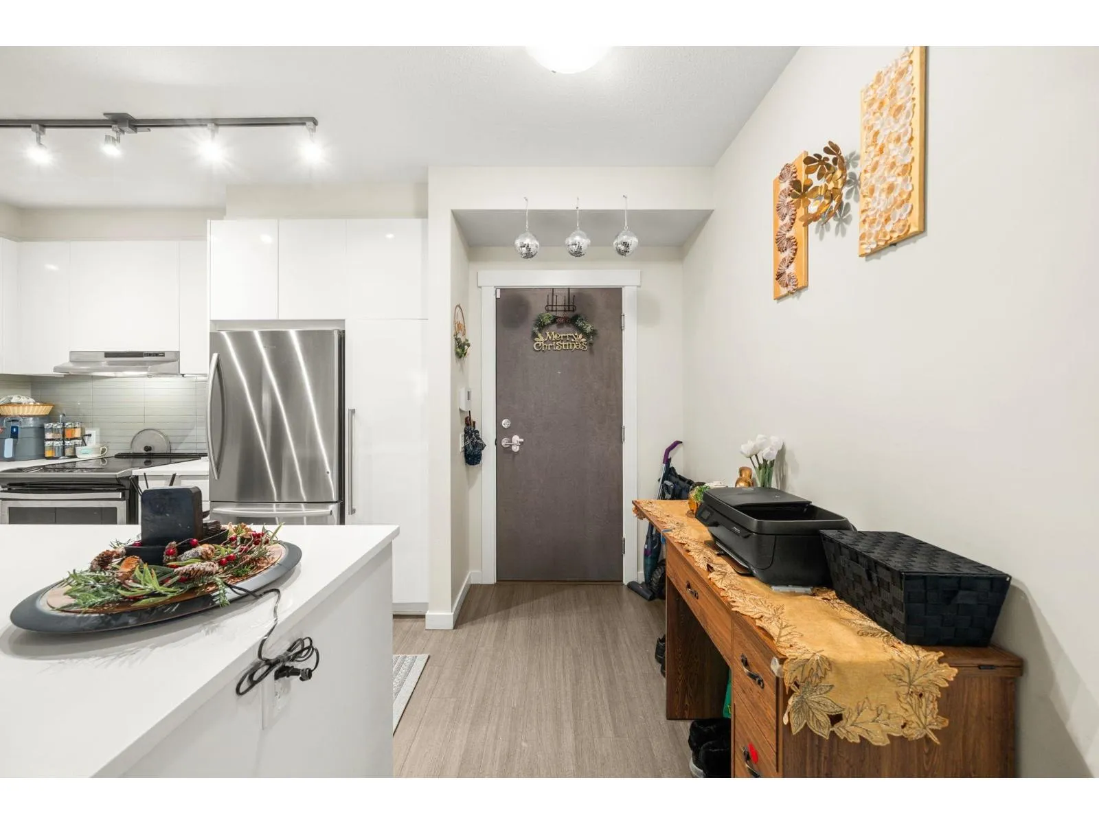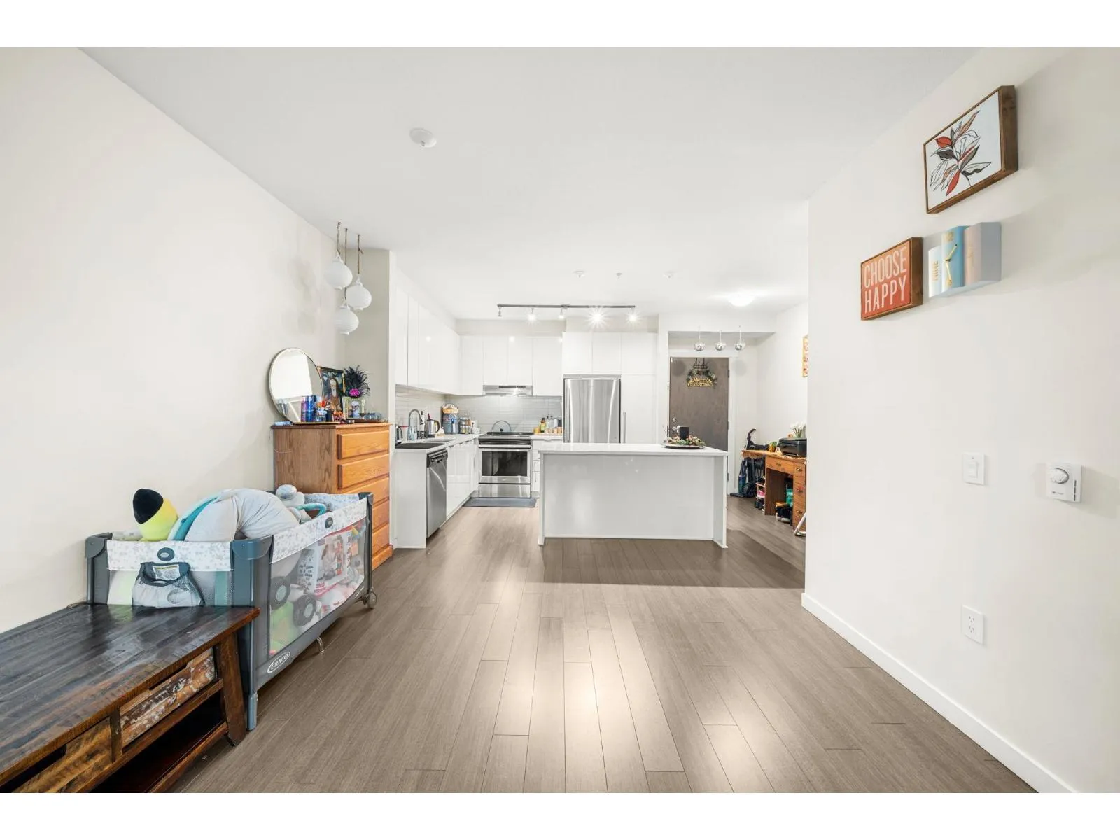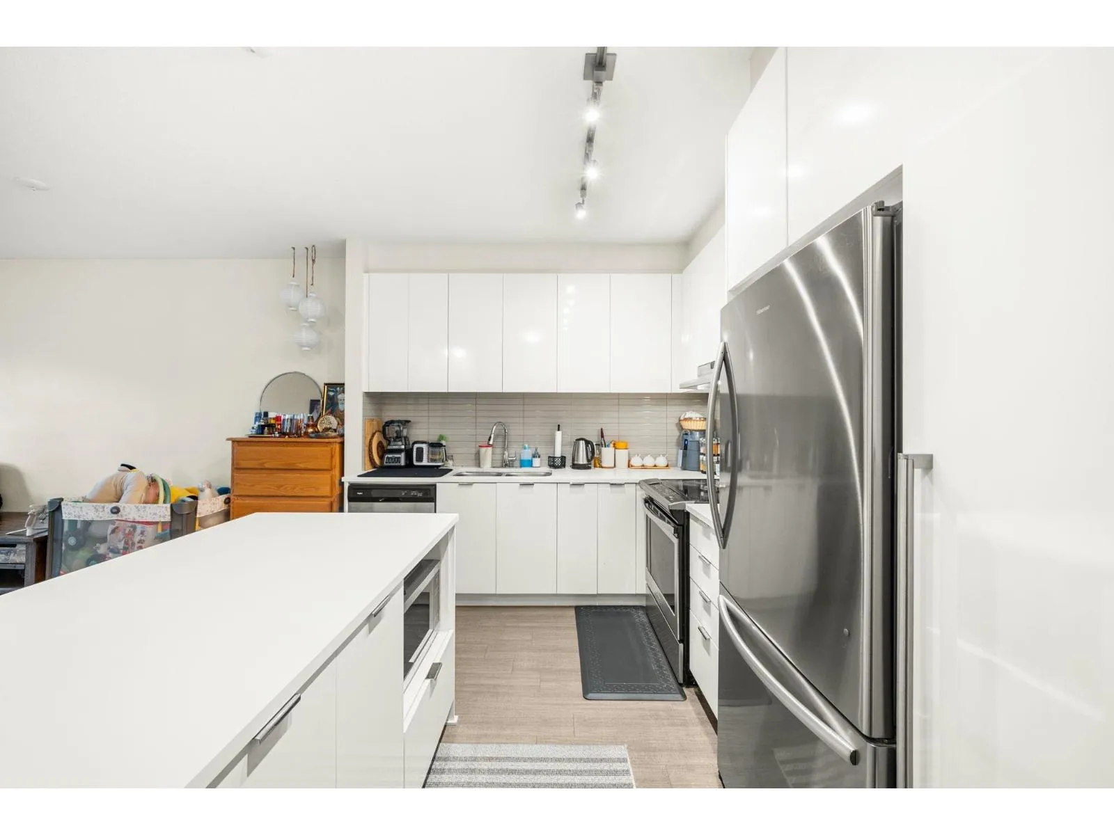 Welcome to Elmstone by Polygon in the master-planned Westerleigh community. This bright 2 bed, 2 bath ground-floor home offers a large private patio with fenced yard, perfect for easy outdoor living. The open layout features 9 ft ceilings, laminate flooring, and a stylish kitchen with a full-size island, stainless steel appliances, engineered stone counters, and soft-close cabinetry. The primary suite includes a walk-in closet and a spa-inspired ensuite with double sinks and a spacious shower. Enjoy resort-style amenities at Club West, including a pool, hot tub, gym, lounge areas, sports court, BBQ zone, and dog wash. Convenient location near Highway 1, Abbotsford International Airport, schools, parks, shopping, and dining. Rentals and pets allowed, plus parking with EV charging. (id:27476)