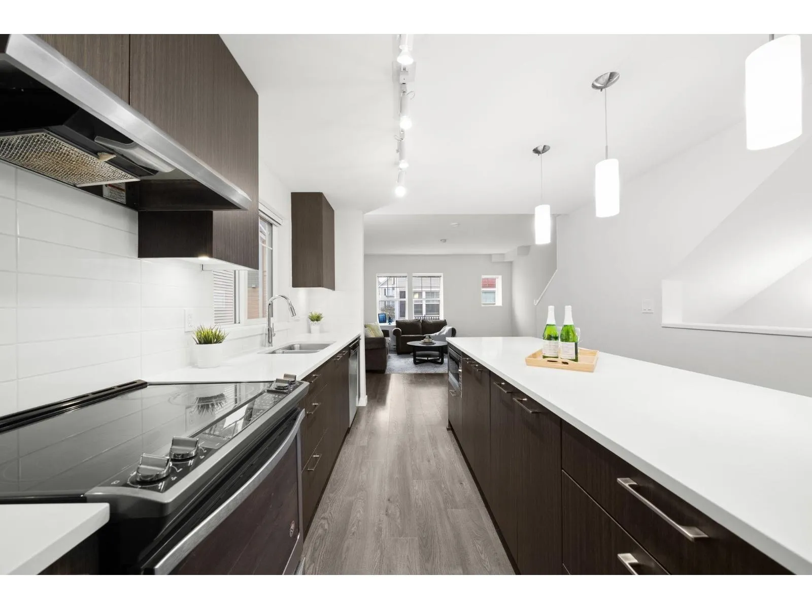This stunning very well maintained CORNER UNIT with 3-bedroom, 2.5-bath home offers modern living with thoughtful design. Located in the heart of Abbotsford, just off South Fraser Way. This development is within walking distance of shops and services. This home features an entertainer style kitchen with quartz countertops and sleek stainless steel appliances package, contemporary wide plank laminate flooring throughout, and a spacious balcony. Even with being in a townhome, you get a great outdoor space and a fairly large yard! Includes a garage for easy storage and a private backyard for gardening and entertaining. Stay active close to home with the Alder Club private amenities including a large, fully equipped gym and a yoga and meditation space. Book your showings today. (id:27476)