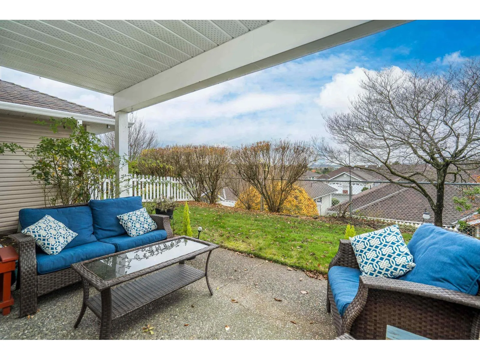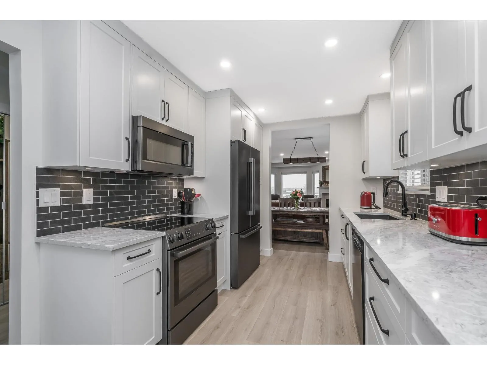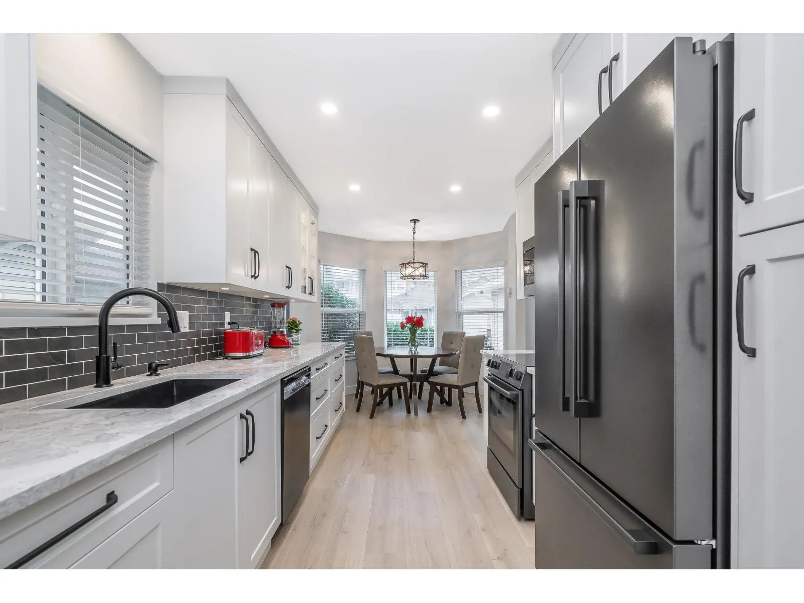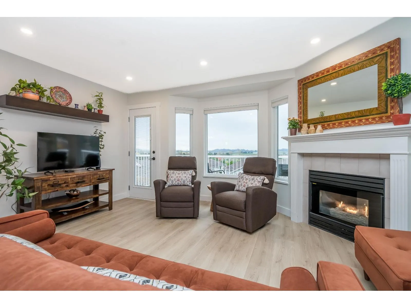 Stunning COMPLETELY renovated rancher w/ full walk-out bsmt in East Abbotsford's amazing 'gated' Belmont Ridge. End unit! Updates & features - new windows, pex piping, A/C (heat pump), high efficiency hot water system (combi system), radiant h/w heat. Gorgeous custom kitchen w/ pull-outs, quartz countertops, black stainless Bosch appliances, commercial grade sink, deluxe ensuite, new baths, vinyl plank thru-out, recessed lighting, bsbrds & trim, railings, light fixtures, closet organizers, murphy bed/desk combo, window coverings, door hardware. Private yard (can be fenced). Gorgeous views over farmland & amazing sunsets. Steps to shopping, restaurants, parks, trails & easy freeway access. (id:27476)