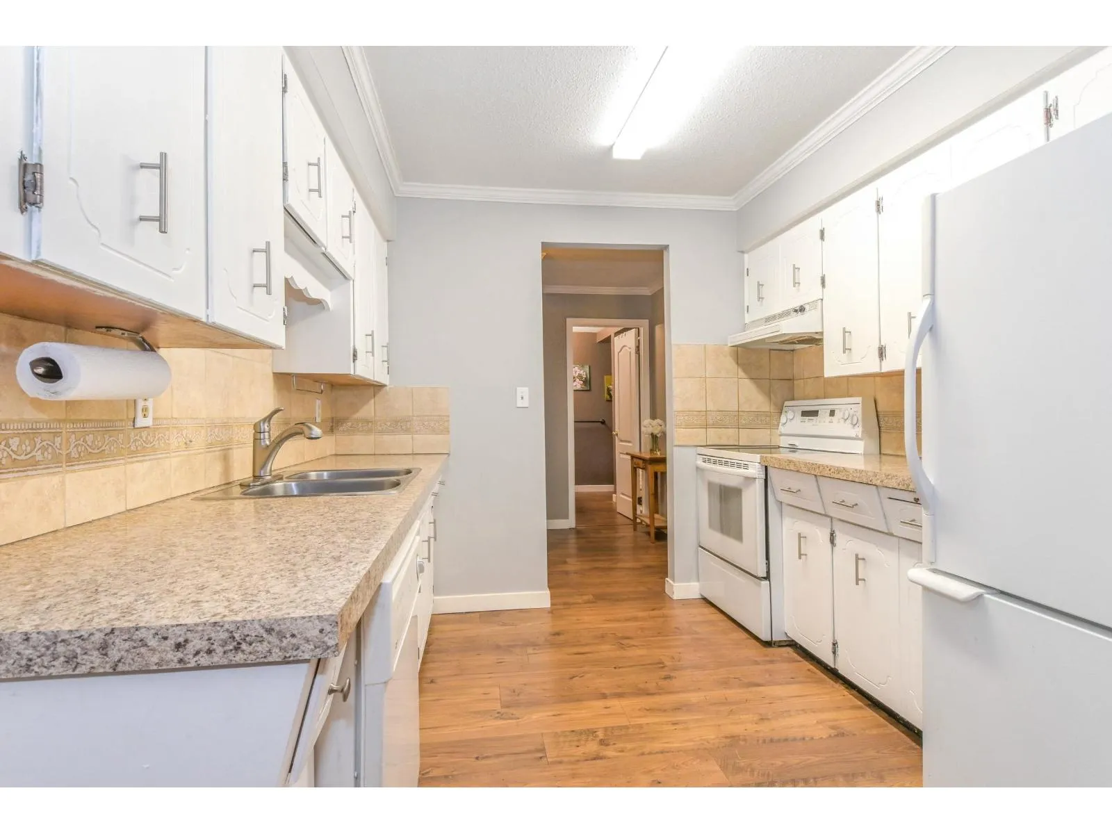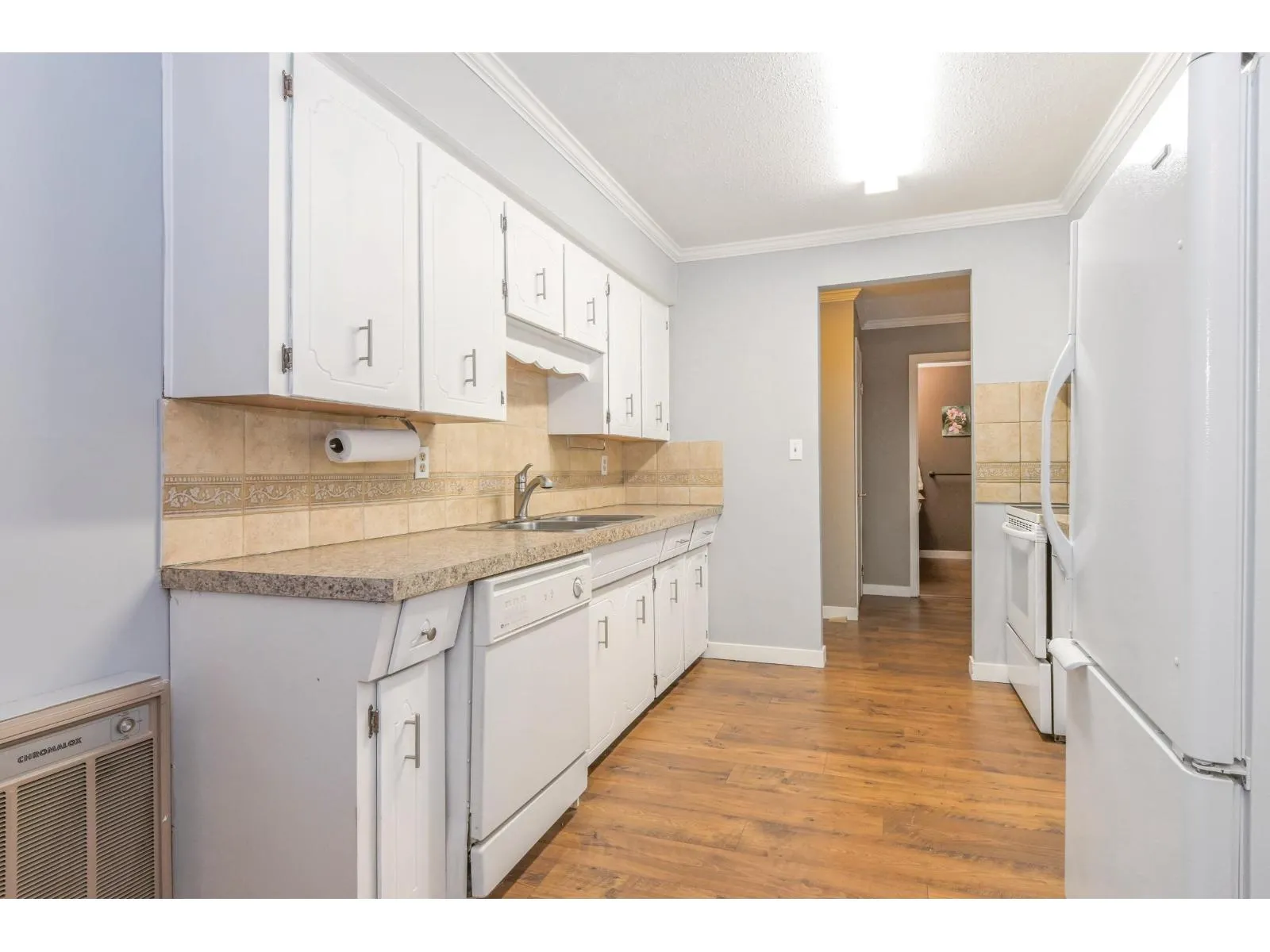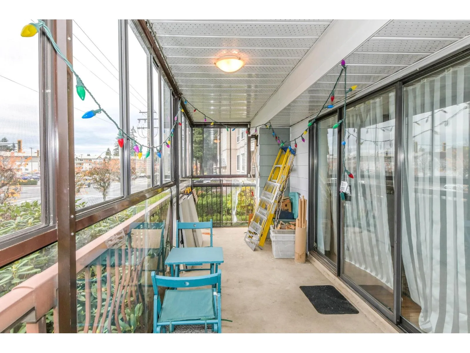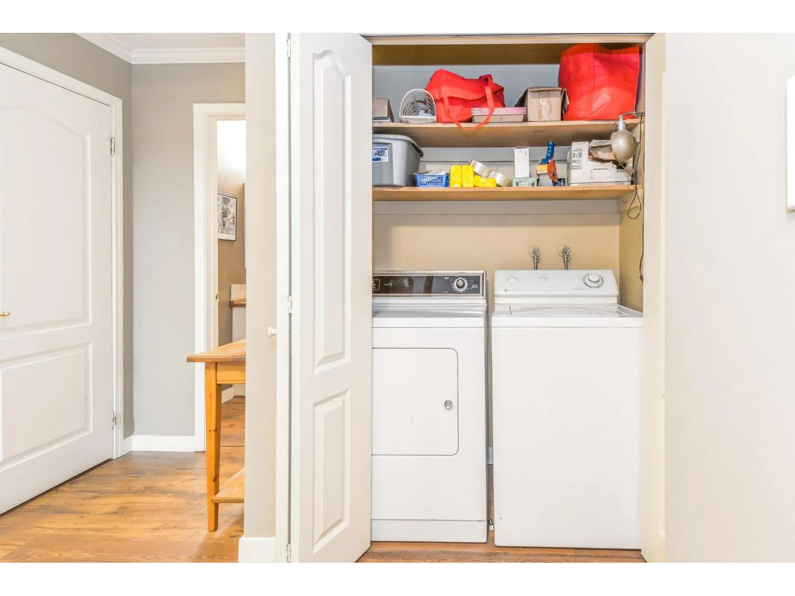 Welcome to this well-appointed 2-bedroom, 1-bath, 55+ home offering exceptional comfort and convenience. Both bedrooms are generously sized, providing ample room for rest, work, or additional storage. A rare XL storage in suite adds outstanding functionality, ensuring you'll never run out of space. Enjoy the convenience of in-suite laundry and relax year-round on the enclosed balcony, accessible directly from the main living area-perfect for morning coffee or additional flexible living space. This home includes 1 secure underground parking stall, locker and is located just minutes from everyday essentials. Schools, parks, shopping, and recreational amenities are all within easy reach, making this a fantastic option for downsizing buyers or investors. Pet-friendly building. (id:27476)