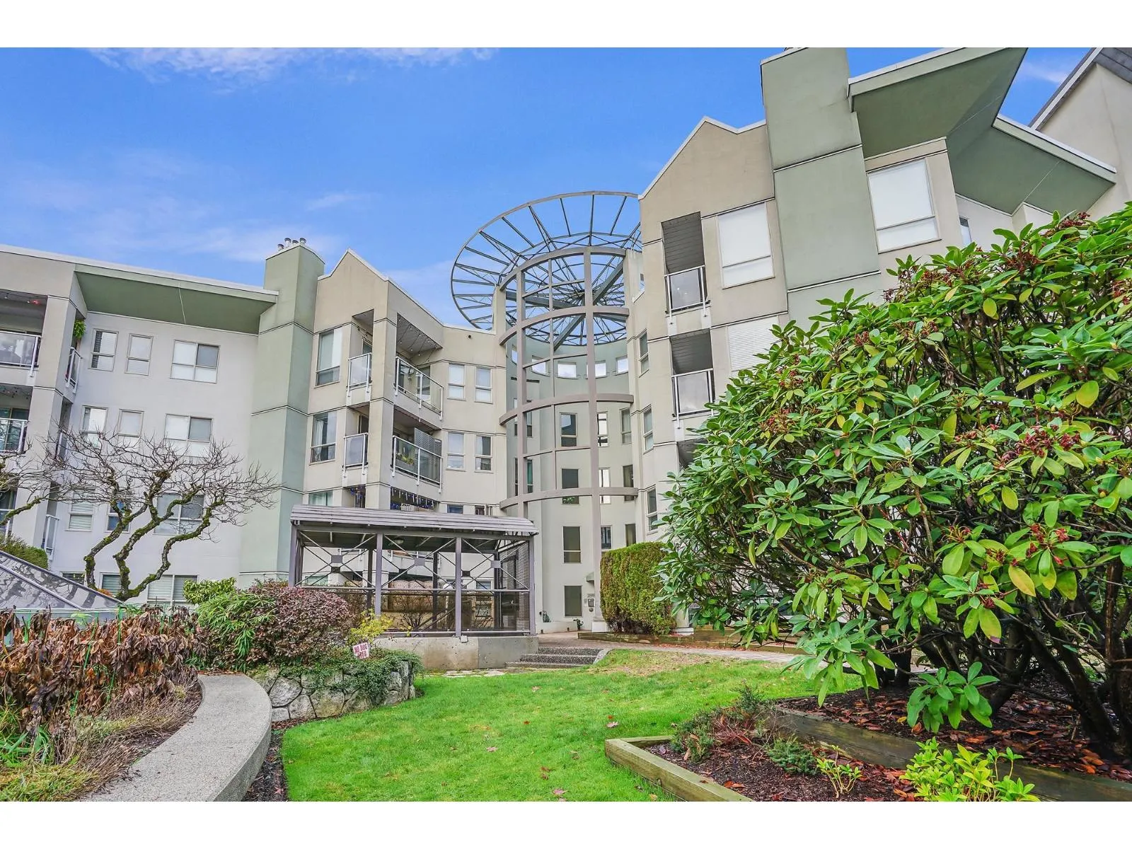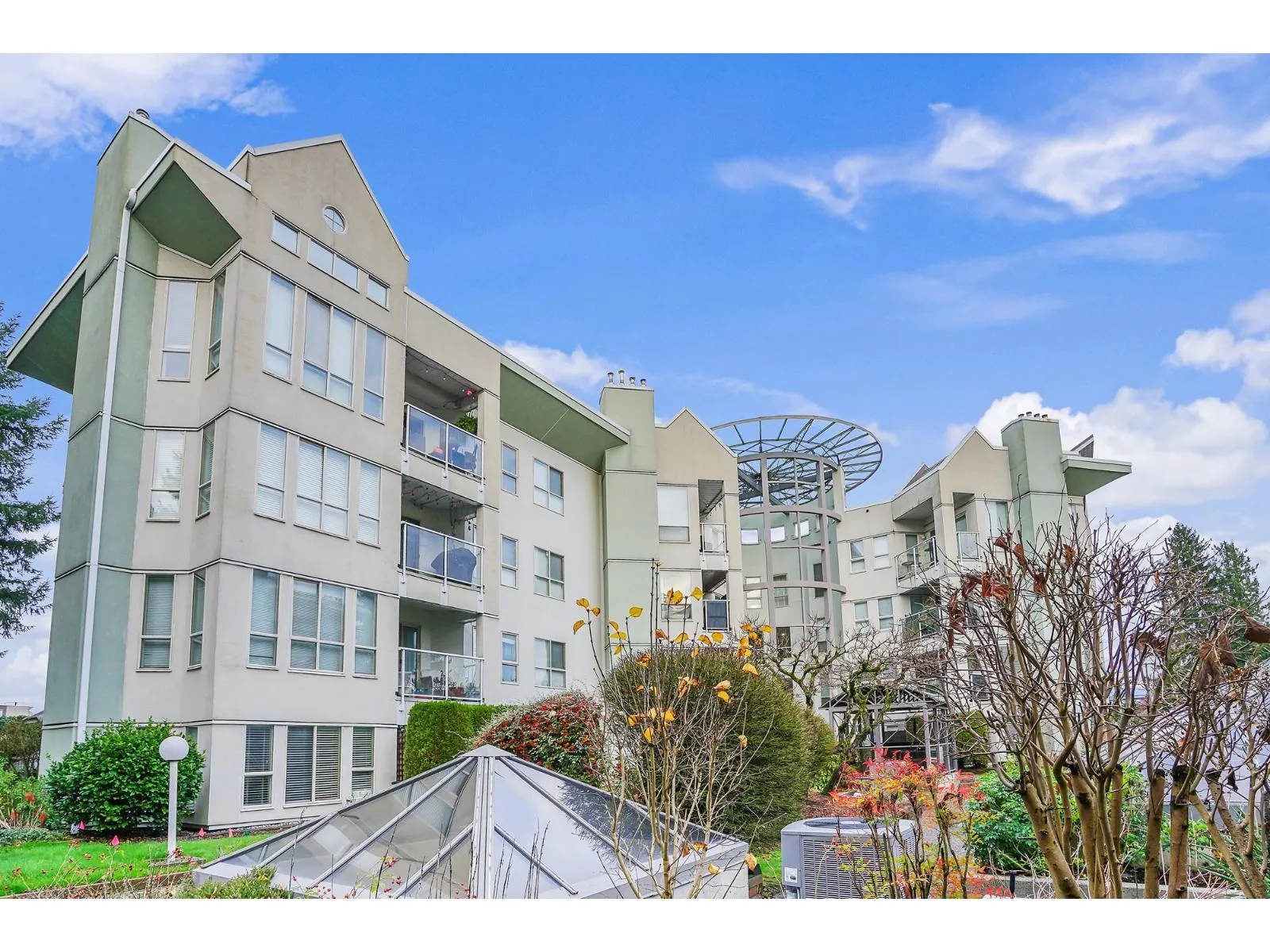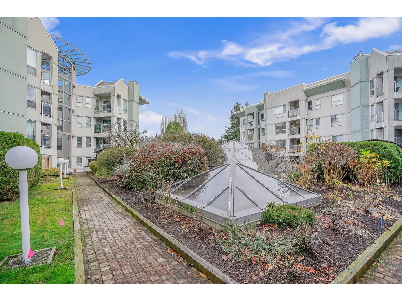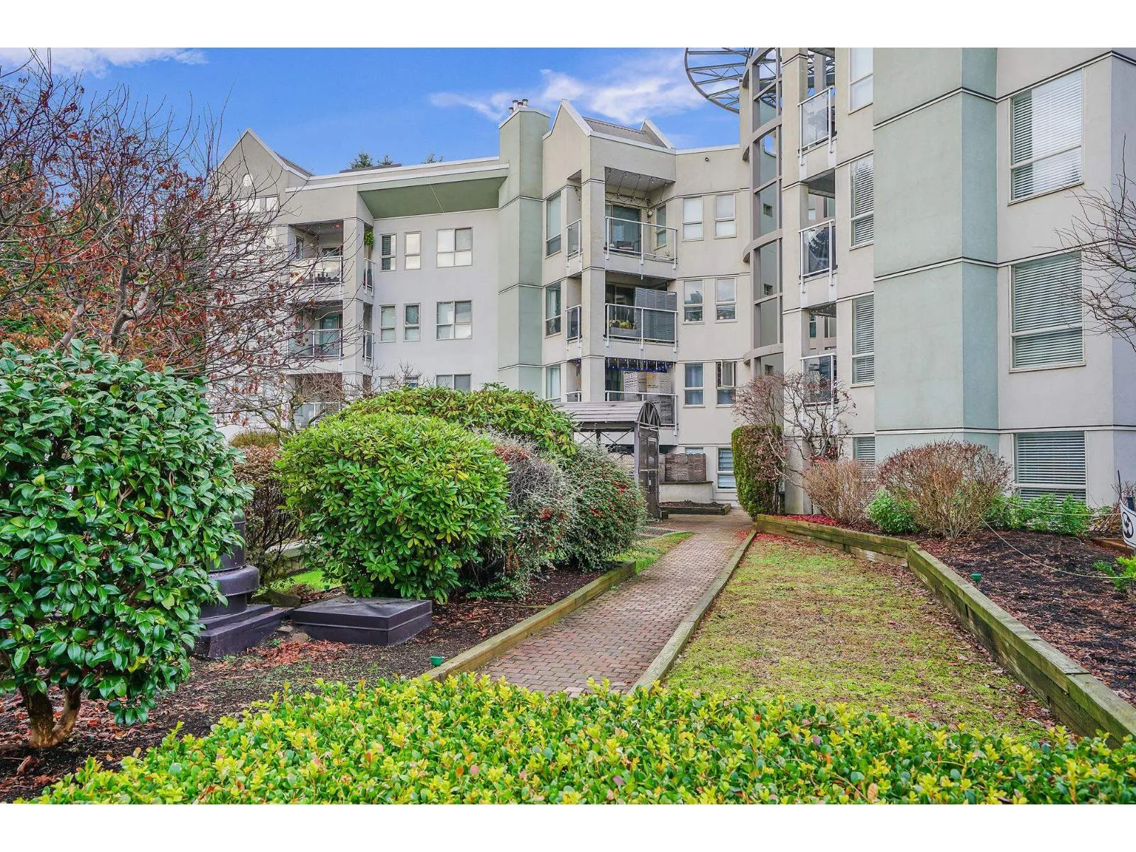 Beautifully designed 2 Bedroom ground floor Corner Unit for those wanting some added character. Not your typical square box. Spacious Living/Dining Room area with windows on 3 sides, flooding this large room with natural light. Updated Laminate flooring and a cozy Gas Fireplace create an inviting environment for entertaining. Glass Sliding Doors lead to a private outdoor covered patio. The Kitchen has newer appliances and it's own south facing Kitchen Window. Large Master Bedroom with an updated Ensuite Bathroom and Walk-In Closet. Laundry Room has new Clothes Washer & Dryer and room for some storage. Parking for 1 vehicle in the Secured Underground Parking area. Additional Storage Locker as well. Amenities include a unique glass covered Lounge area. 1 Pet allowed, cat or dog up to 22 lbs. (id:27476)