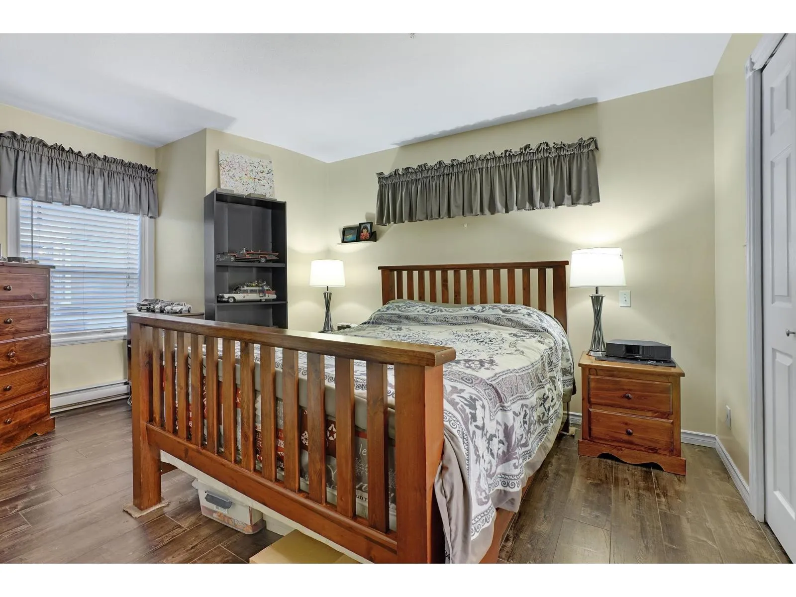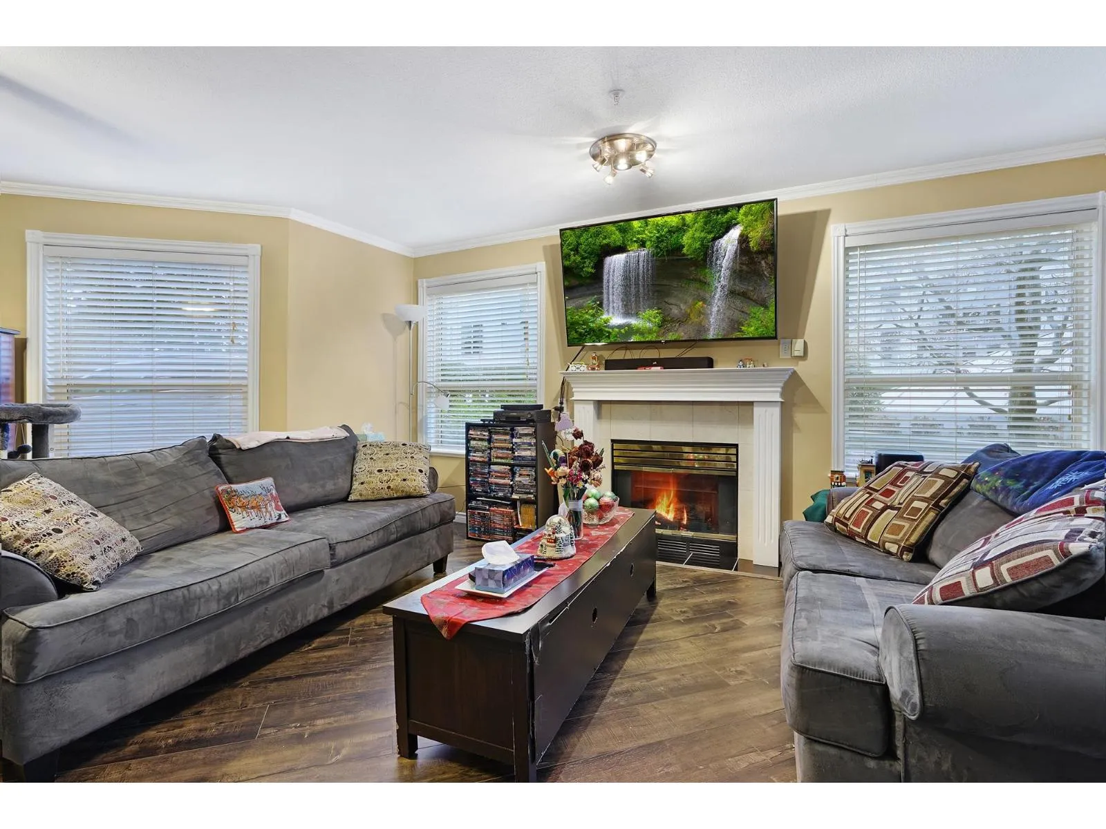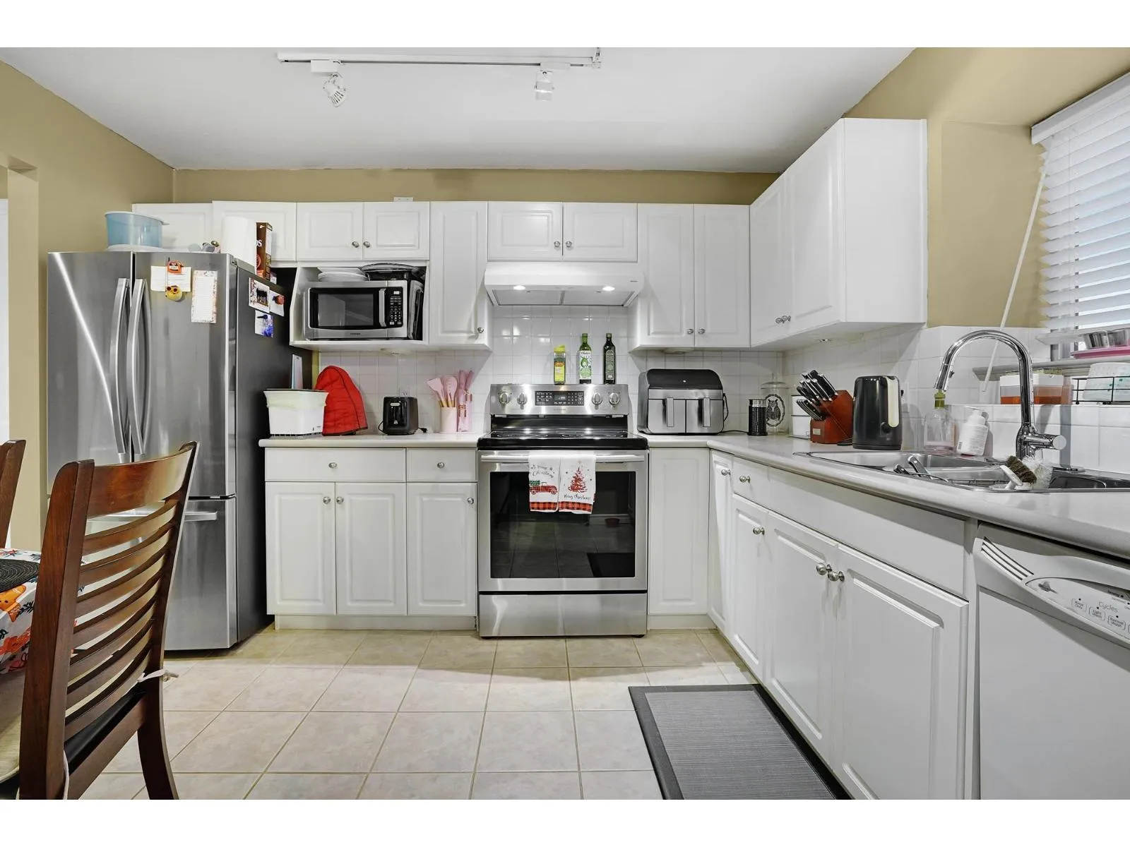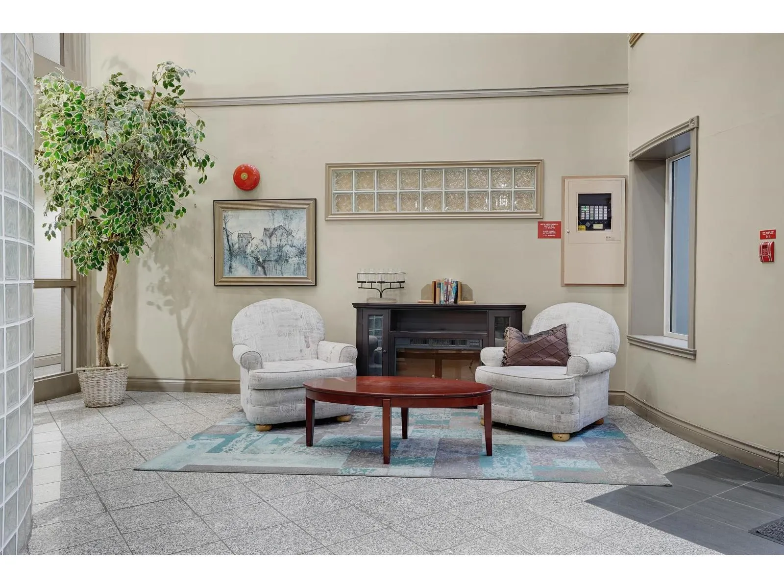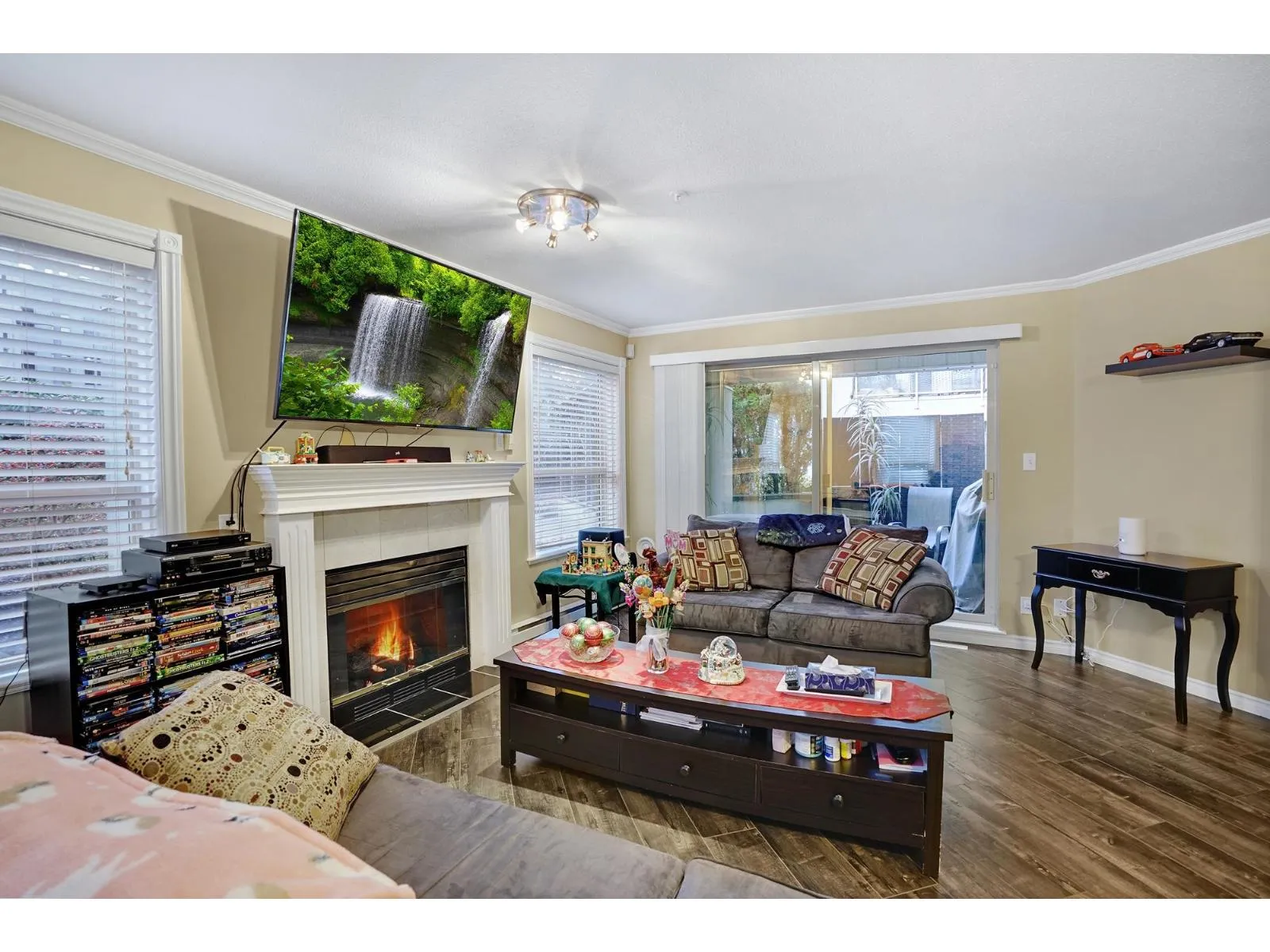 Beautifully designed 2 Bedroom ground floor Corner Unit for those wanting some added character. Not your typical square box. Spacious Living/Dining Room area with windows on 3 sides, flooding this large room with natural light. Updated Laminate flooring and a cozy Gas Fireplace create an inviting environment for entertaining. Glass Sliding Doors lead to a private outdoor covered patio. The Kitchen has newer appliances and it's own south facing Kitchen Window. Large Master Bedroom with an updated Ensuite Bathroom and Walk-In Closet. Laundry Room has new Clothes Washer & Dryer and room for some storage. Parking for 1 vehicle in the Secured Underground Parking area. Additional Storage Locker as well. Amenities include a unique glass covered Lounge area. 1 Pet allowed, cat or dog up to 22 lbs. (id:27476)