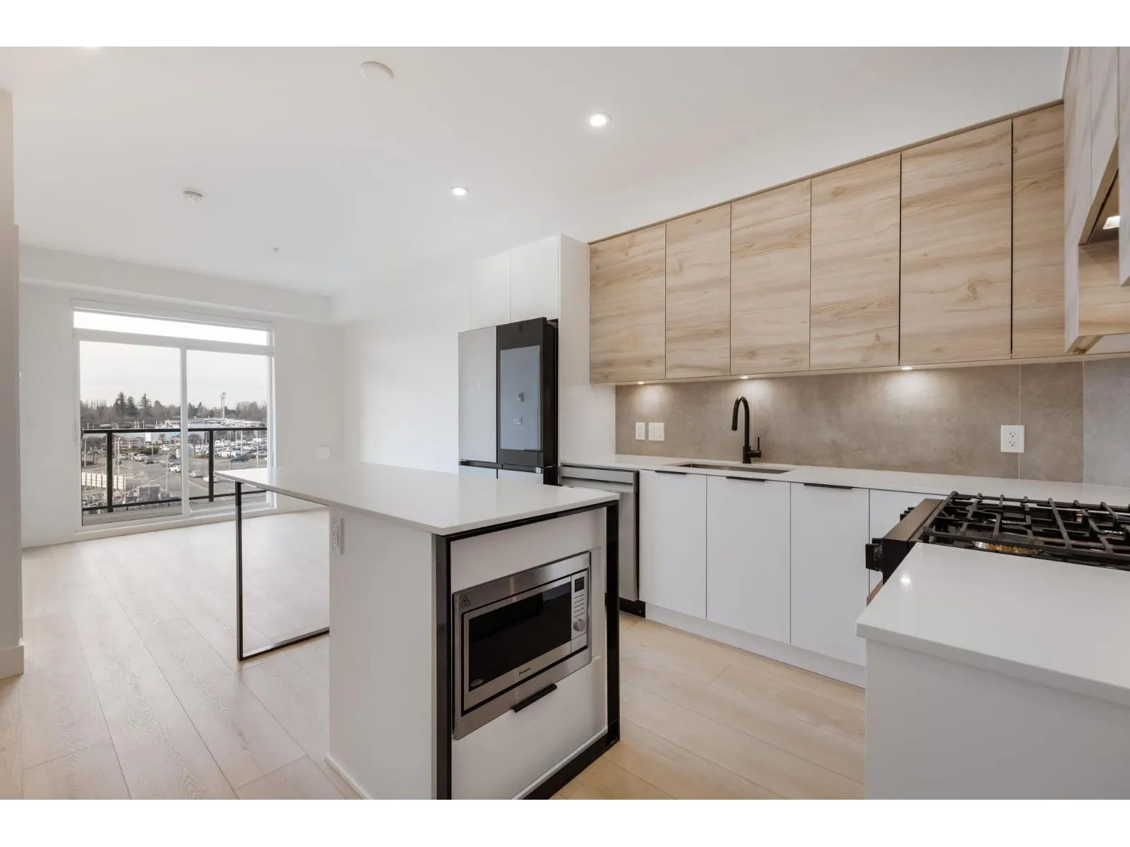 Move in ready at Highstreet Village - Abbotsford's best-selling community. Jr 2 bed + 2 bath home features a modern kitchen, quartz countertops, two-tone cabinetry, stainless steel appliances, including an upgraded smart fridge and gas range. The spa-inspired bathroom includes a frameless glass shower and contemporary finishes. Large covered sundeck. Centrally located next to Highstreet Shopping Centre, Hwy 1, and Abbotsford Airport, all levels of schools, and more. 1 parking and 1 storage space included! (id:27476)