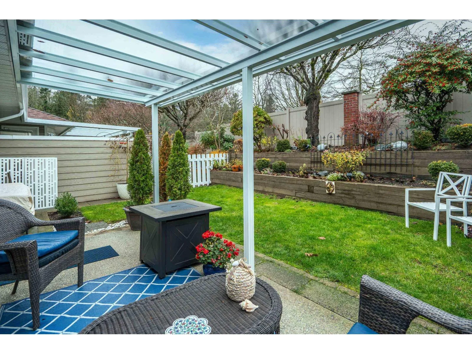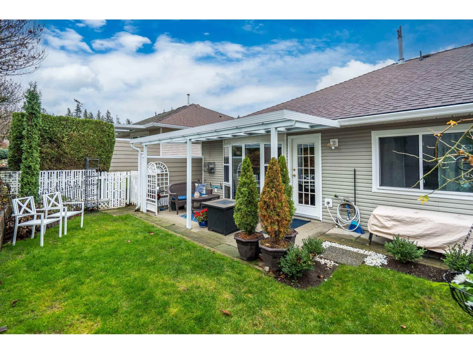 Rancher townhome! East Abbotsford! Gated community! This gorgeous end unit has an amazing location in sought-after Ascott Hills. What a yard - fully fenced, totally private, 18' x 9' covered patio, tiered garden. Updates & features include - new white kitchen cabinets, countertops, stainless steel appliances, bath countertops, sinks, fixtures & toilets, new gas f/p, light fixtures, crown moldings & trim, door hardware, new hot water-on-demand boiler, high efficiency triple pane vinyl windows, floor to ceiling windows in living room, covered front entrance, attached garage. In-floor h/water heat. Dog friendly! Fantastic location w/ easy freeway access, steps to 2 strip malls (Save-On, Shoppers, Starbucks), parks, trails. Very well run strata - gym, guest suite, RV parking. (id:27476)