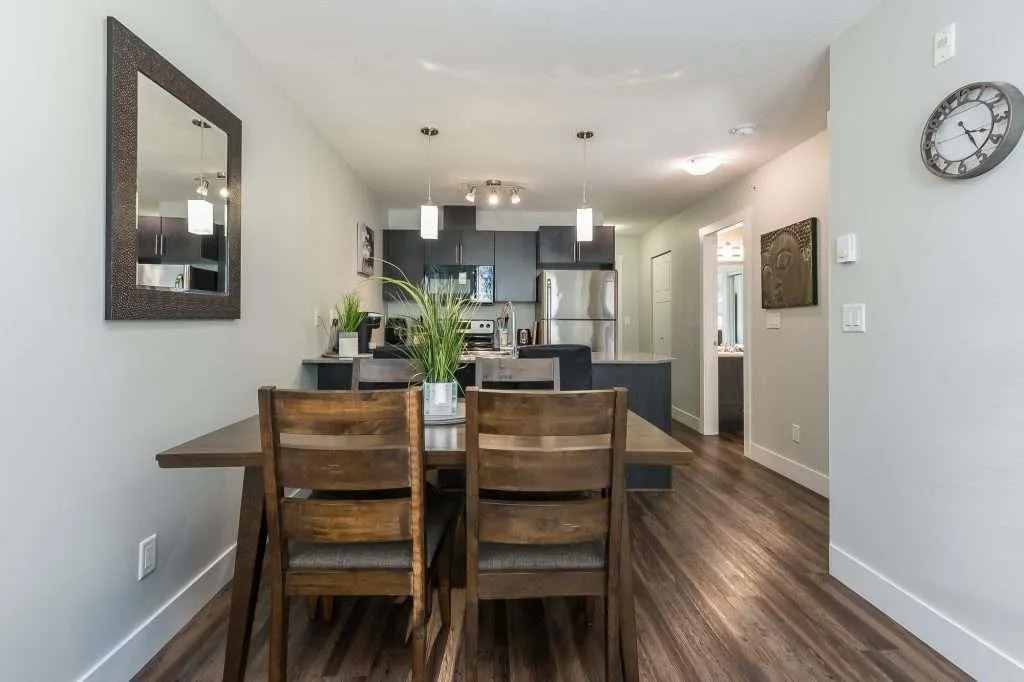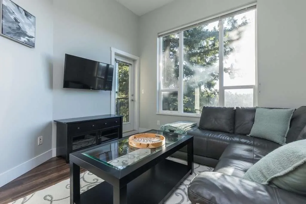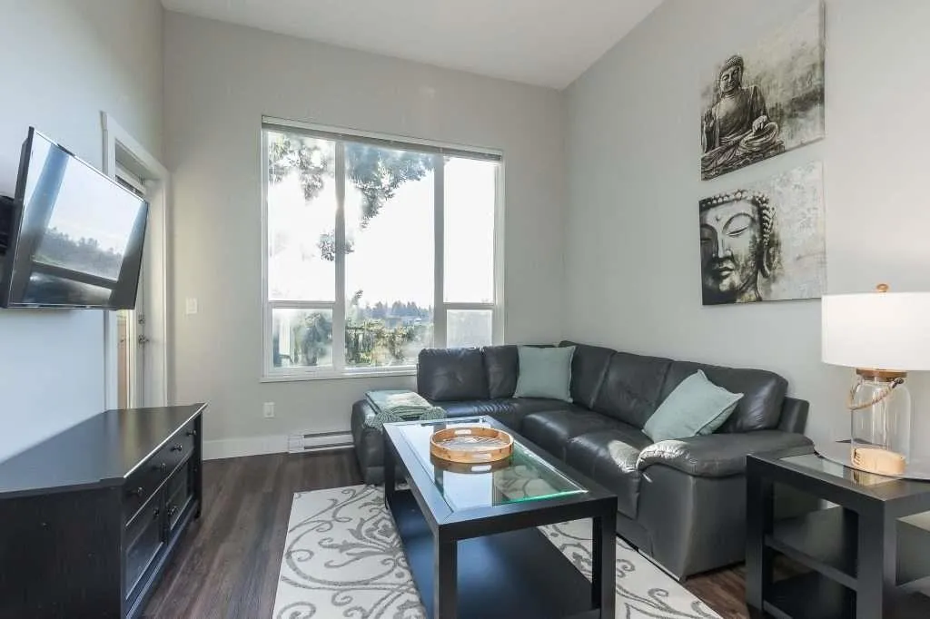 ABACUS UPTOWN PENTHOUSE...1 Bedroom and a Den. This unit is turn key opportunity for anyone wanting a fully furnished suite ready to move right into. The unit is tucked away in a quiet east Abbotsford neighborhood, minutes from revitalized, historic downtown Abbotsford and its fabulous boutiques and delicious dining options. The stunning top-floor unit offers high end finishing's, vaulted ceiling and a beautiful view of town. The complex offers a bike room, club house, exercise center, garden, playground, storage and is wheelchair accessible. This unit is move in ready and waiting for you. Pets and Children welcome. (id:27476)