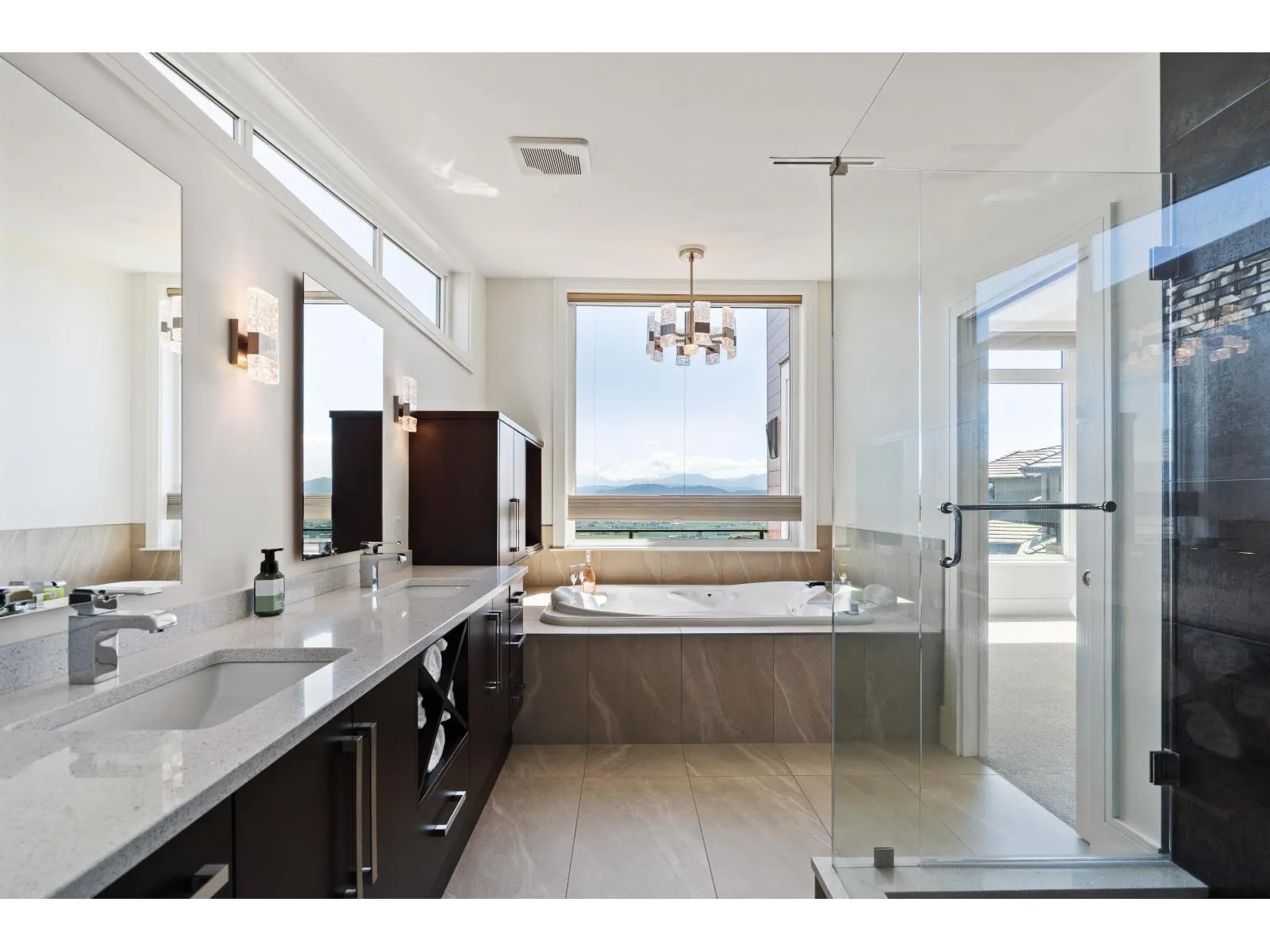 Eagle Mountain masterpiece! This 2017 custom-built home on a 9,000 sq. ft. lot showcases breathtaking Mt. Baker views from nearly every room. Step into a grand 25-ft foyer with soaring 10-ft ceilings, leading to 5-6 bedrooms plus den. The spa-inspired primary ensuite features a two-person Jacuzzi tub, while the gourmet kitchen boasts custom cabinetry and flows seamlessly to an expansive deck with triple-pane sliders. Enjoy a heated garage with hot water, and a versatile lower level with separate entry, patio, storage, and roughed-in bath-perfect for a suite or recreation space. A rare blend of elegance, comfort, and endless potential awaits! (id:27476)