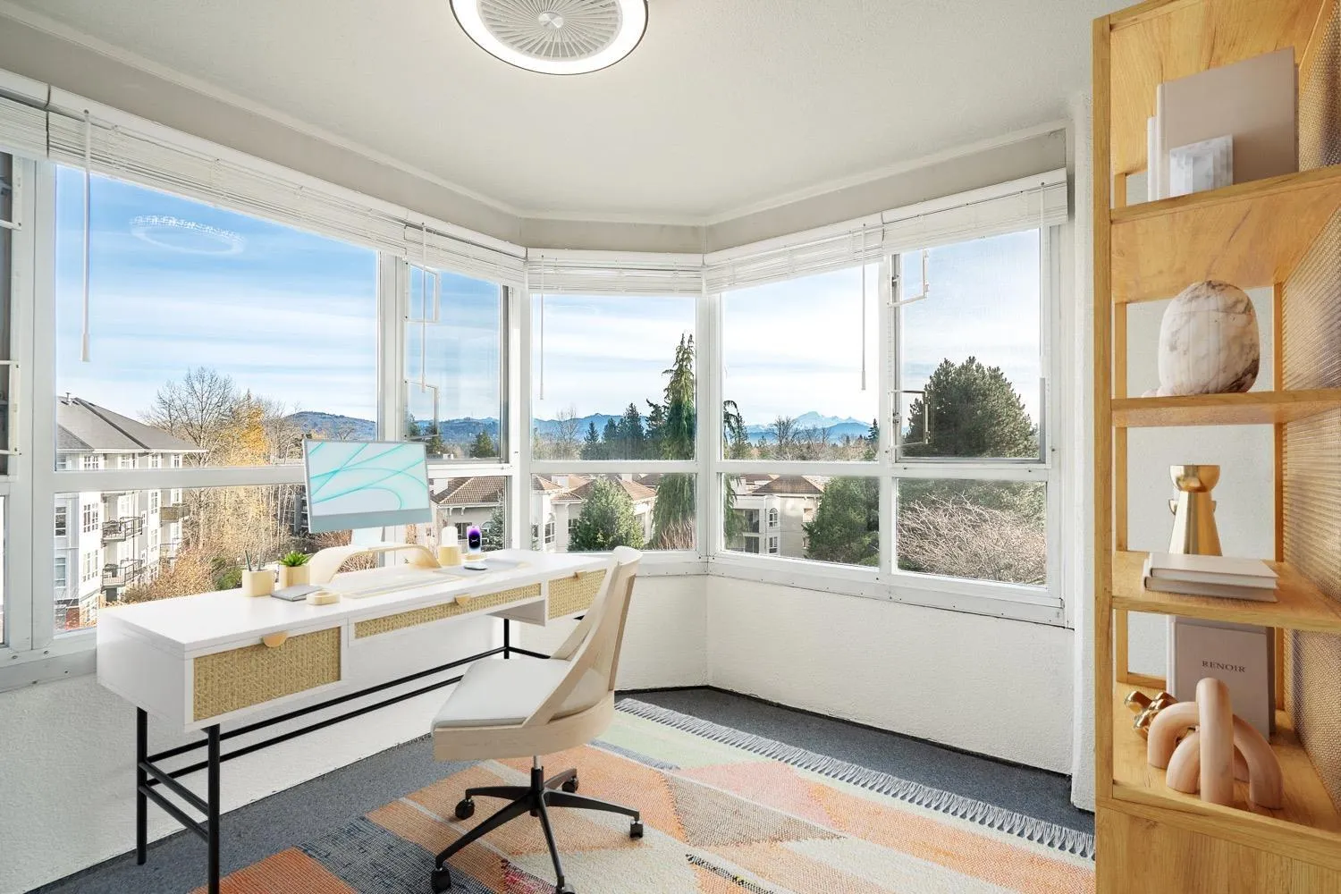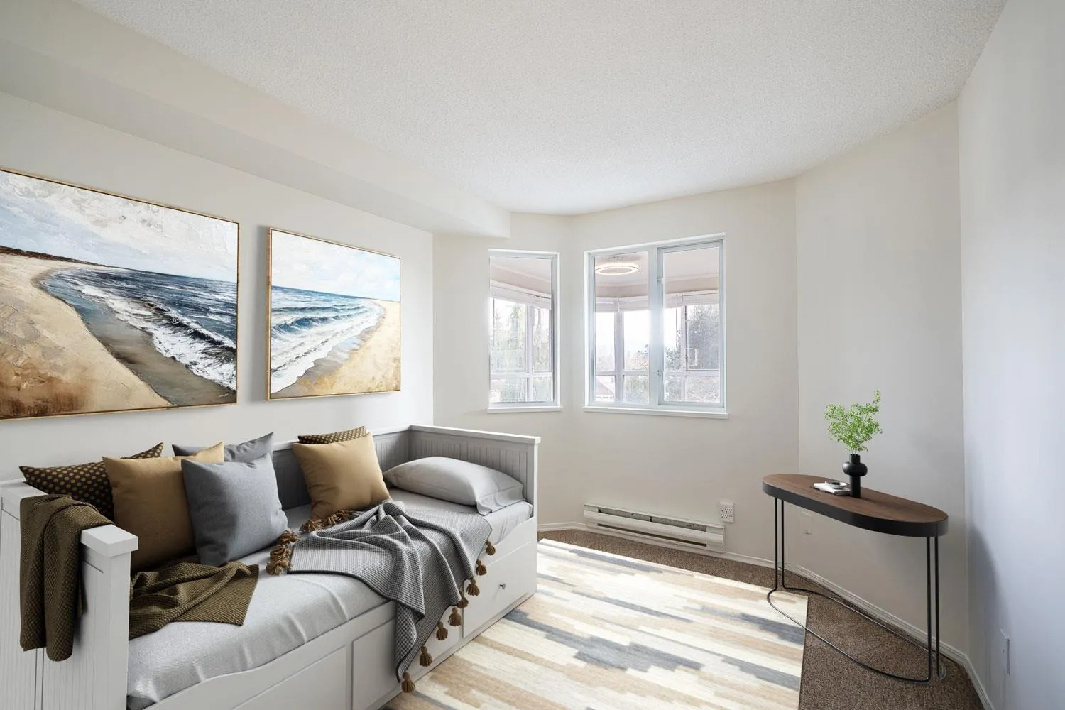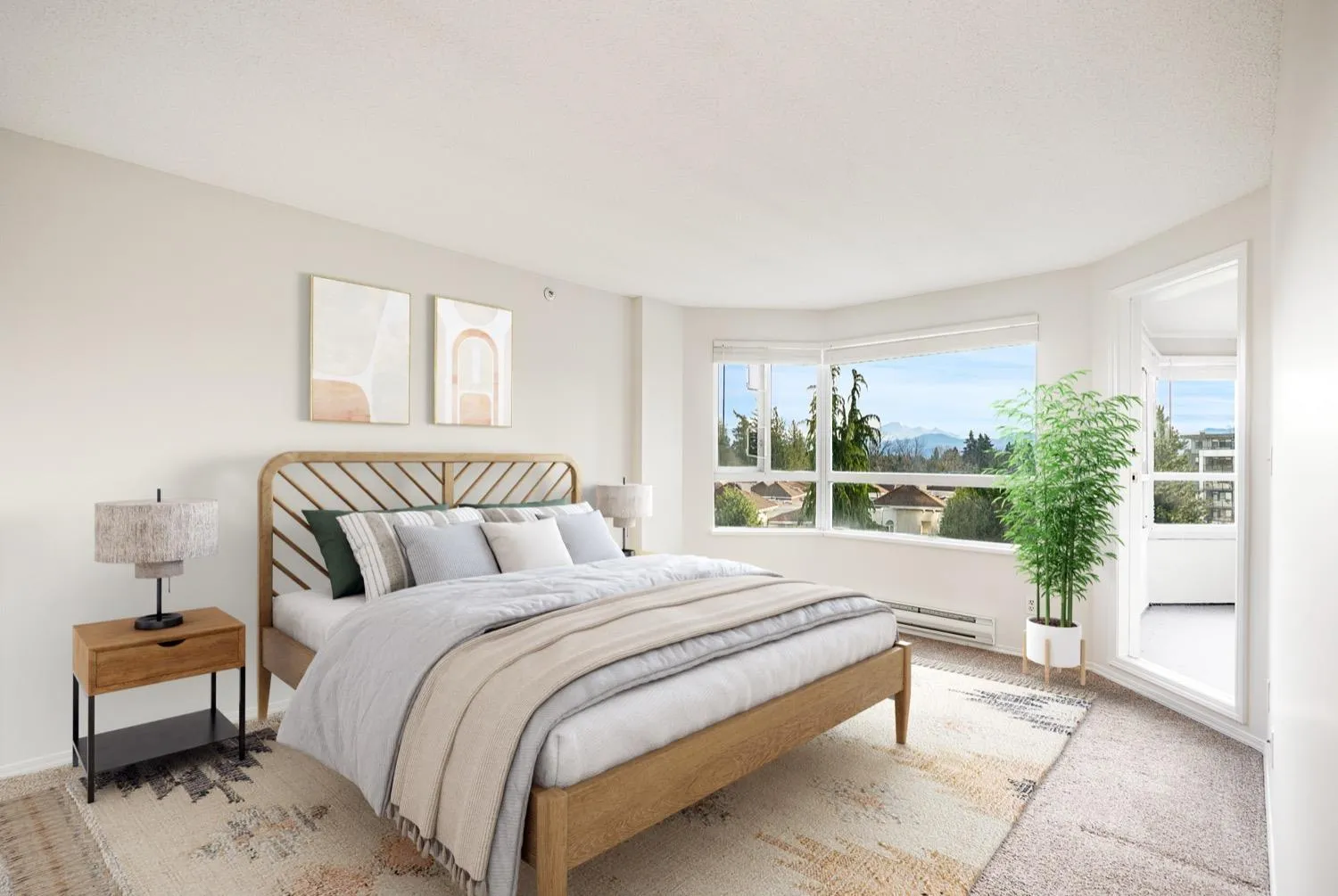 Come and check out Abbotsford's top-most desirable non-age-restricted high-rise buildings at Regency Tower 3! This 2-bed 2-bath suite comes with an enclosed balcony providing beautiful mountain and tree views as a bonus for an extra den or office. The open layout features a large living room surrounded by endless oversized windows to capture lots of light and brighten those gloomy days. With 2 generously sized bedrooms, the primary has a full 4 pc ensuite & a walk-in closet. Located in a resort-style complex, excellent around-the-clock security and a very well-run strata with an indoor pool, sauna, exercise, hot tub, guest suites, ample visitor parking and potential RV parking. Excellent walking score, close to restaurants, shopping mall, Superstore, and Mill Lake. Cat allowed, no dogs. Open House Saturday, December 13th, 2-4 pm. (id:27476)