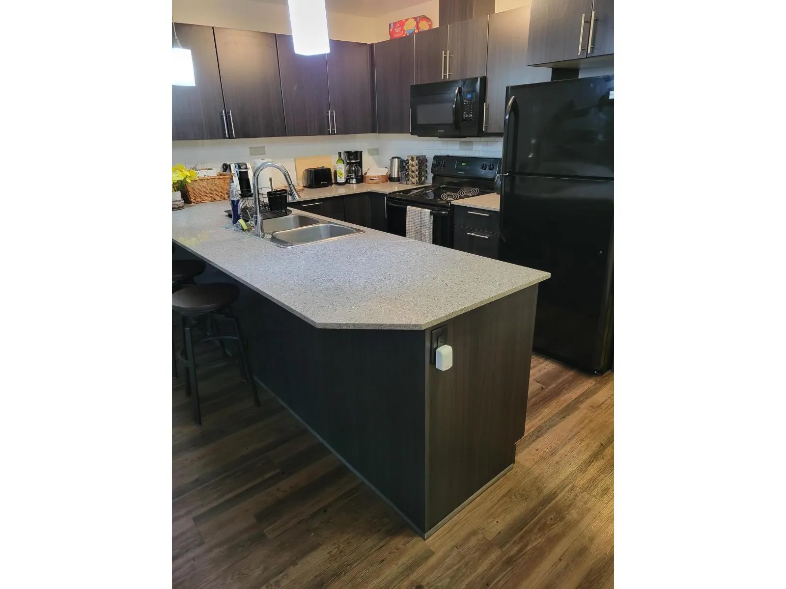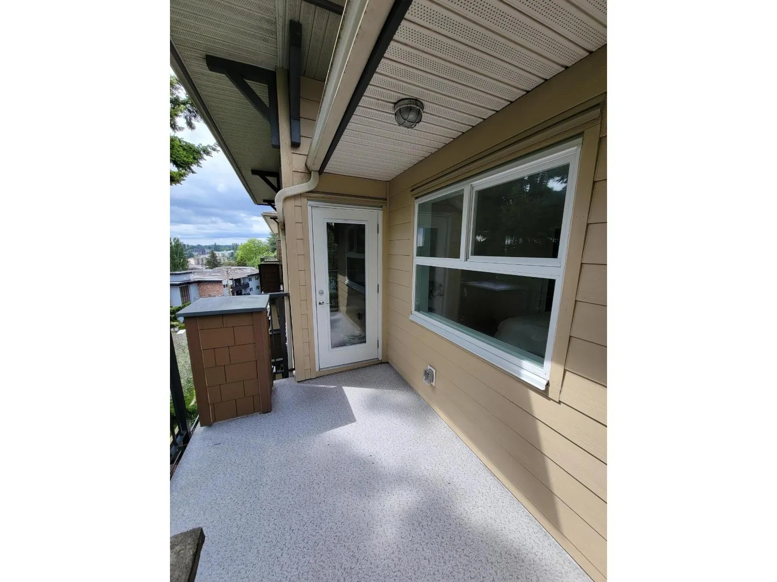RARE!! TOP FLOOR PENTHOUSE CORNER UNIT WITH PEACEFUL & PRIVATE LOCATION!! You will Love the Bright Open Concept with 1 Bdrm & Den, Granite countertops, Laminate flooring, Freshly painted, New Custom Blinds & Washer & Dryer, Vaulted Ceilings in the Living Room and Beautiful Spacious Patio! Located just steps to Shopping, Boutiques, Fabulous Restaurants & easy access to Hwy 1. Pets & Rentals Allowed-1 Dog (No Size Restriction) or 2 Cats. BONUS!! Comes with 2 Secure Parking Stalls & Storage Locker! (id:27476)