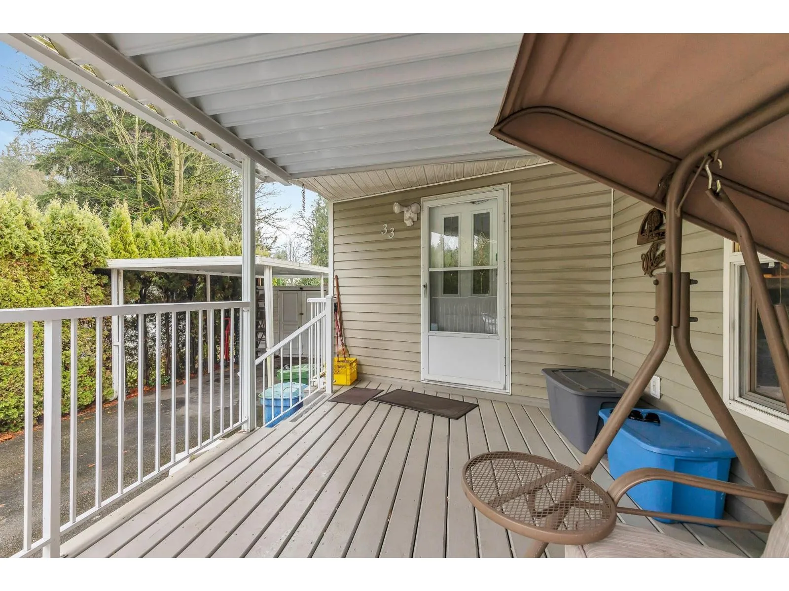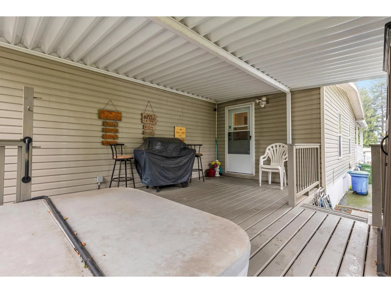 Fantastic home with all the necessities on one level! This spacious home offers over 1,200 sq ft of thoughtfully designed living space with 2 bedrooms and 2 bathrooms. Enjoy the convenience of two covered decks, a relaxing hot tub, air conditioning, and a new hot water tank. The home features a full-size washer and dryer, great kitchen for the cook in the family, built-in storage, and three additional storage sheds outside. Open-concept living area that's perfect for everyday living and entertaining. The yard is amazing and the location in the park is like no other. You'll have to come and have a look for yourself. All of this makes this the perfect place to call home! Agult oriented 55+ plus age restriction. (id:27476)