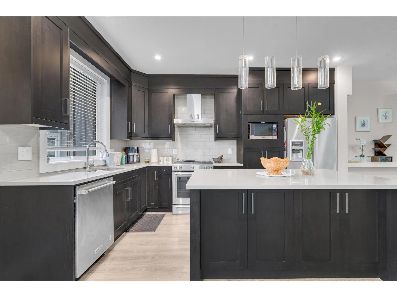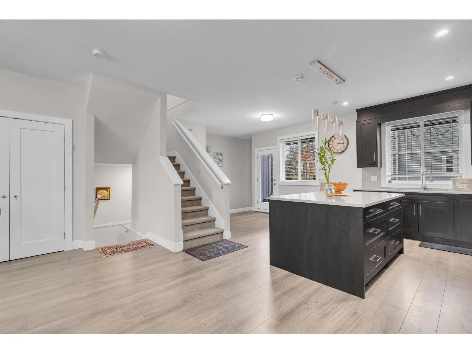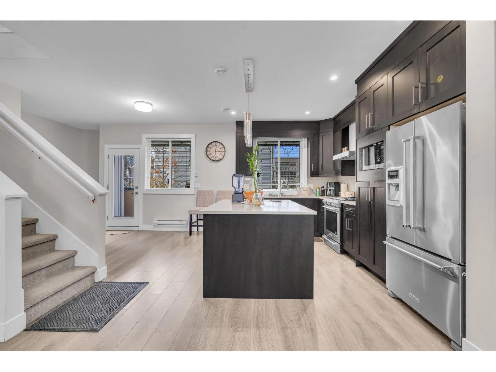 A beautiful townhouse with 4 bed 4 bath, offering nearly 1,900 sq. ft. of bright and functional living space. The entry level features a spacious flex room with a full bath, perfect as a 4th bedroom or private guest suite. The main floor showcases an open-concept kitchen and living area with a powder room-ideal for both everyday living and entertaining. Upstairs, you'll find three well-sized bedrooms, two full bathrooms, including a spa-inspired ensuite with a soaker tub, plus convenient upper-floor laundry. Upgrades include KitchenAid stainless steel appliances, a gas range, quartz countertops, soft-close cabinetry, and wide-plank laminate flooring. Additional perks: a double-wide garage, low strata fees, and the comfort of a home that feels like a detached-plus ample extra street parking (id:27476)