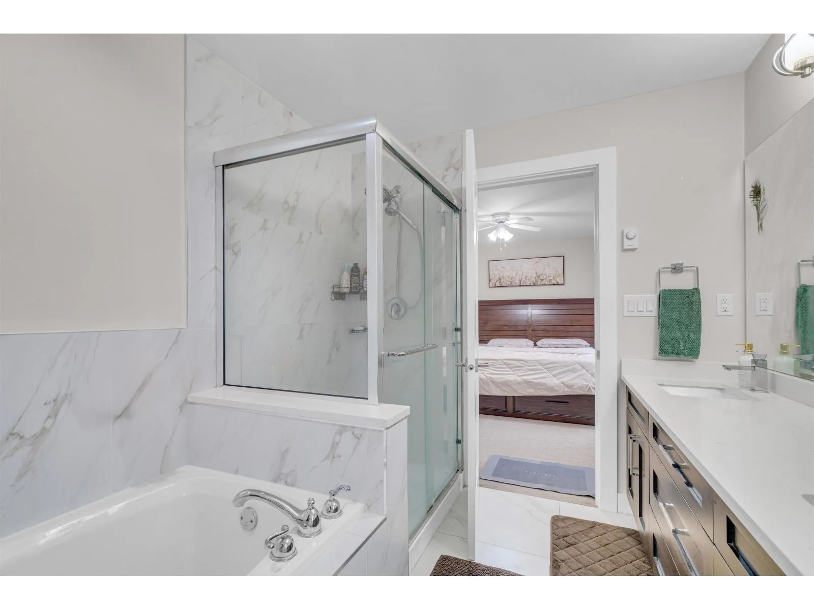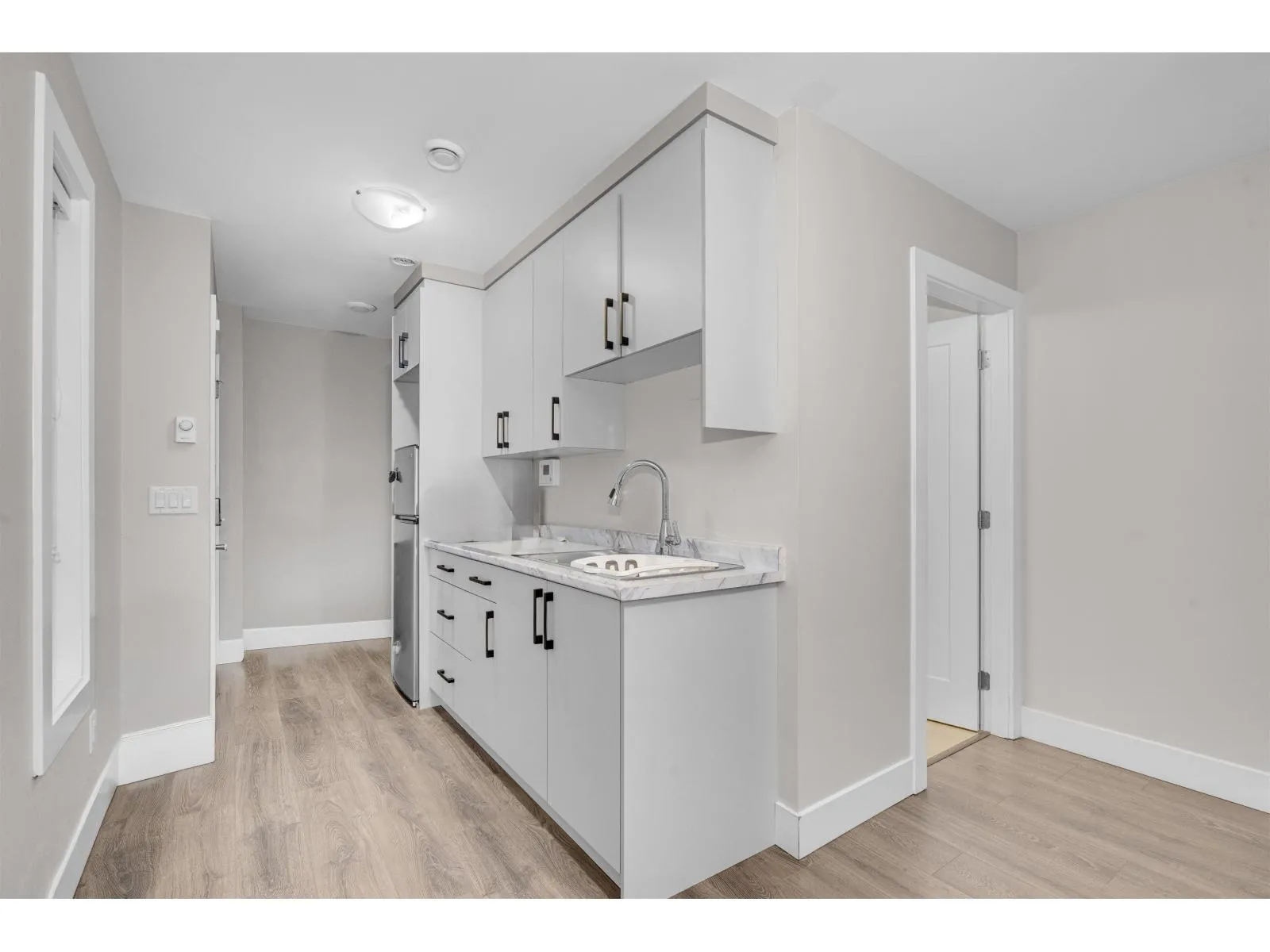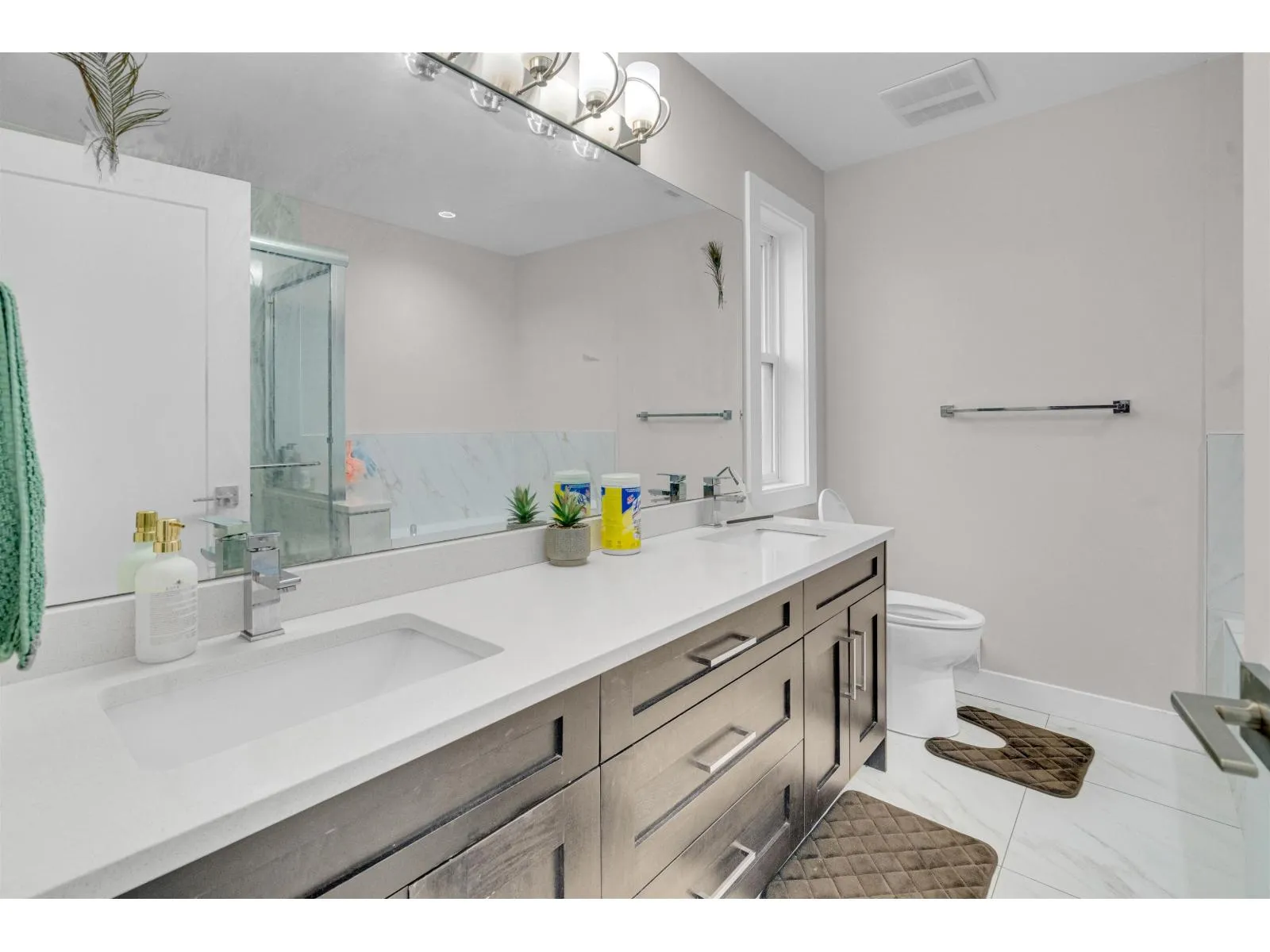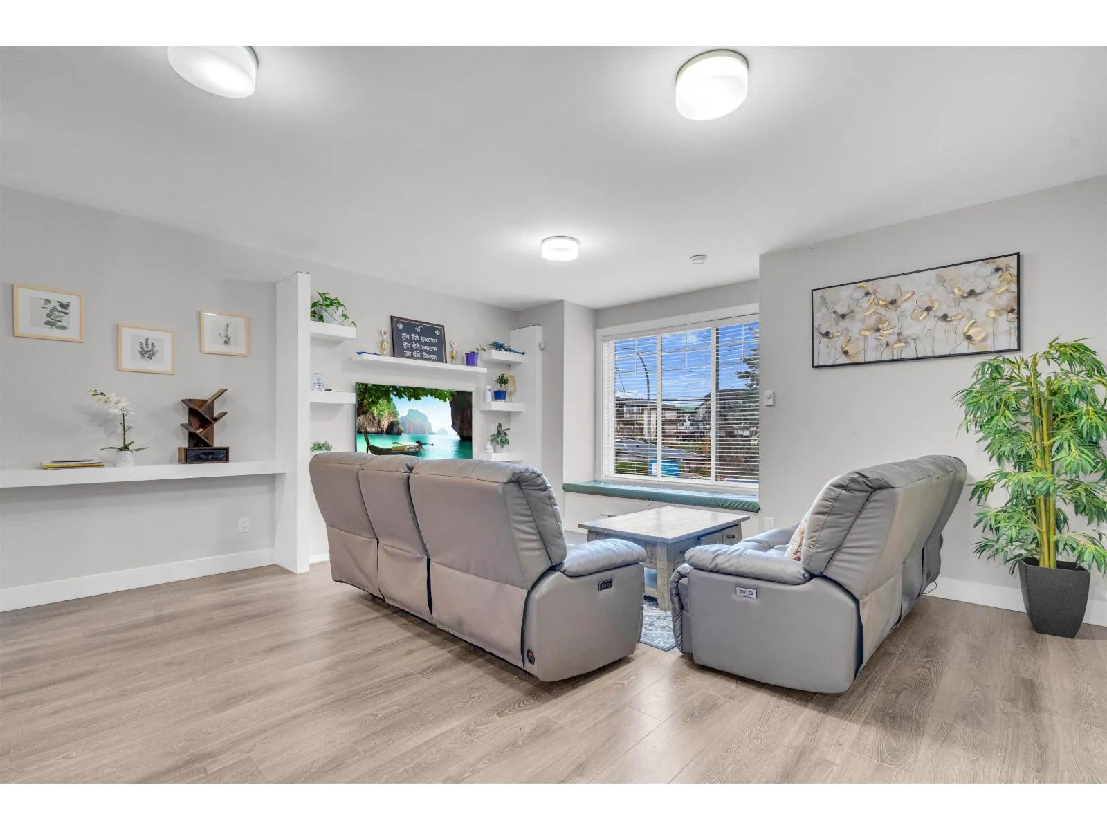 A beautiful townhouse with 4 bed 4 bath, offering nearly 1,900 sq. ft. of bright and functional living space. The entry level features a spacious flex room with a full bath, perfect as a 4th bedroom or private guest suite. The main floor showcases an open-concept kitchen and living area with a powder room-ideal for both everyday living and entertaining. Upstairs, you'll find three well-sized bedrooms, two full bathrooms, including a spa-inspired ensuite with a soaker tub, plus convenient upper-floor laundry. Upgrades include KitchenAid stainless steel appliances, a gas range, quartz countertops, soft-close cabinetry, and wide-plank laminate flooring. Additional perks: a double-wide garage, low strata fees, and the comfort of a home that feels like a detached-plus ample extra street parking (id:27476)