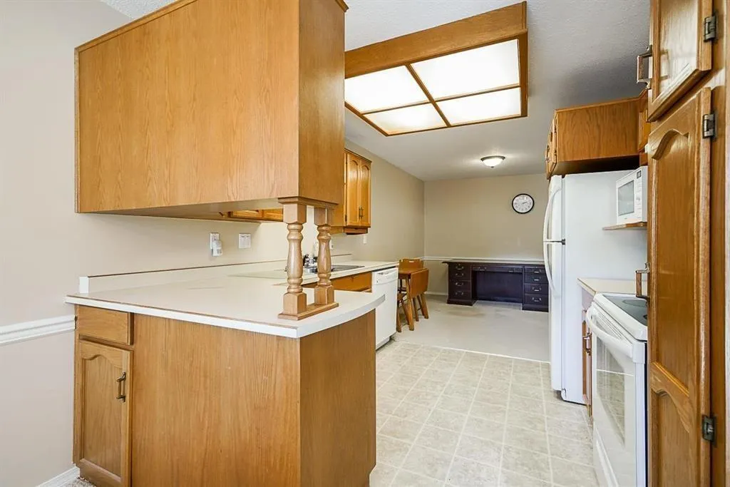 This Ground-Level, adult-oriented complex caters to individuals aged 55 and over. The 1185 sq ft ranch-style home features a quiet living well run complex. The large open living area features two spacious bedrooms: one with a three-piece En-suite and another bedroom that has access to an outdoor area backing onto lush greenery and offering privacy. Sliding glass doors allowing tons of southern exposure and light into the main living area lead to a nice patio to enjoy the water fountain that enhances the ambiance. The complex also offers a suite for weekend guests and a workshop or the carpenters!!! all located just minutes away from Seven Oaks Mall and Mill Lake. Pet Restriction 1 cat New roof 2021. (id:27476)