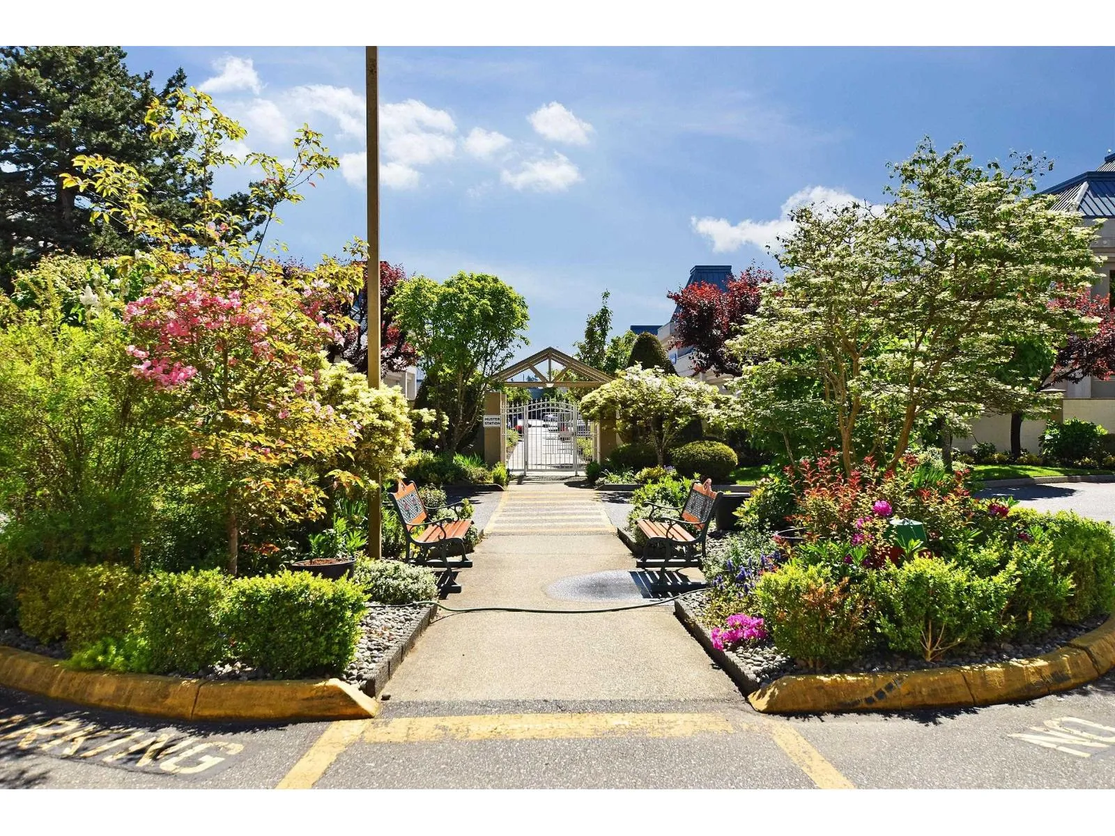 THE WEDGEWOOD - Bright top floor west-facing 2-bedroom, 2-bathroom home in a friendly 55+ community offers 1,118 sq ft of easy, single-level living. This unit features a custom walk in shower in the ensuite, air conditioning, skylight, motorized blinds, and a smart, functional layout. Access your balcony from either bedroom or your living room, use the retractable screens for added air flow. Tucked away in a quiet, well-kept building just minutes from shopping, transit, and everyday conveniences. With electricity, heat, and hot water included in the strata fee, it's truly worry-free living. Double elevators provide extra convenience and bonus storage room for your Christmas decorations. (id:27476)