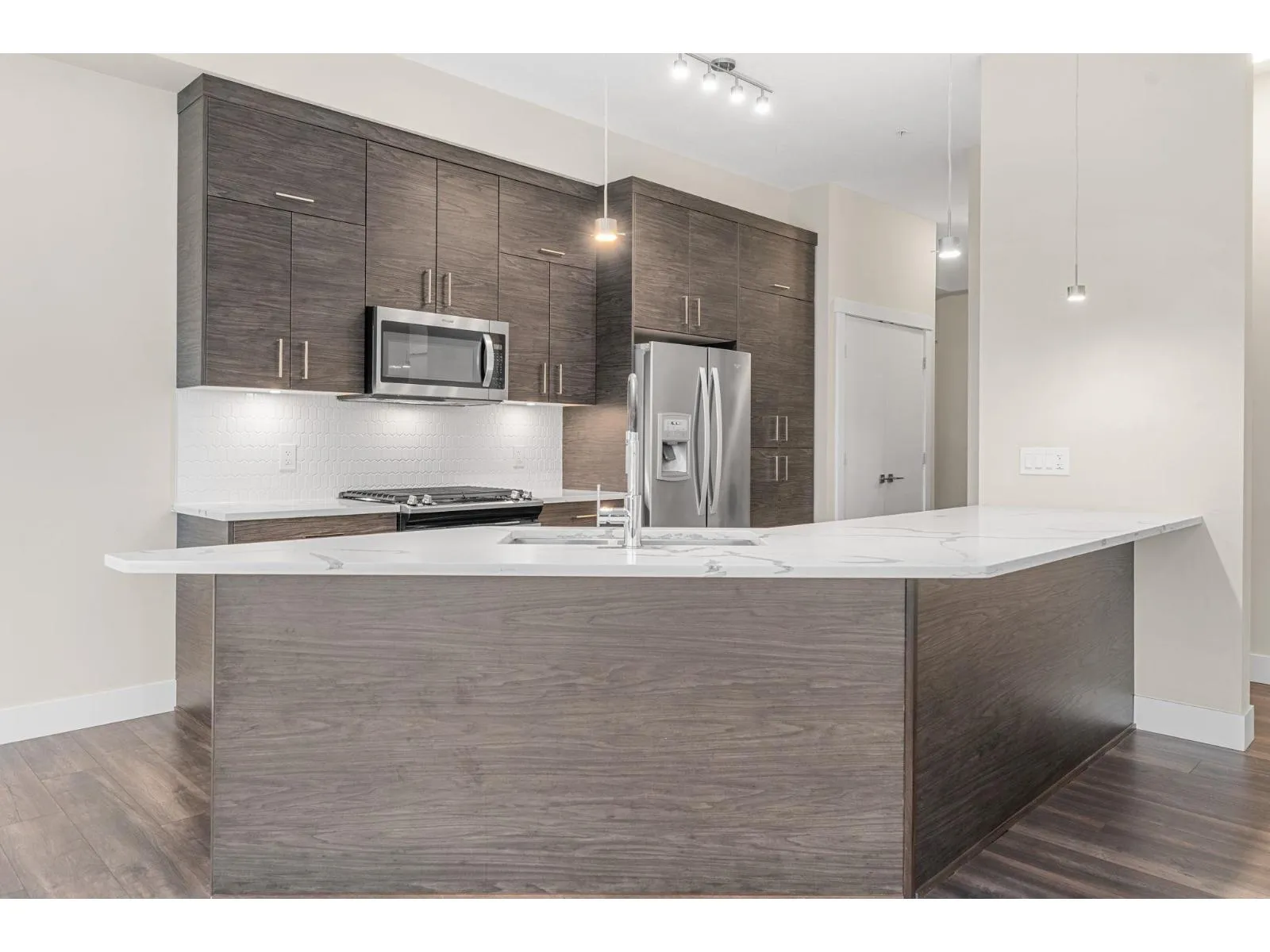 The Onxy at Mahogany, prime 3rd floor southwest corner unit! Fabulous bright and open layout with 10' ceilings, leading to an oversized 202 sq. ft. balcony with SW mountain views. Spacious Kitchen featuring stainless steel appliances, quartz counters and large island. A/C, separate storage, gym, two parking stalls and bike storage. Very central location, close to shops, easy access to HWY1 and steps to Mill Lake Park. Shows very well!! (id:27476)