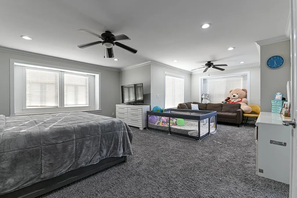 3 Storey home! 2 2 bedrooms suites, with option to make another suite on main floor if needed. Beautifully updated custom-built 3-level home with over 5,100 sq.ft. on 9,146 sq.ft. corner lot. Features gated 12x45 RV parking, soaring ceiling, a chef's kitchen with spice kitchen, family room, office, and a media/bedroom on the main. Upstairs offers 4 spacious bedrooms with ensuites plus a study. Includes two fully finished 2-bedroom basement suites. Updates includes flooring, paint, lighting, and bathrooms. Private west-facing backyard with large deck and 8x12 shed. Close to schools, parks, and major routes. (id:27476)
