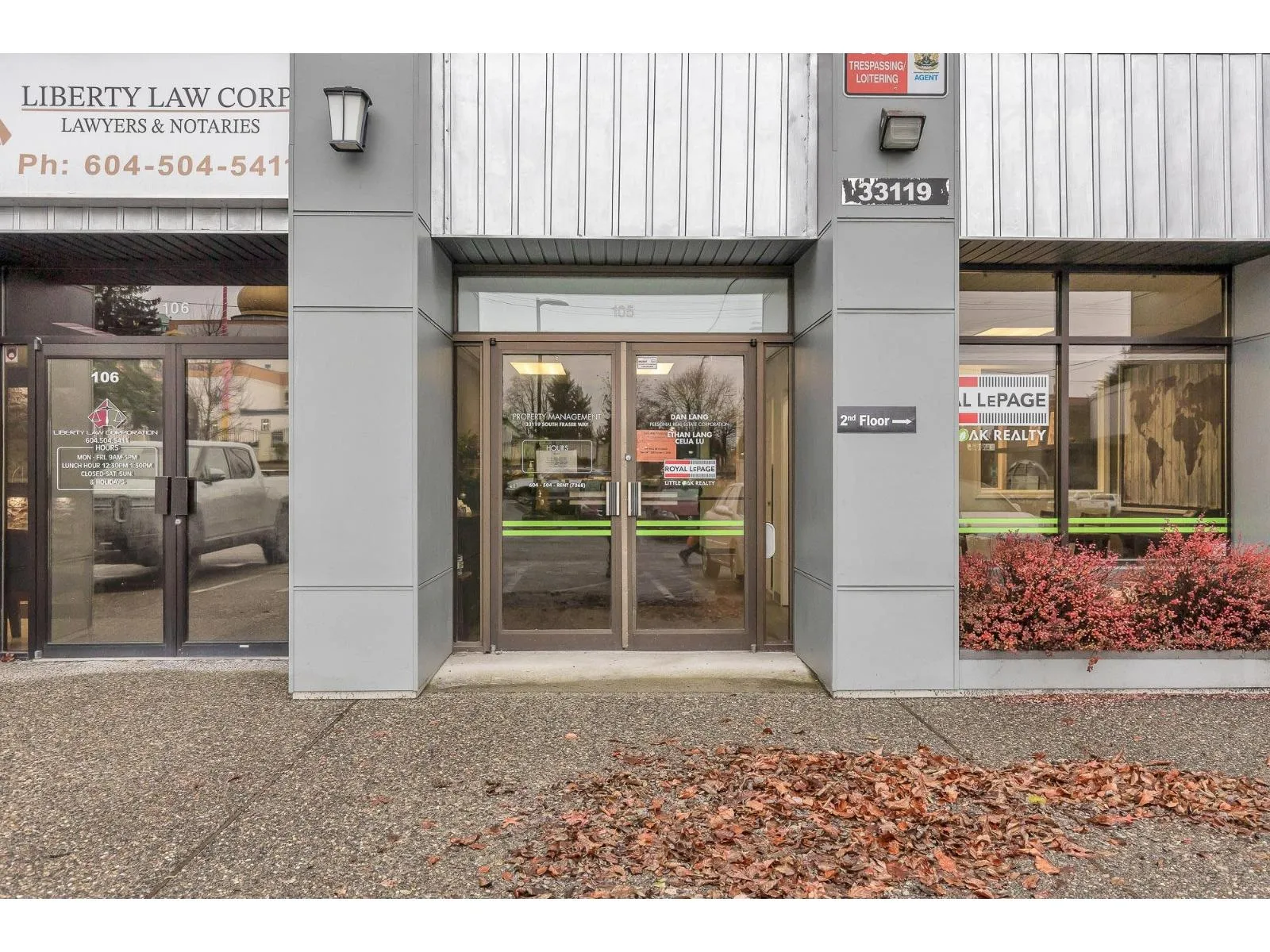 The 978 square foot ground-floor office space at 33119 South Fraser Way in Abbotsford offers a functional and accessible layout well suited for professional or service-oriented businesses. Situated at grade, the unit provides convenient walk-in access for staff and clients, complemented by generous on-site parking. The space is well maintained and benefits from a central location with strong connectivity to surrounding amenities, retail services, and major transportation routes, making it an excellent option for businesses seeking practicality and ease of access. (id:27476)