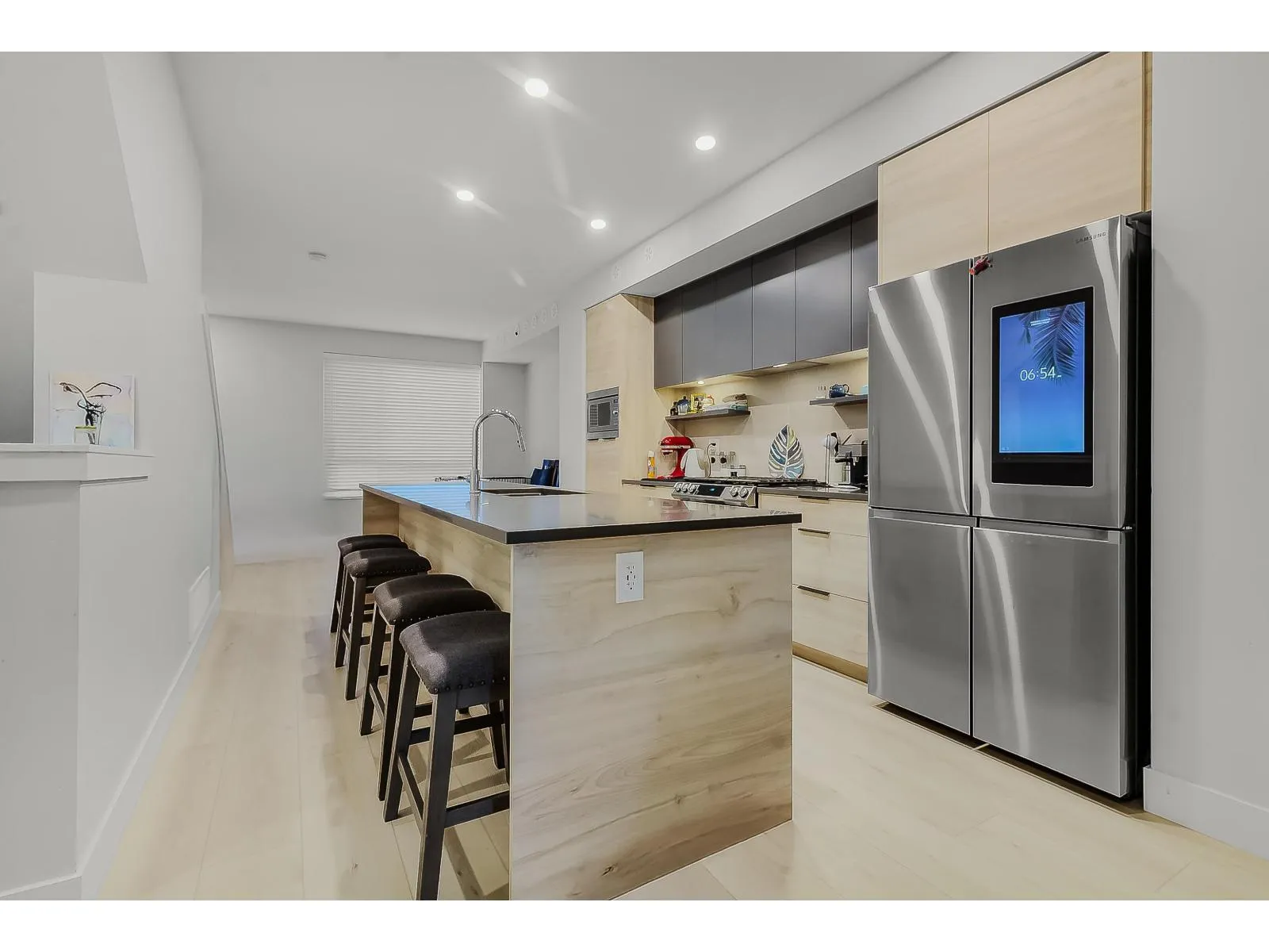 Welcome to Highstreet Village -- a vibrant 12-acre master-planned community from Highstreet Shopping Centre, offering 600,000 sq. ft. of retail, dining, and entertainment including a VIP movie theatre. This 1,549 sq. ft. 4-bed, 4-bath townhome features a double garage, forced air heating, central A/C, smart fridge, and gas hookup. Enjoy 9' ceilings, vinyl plank flooring, roller shades, and a gourmet kitchen with quartz counters, two-tone cabinetry, and premium stainless steel appliances. The spacious primary suite includes a walk-in closet and spa-inspired ensuite. Amenities include a lounge, kitchen, and virtual Zoom rooms. Minutes from Hwy 1, YXX Airport, downtown Abbotsford, and the US border. Some of the photos are virtually staged. (id:27476)