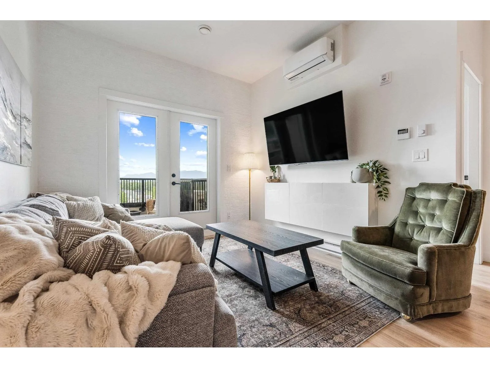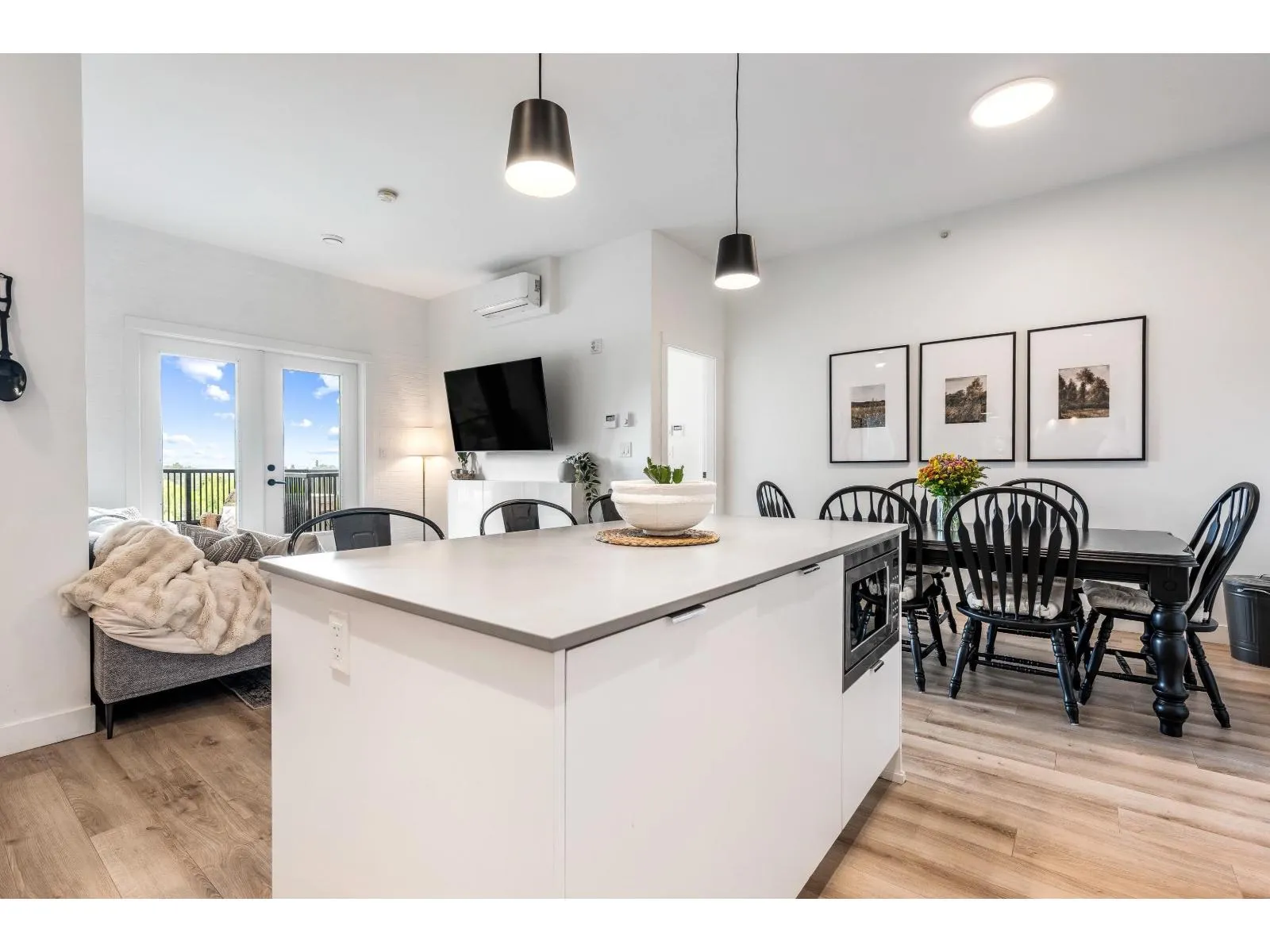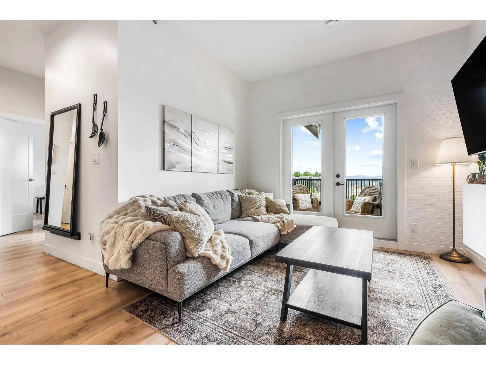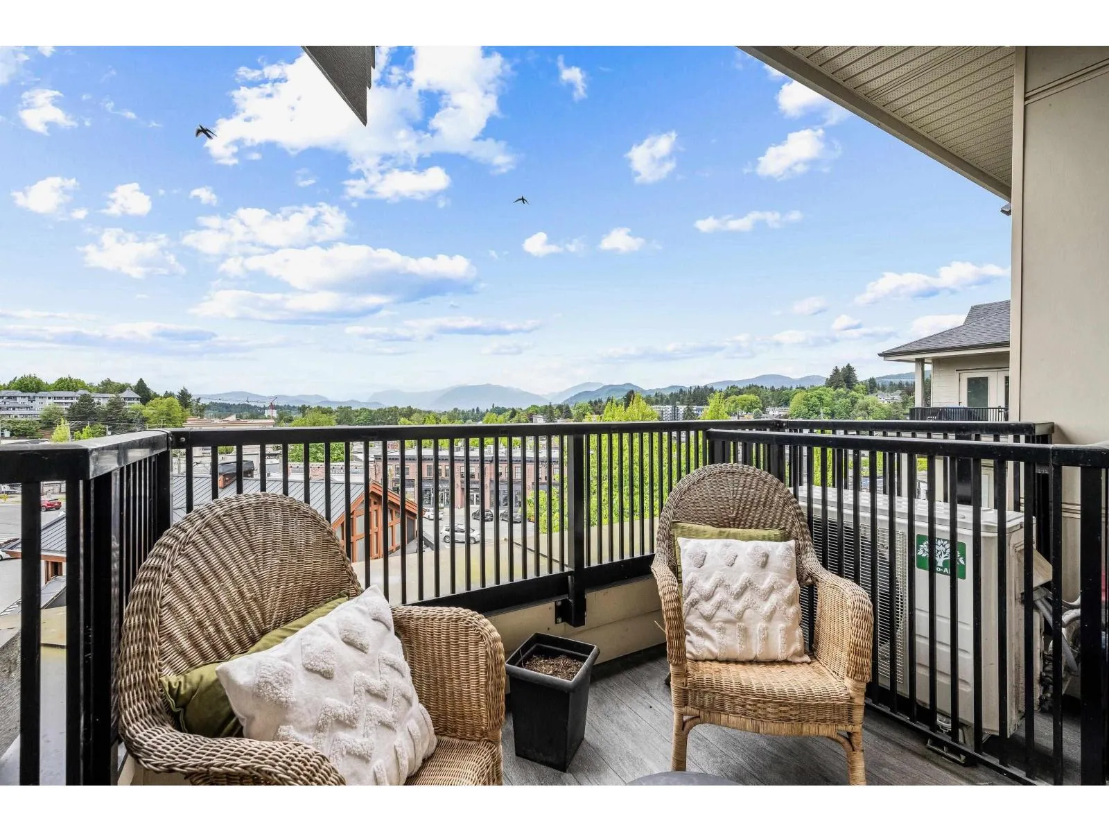 Welcome to Upper Montrose in the heart of downtown Abbotsford! This top-floor 3 bed + den, 2 bath home offers 1,225 sqft of open-concept living with stunning northern views. Features include A/C in the living room and primary bedroom, a gourmet kitchen with quartz counters, stainless appliances, large island, and gas BBQ hookup on the patio. The spacious primary suite boasts walk-through closets and a double-sink ensuite. The versatile den is perfect for a nursery, office, or extra storage. Enjoy 2 parking stalls, family-friendly amenities, and proximity to schools, shops, cafes, gyms, Old Yale Brewing, and the new transit loop. (id:27476)