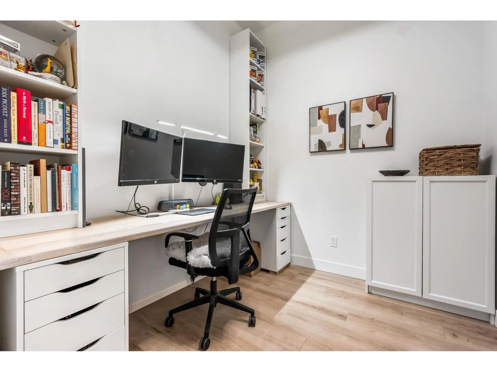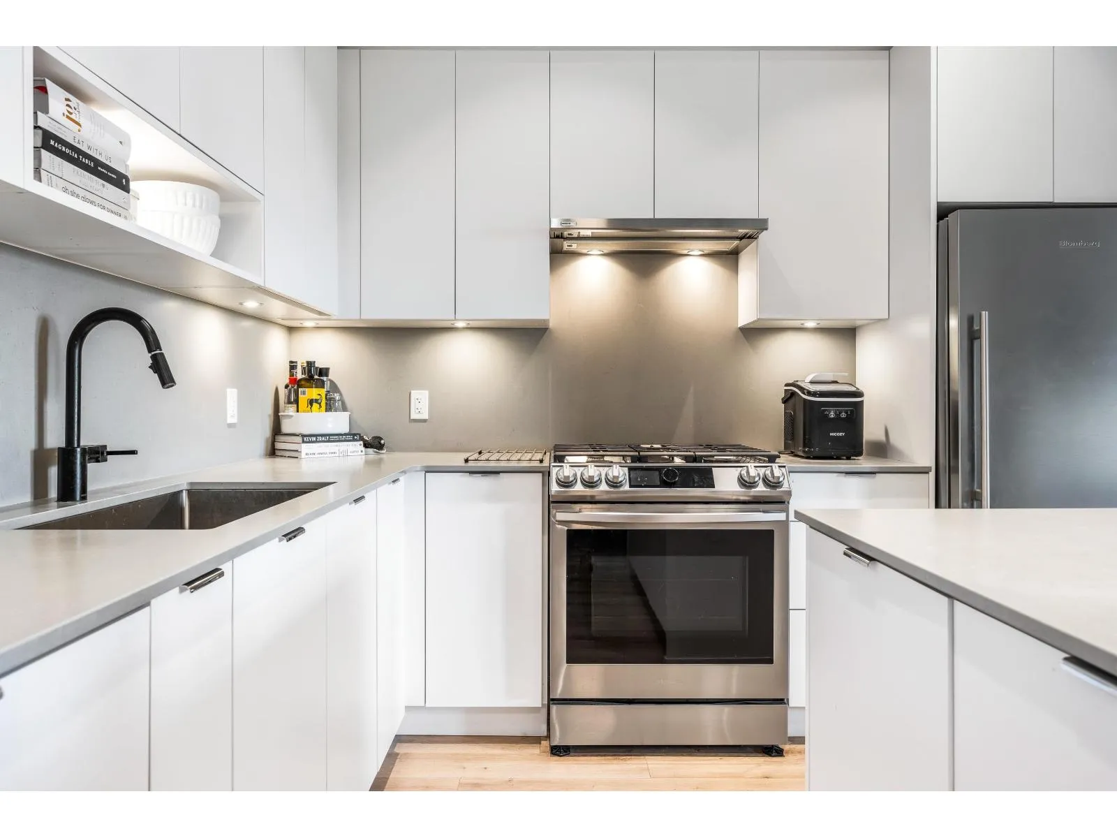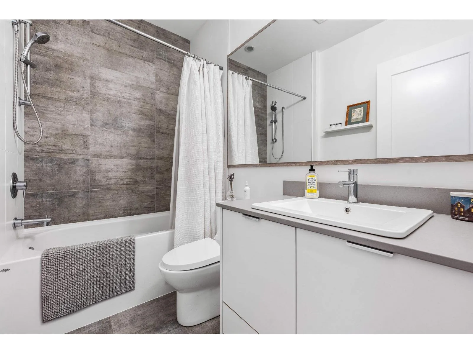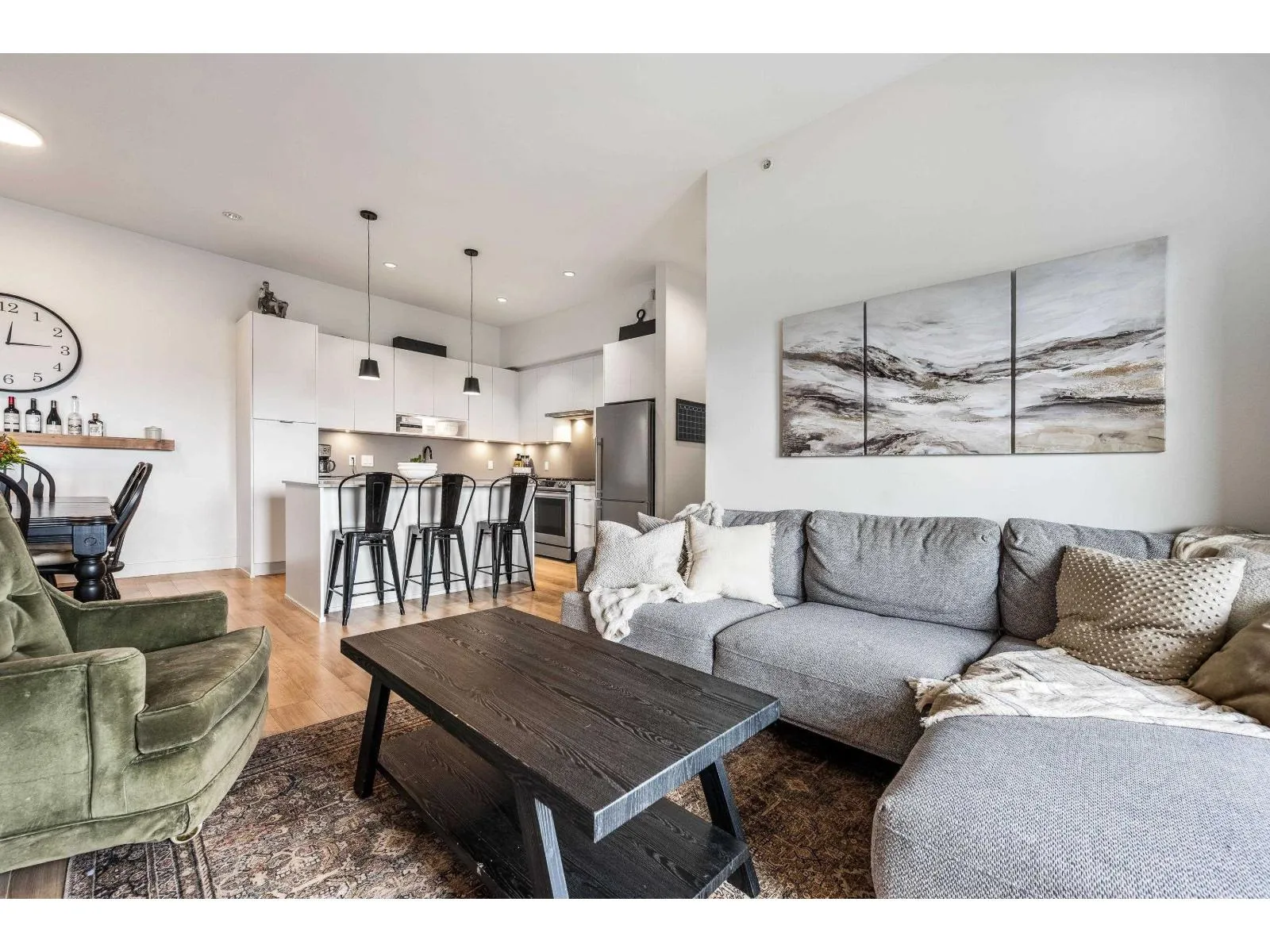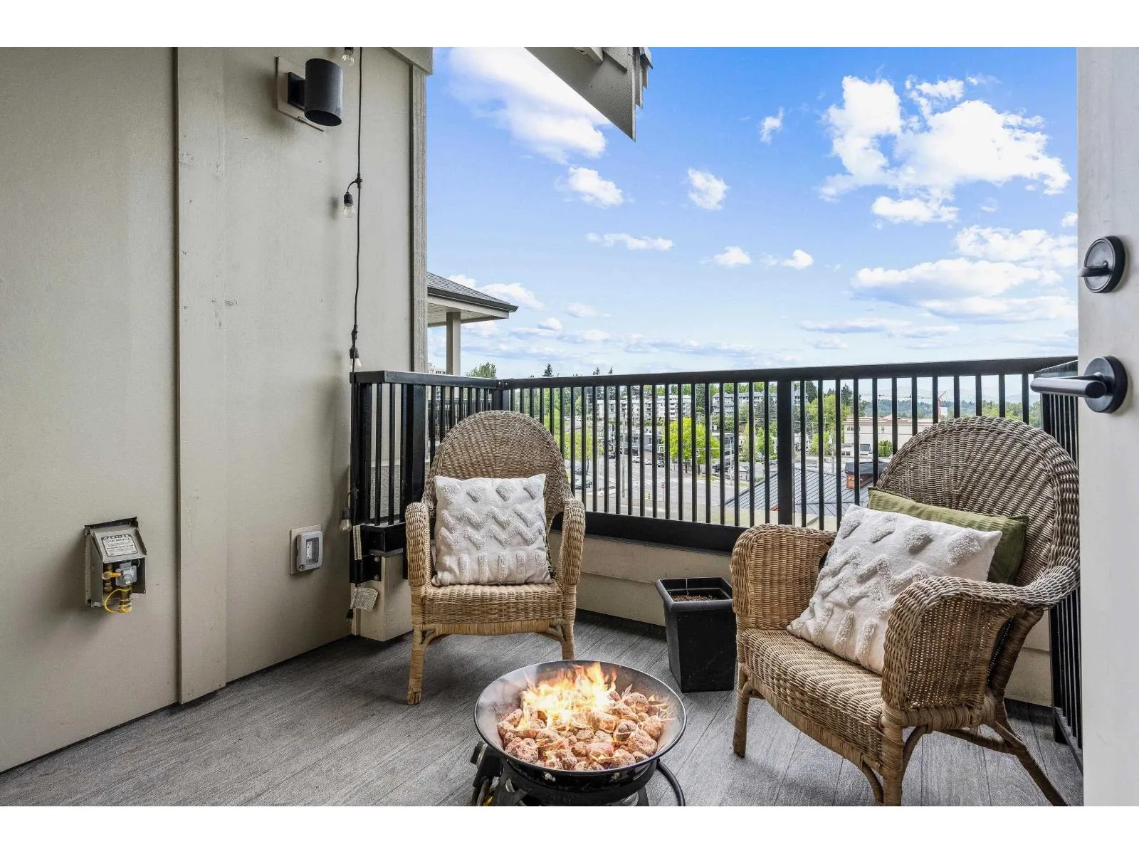 Welcome to Upper Montrose in the heart of downtown Abbotsford! This top-floor 3 bed + den, 2 bath home offers 1,225 sqft of open-concept living with stunning northern views. Features include A/C in the living room and primary bedroom, a gourmet kitchen with quartz counters, stainless appliances, large island, and gas BBQ hookup on the patio. The spacious primary suite boasts walk-through closets and a double-sink ensuite. The versatile den is perfect for a nursery, office, or extra storage. Enjoy 2 parking stalls, family-friendly amenities, and proximity to schools, shops, cafes, gyms, Old Yale Brewing, and the new transit loop. (id:27476)