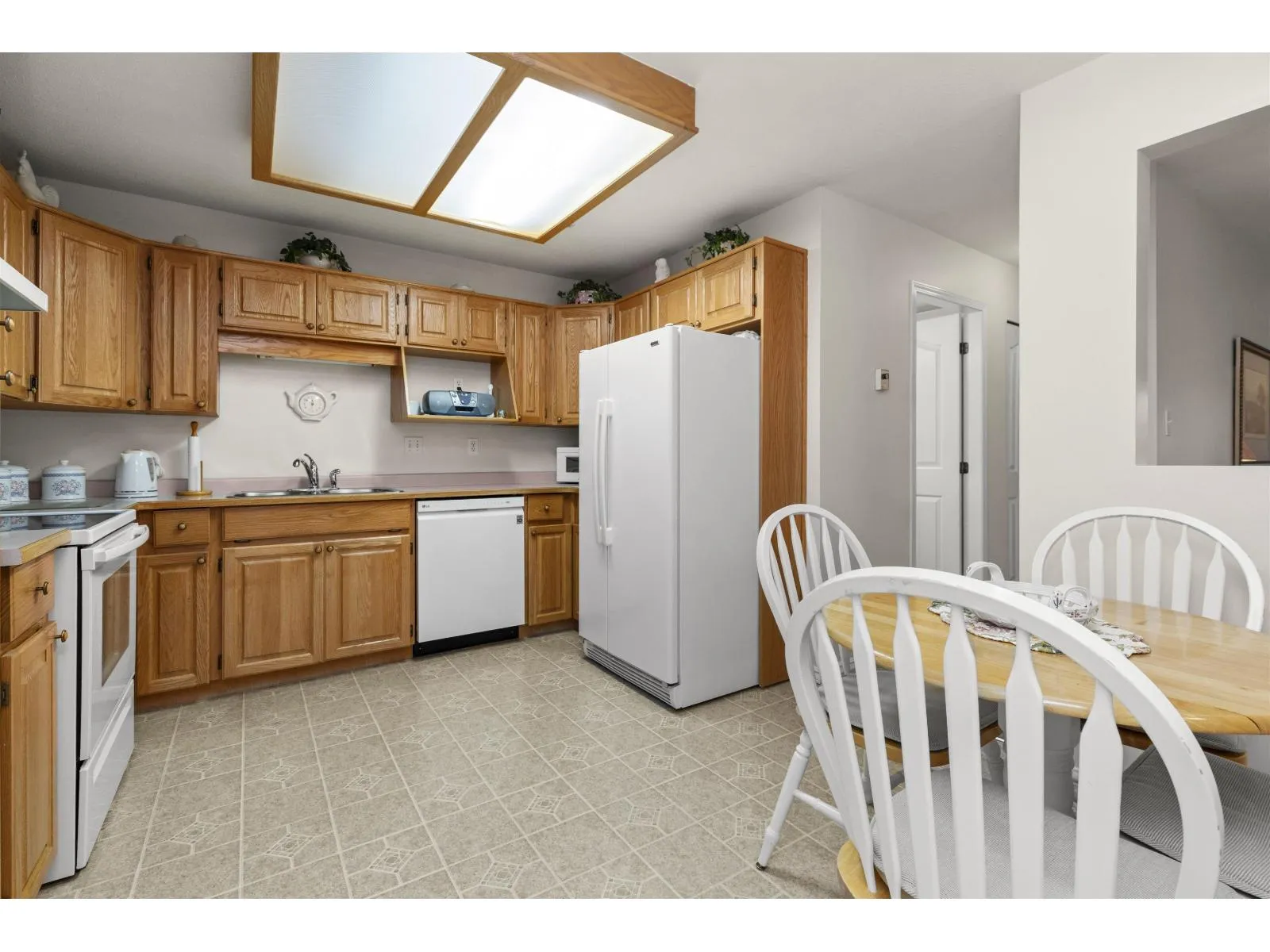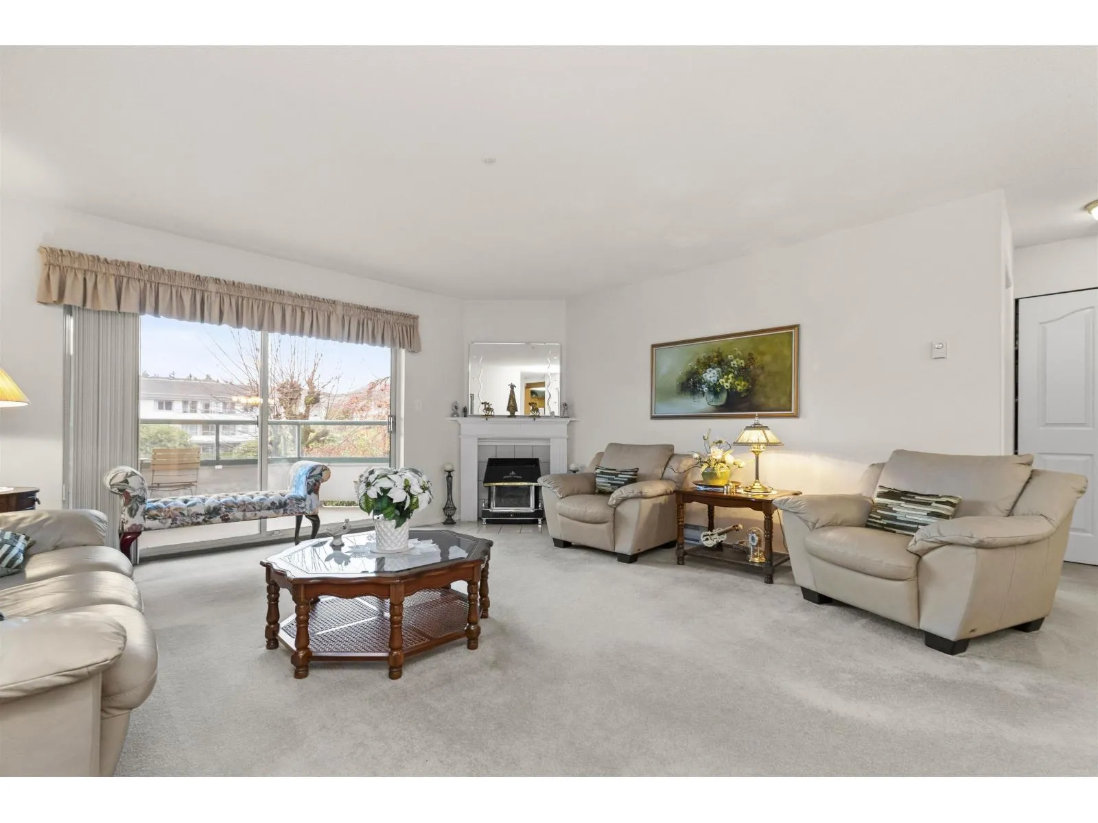 Don't miss out on this desirable location! The Oaks at Centennial Court, conveniently located near shopping, recreation & Mill Lake. This 2 bedroom/2 bathroom condo faces the courtyard and is very clean and well maintained. The layout is great with one bedroom & one bathroom on each side of the unit. This home feels open and spacious, the living room has a nice gas fireplace and access to the deck where you can enjoy your morning coffee. The laundry room has ample extra space for extra storage. The complex has fantastic amenities including an indoor pool, steam room, hot tub, fitness room, library, large meeting room and the courtyard has a great gazebo. This is 55+ living, pets are not permitted. Book a viewing today! (id:27476)