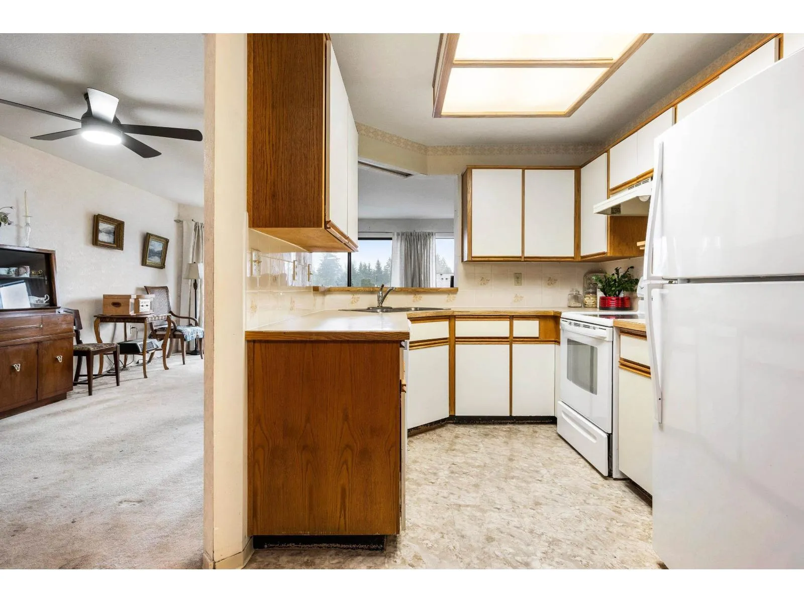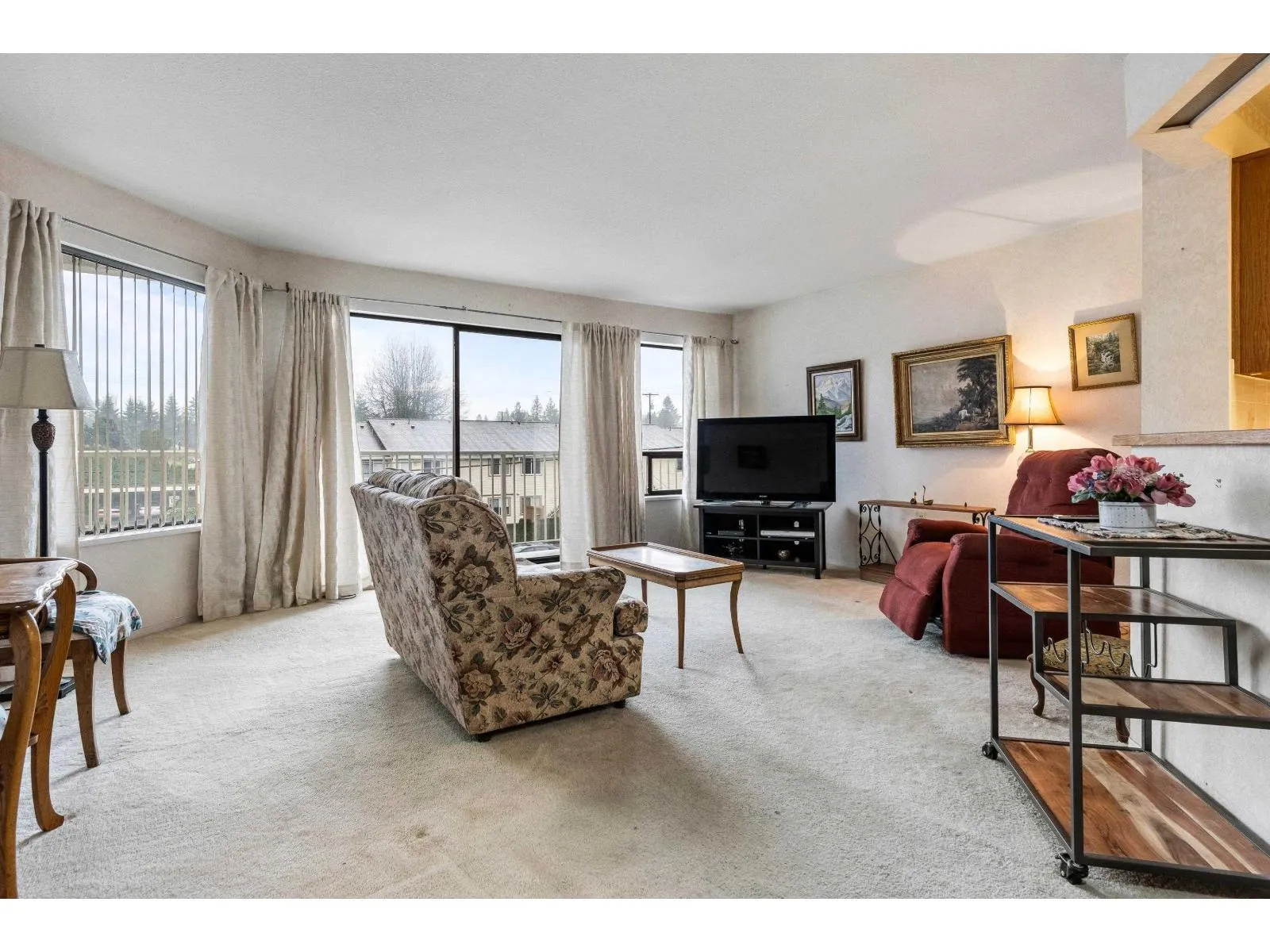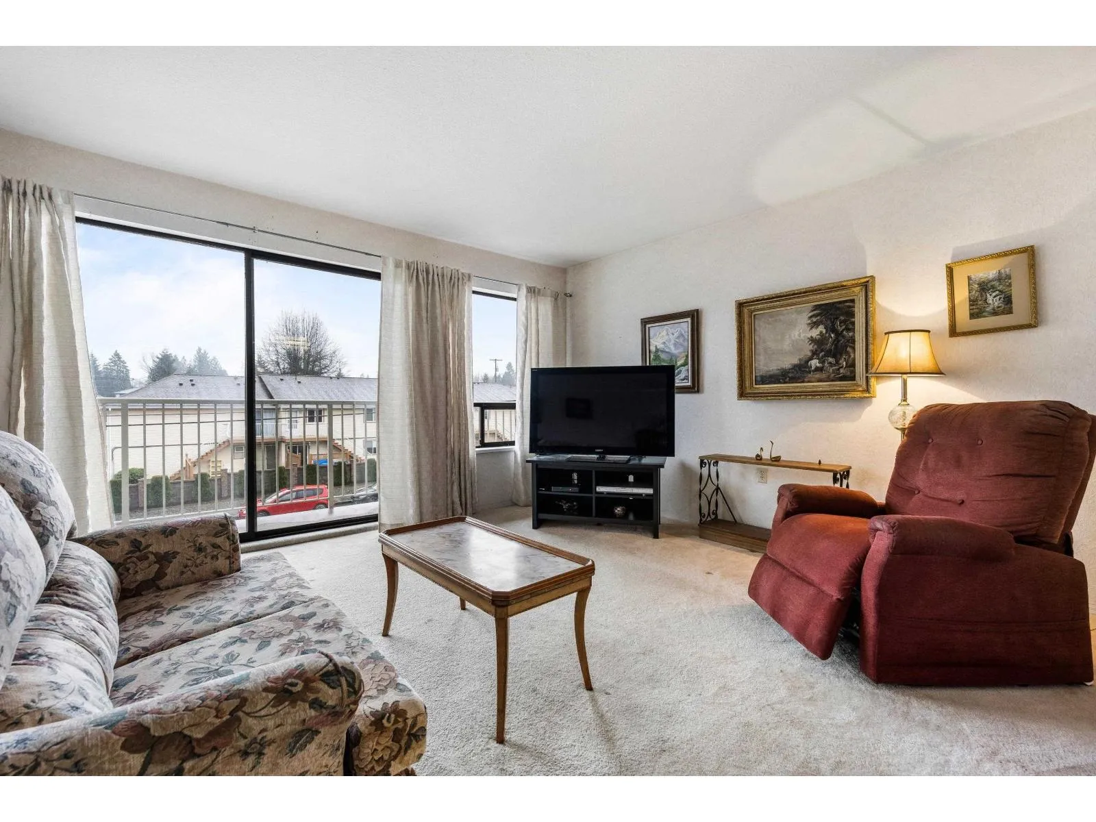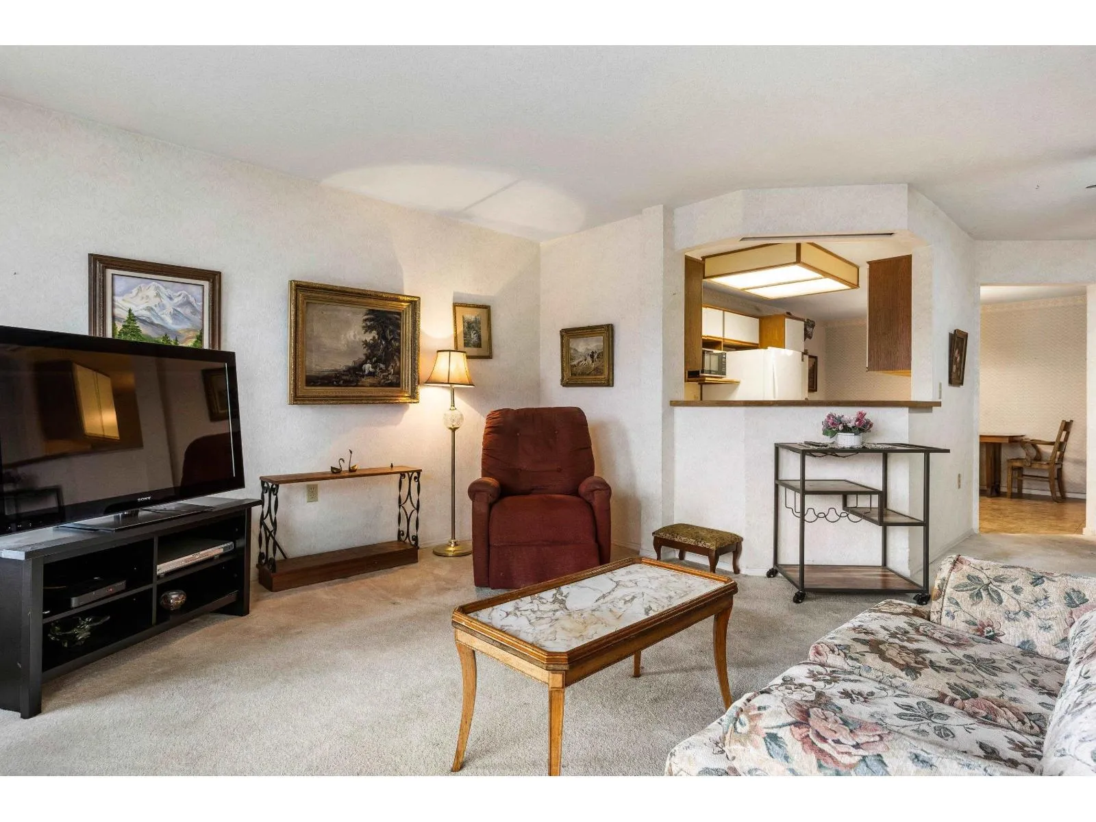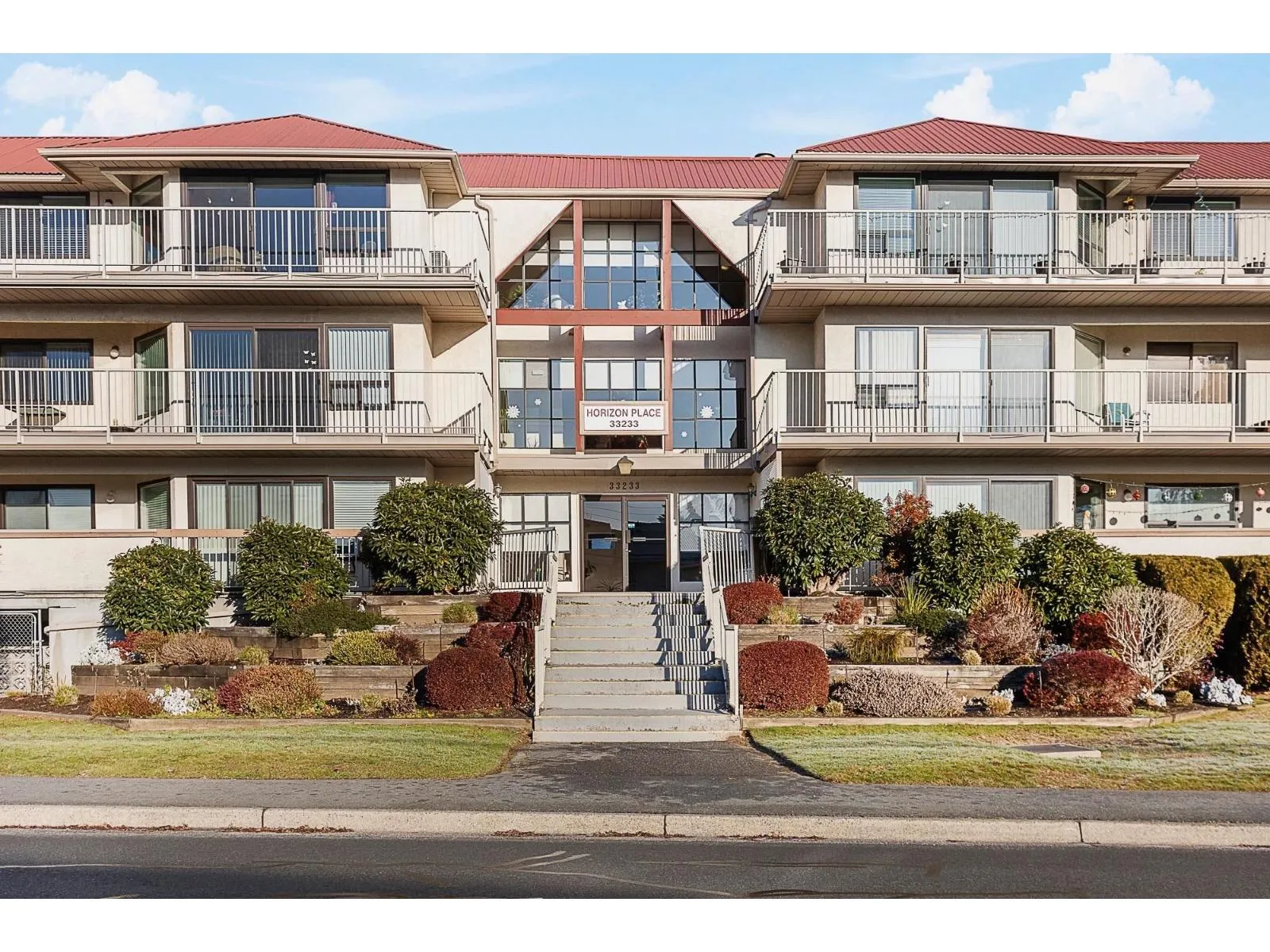 Soak up sunlight & mountain views from this spacious, SOUTH facing 55+ condo just steps from Mill Lake! The layout feels like a rancher style home with the convenience of condo living; 2 generous sized bedrooms, large eat-in kitchen, oversized living room flooded with natural light & access to a massive balcony where you can take in beautiful mountain views plus in-suite storage room, additional storage locker, secure underground parking, visitor parking, guest suite, library, common room & workshop for residents. Located in the desirable Horizon Place, this well-managed 55+ community offers a quiet, peaceful lifestyle just steps to Seven Oaks Shopping Centre & all the amenities you need. Well cared for & ready for your personal touch, enjoy an effortless & walkable lifestyle. (id:27476)